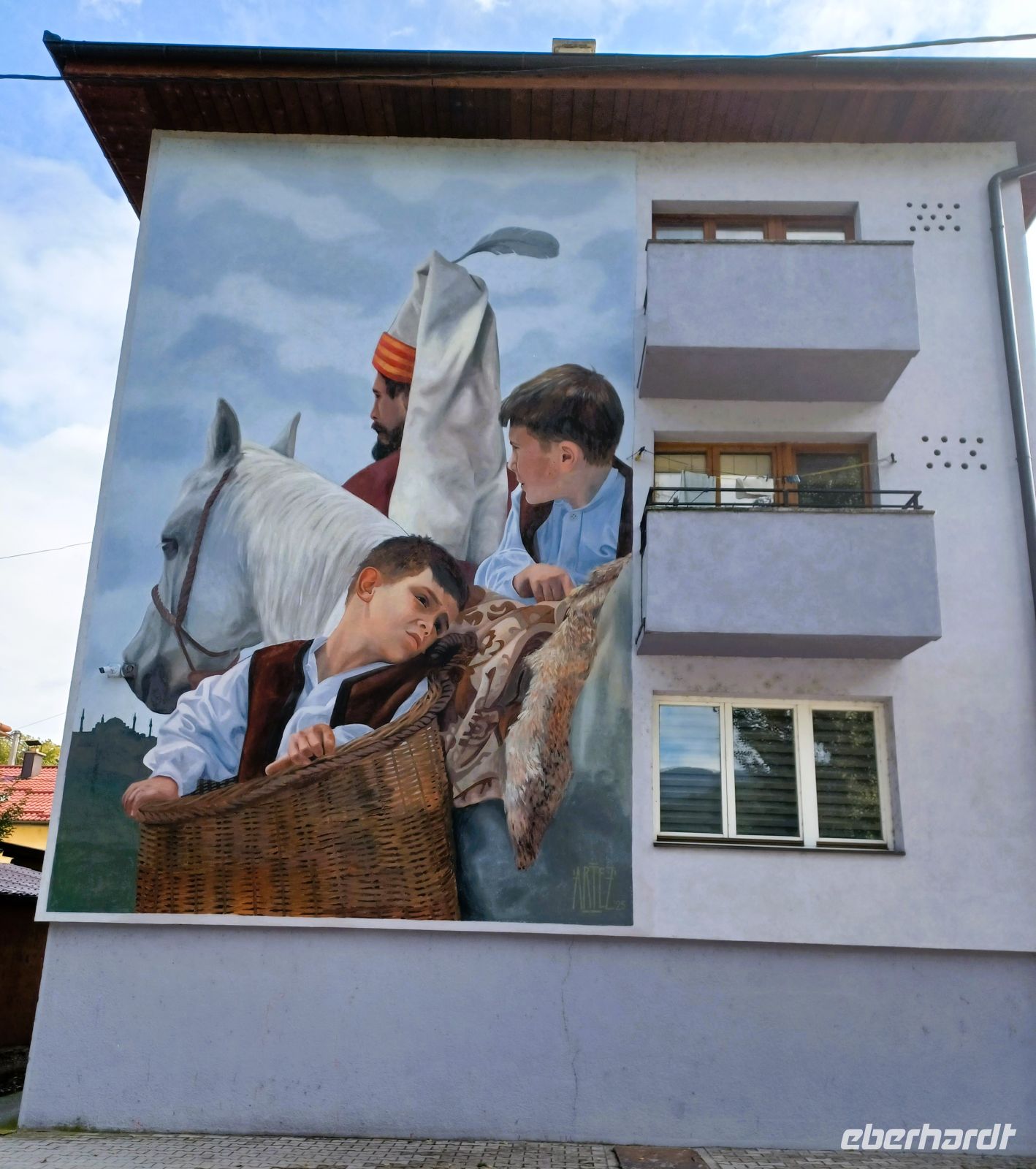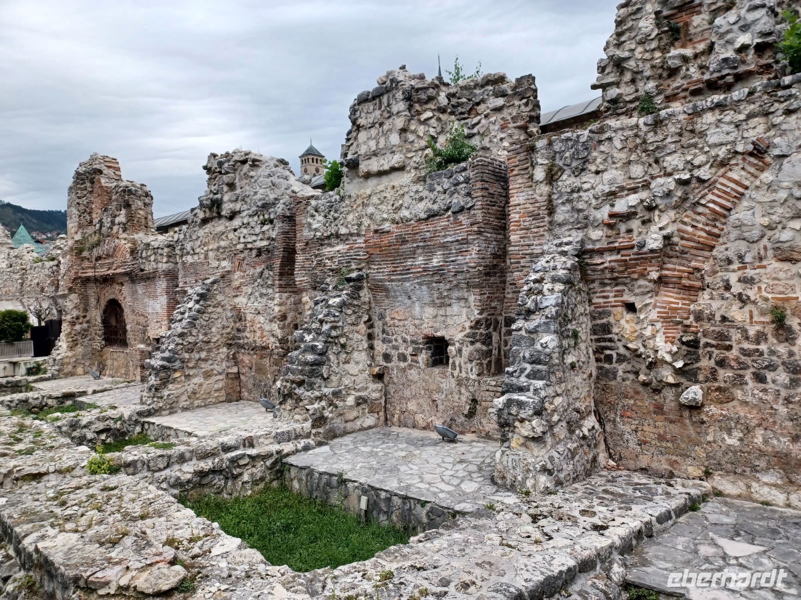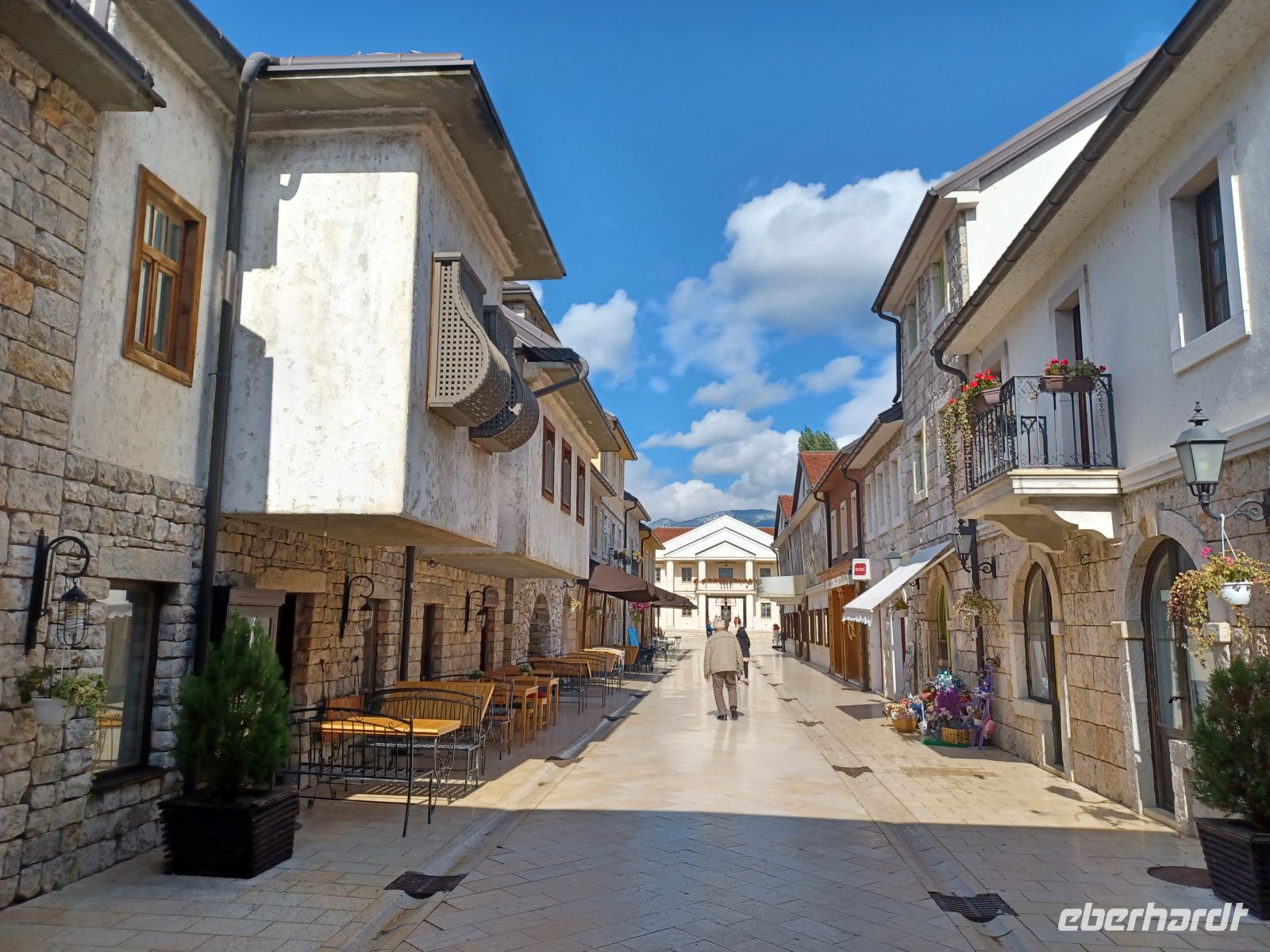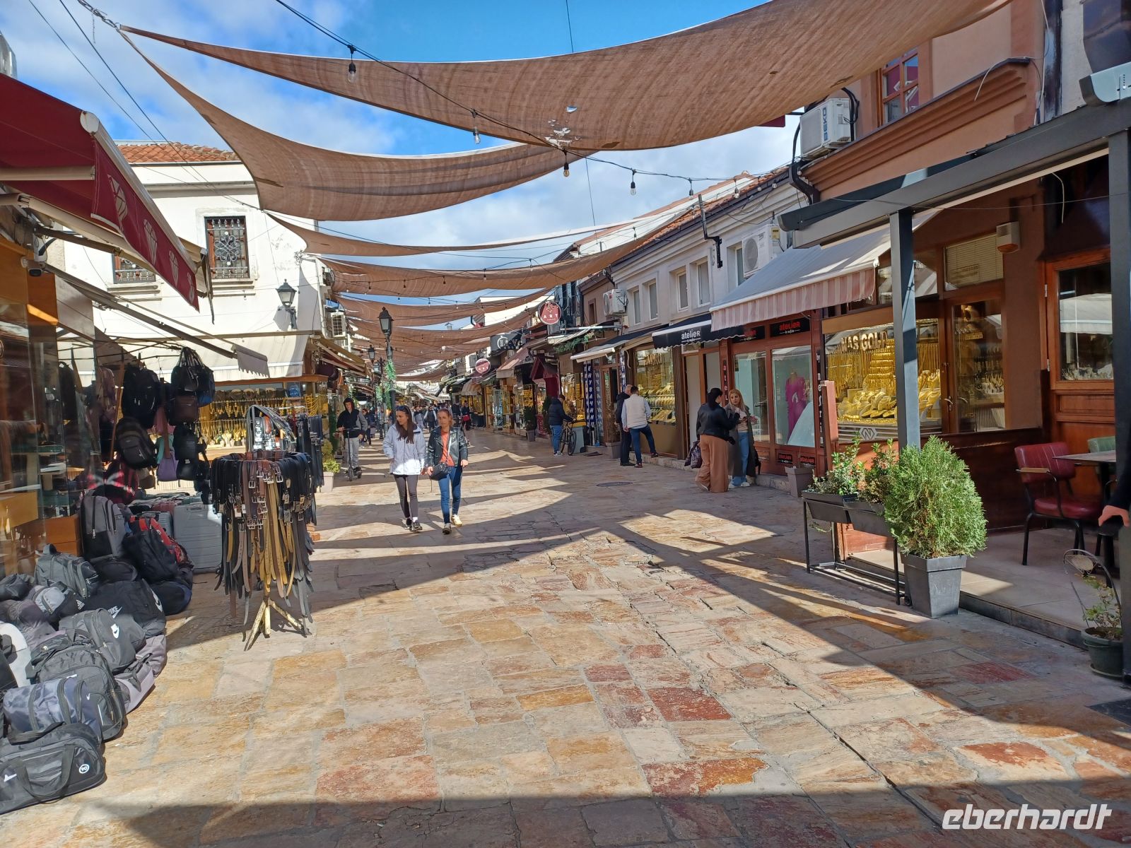 Dann überqueren wir in der Fußgängerzone jene imaginäre Linie welche das Abend- vom Morgenland trennt. Die mondänen Habsburger Häuser machen niedrigen, meist aus Holz bestehenden Gebäuden Platz. Das ist das faszinierende Erbe der Osmanen – es blieb gottlob unangetastet. Leider hat sich nun wieder der Himmel bezogen und Petrus sendet erste Tropfen herab.