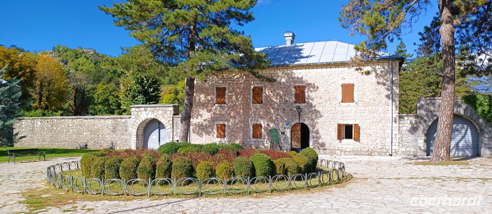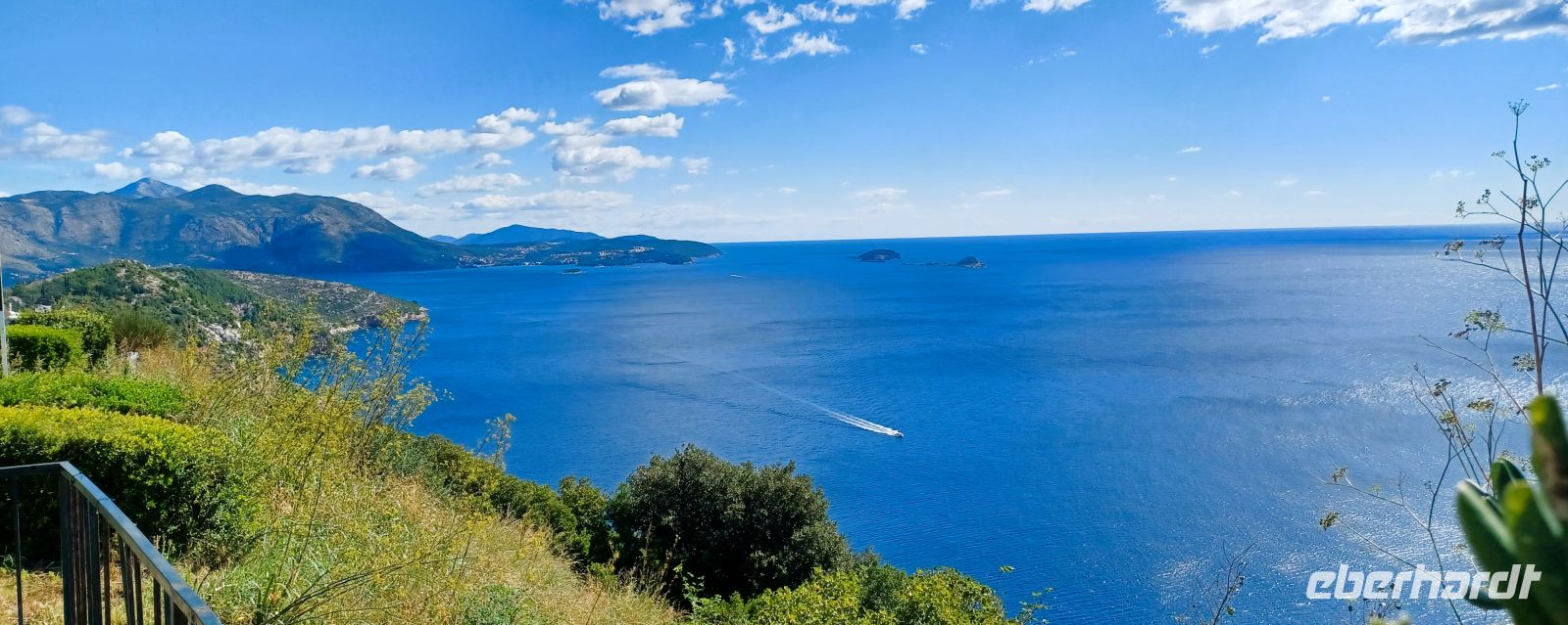 8.10.2025. Am heutigen Tag werden einige unserer Gäste in Budva bleiben um sich hier etwas näher umzuschauen. Der überwiegende Teil möchte aber kennenlernen, wo und wie der einstige montenegrinische König seine Herrschaft ausübte. Hierzu starten wir um an diesem Tag hinauf in die Berge zu fahren. Schon nach wenigen Kilometern wird klar, dass wir auf der gut ausgebauten Serpentinenstraße einen phantastischen Blick hinunter nach Budva, die Adria und die vorgelagerte Insel haben. Mit jedem Höhenmeter den wir nach oben zurücklegen wird diese Aussicht grandioser. Der Blick ist ungetrübt, der eifrige Bora-Wind der vergangenen Tage hat die Luft rein geputzt.