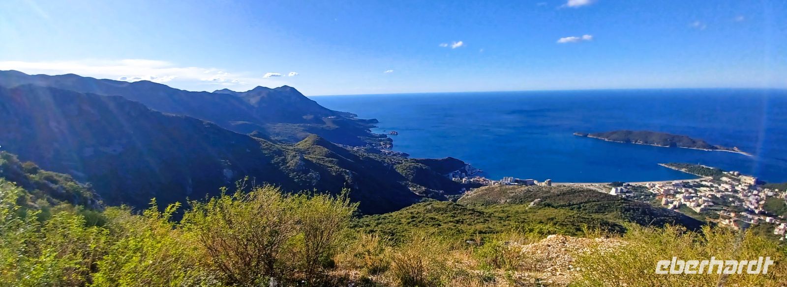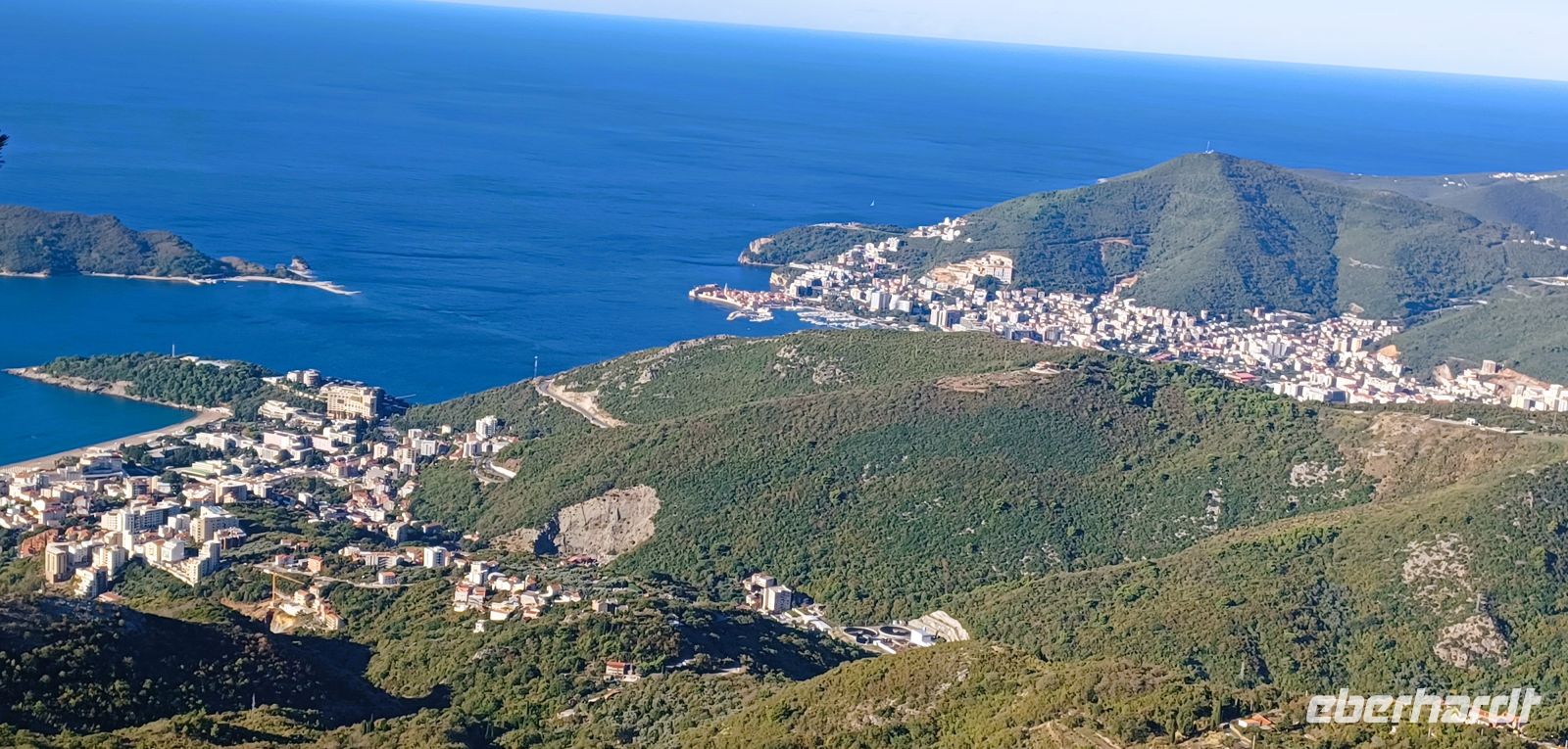 Die Häuser von Budva erscheinen bald so klein, als ob sie zu einem Spielzeugland gehörten, die Dächer erstrahlen in der Vormittagssonne kräftig rot.