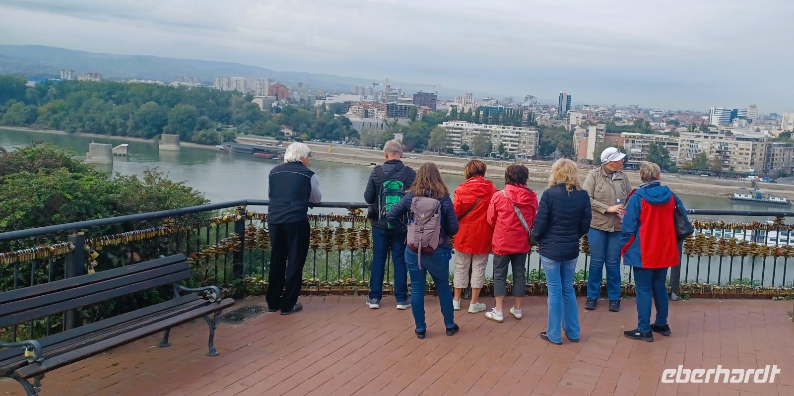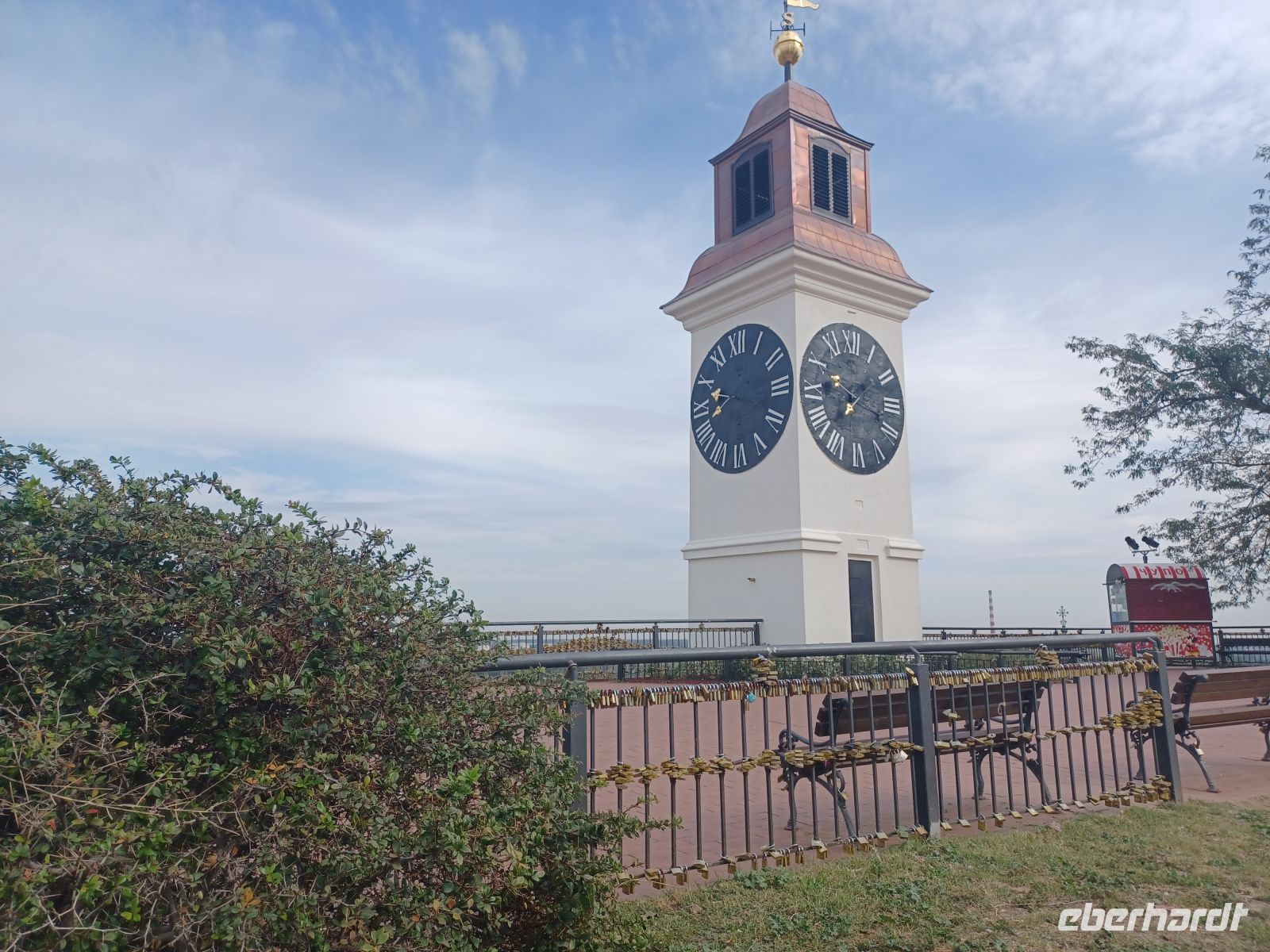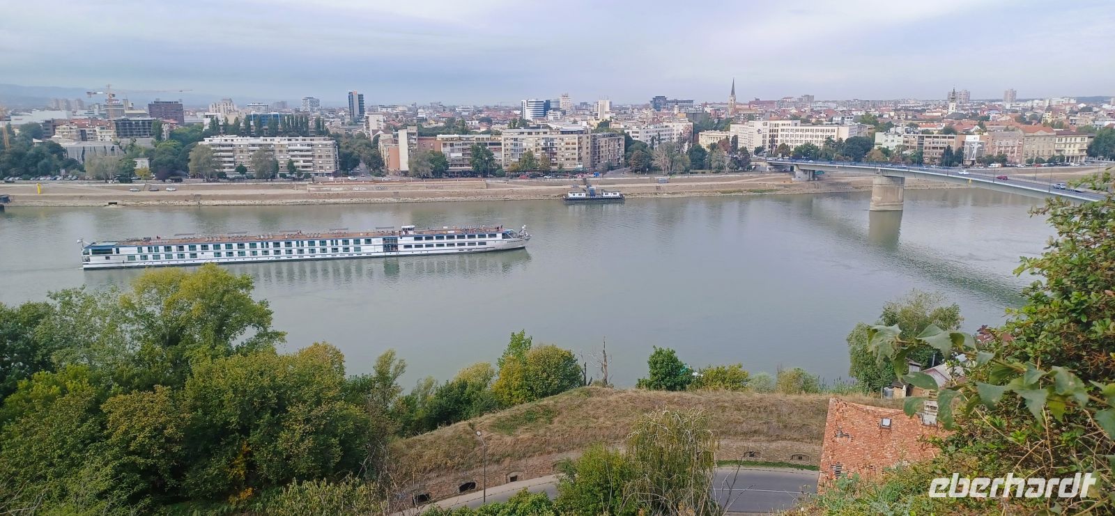 Etwas mühsam ist dieser Aufstieg über die zahlreichen Treppenstufen schon; als wir aber oben anlangen, werden wir von einem atemberaubenden Blick auf Novi Sad und die sich vor unseren Augen schlängelnde Donau belohnt. Mit viel Wissen kann uns Bogdanka nun ein weiteres Mal in die unruhige Geschichte der Region entführen. Entlang der Festungsmauer gelangen wir bald in das Innere der Festung; sie dient den Gästen heute vorrangig zu den verschiedenartigsten Kulturveranstaltungen.