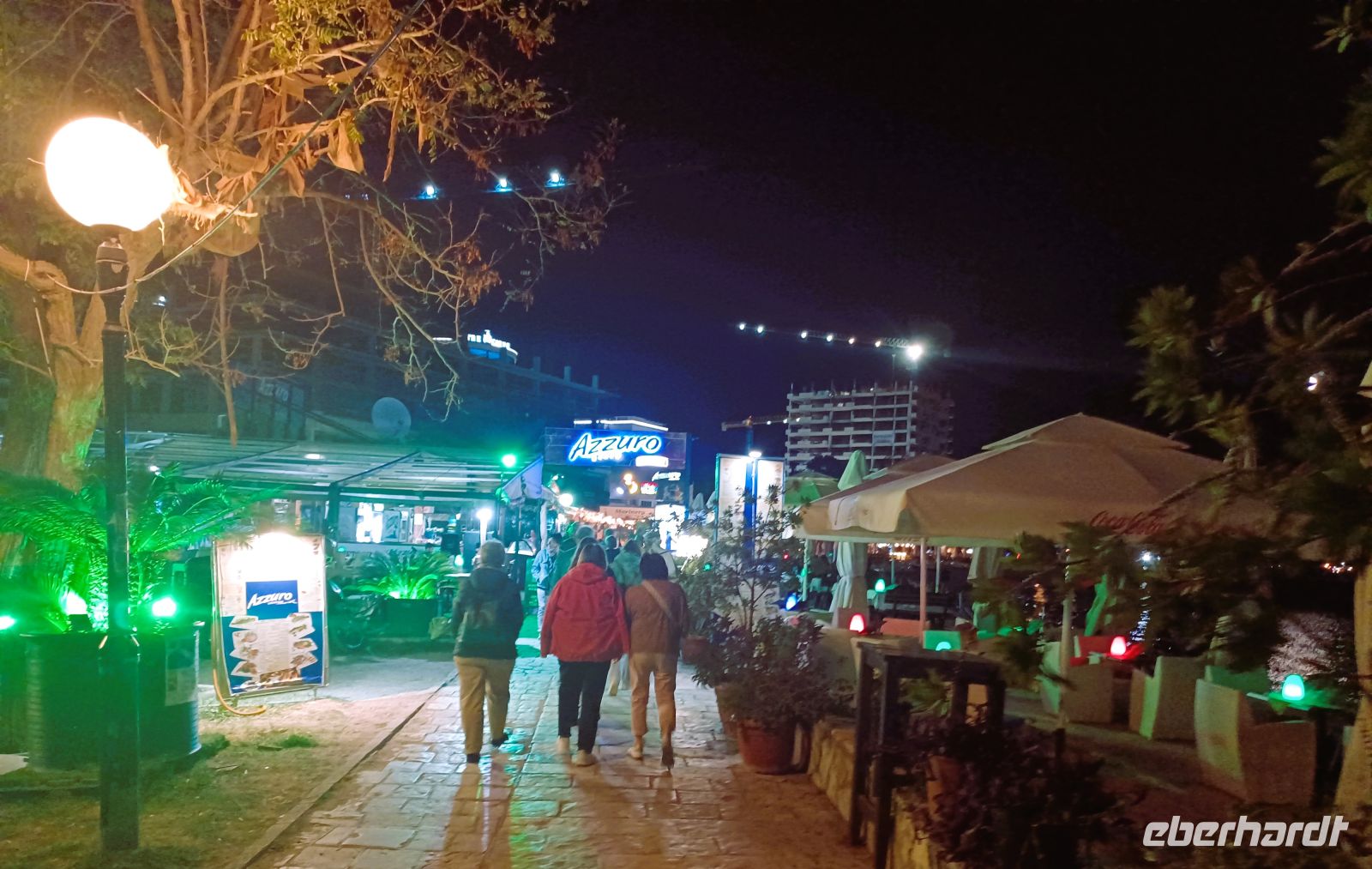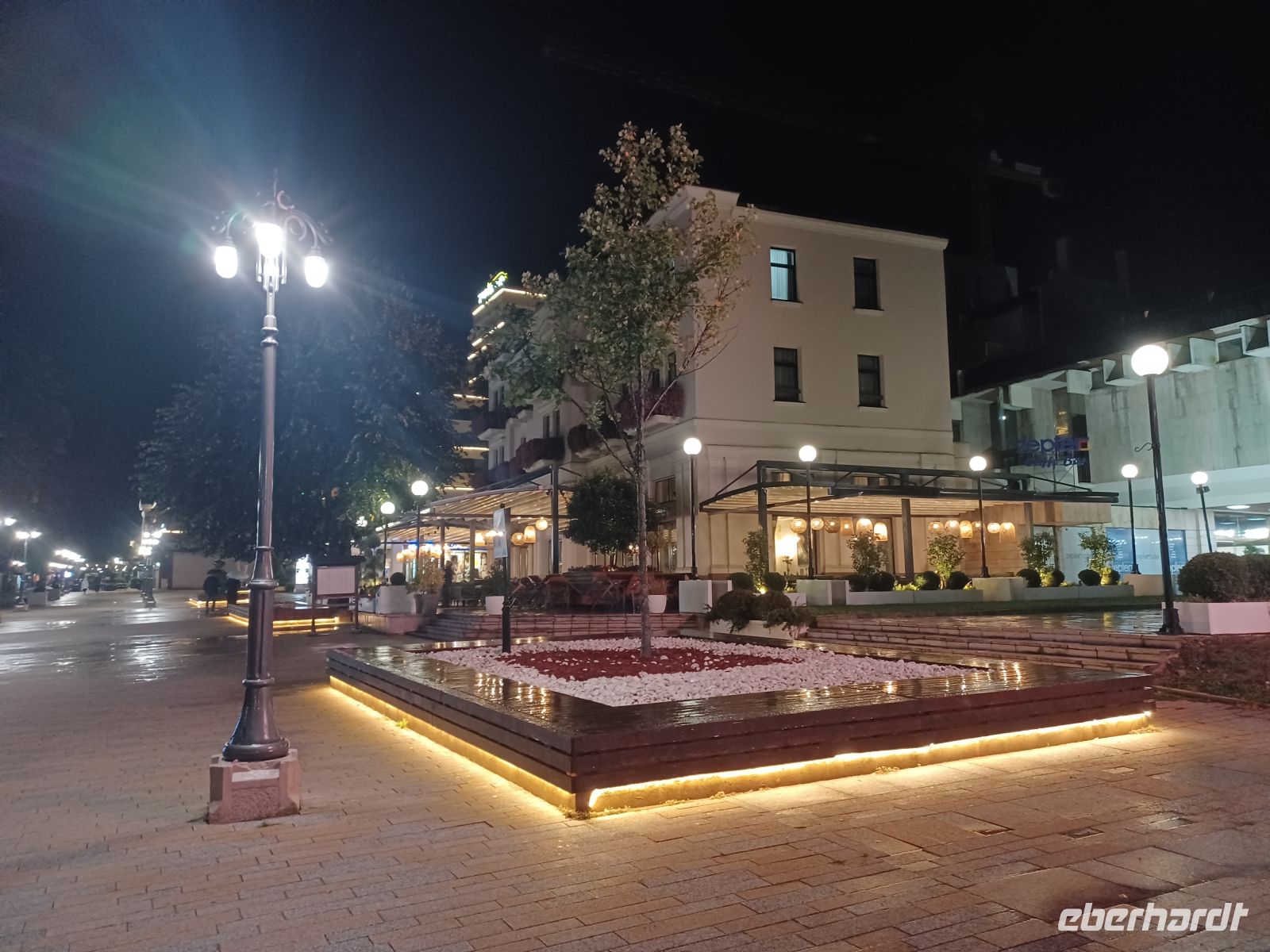 Danach heißt es Abschied nehmen vom schönen Ort; dezent-romantische Beleuchtung geleitet uns zum Bus, mit ihm gelangen wir eine Dreiviertelstunde später zu unserm Hotel in Budva…