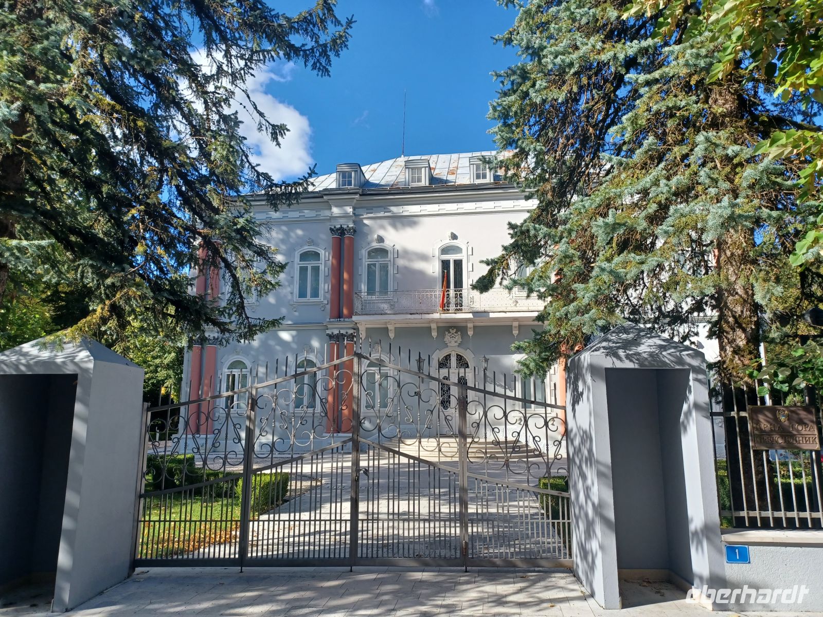 Nun trifft auch Jelena ein; sie wird uns in der nächsten Stunde die zunächst etwas verschlafene Stadt und das ehemalige Königsschloss vorstellen. Zunächst geht es durch den gepflegten Park zum Präsidentensitz. Auch wenn Cetinje heute nicht mehr die Hauptstadt Montenegros ist, das Staatsoberhaupt residiert hier weiterhin. Über die gepflegte Fußgängerzone mit den zahlreichen Geschäften und Restaurants, führt uns nun der Weg zum ehemaligen Schloss des Königs Nikola. Angenehm beeindruckt sind wir vom zurückhaltenden Prunk dieses Herrschers; er lebte im Vergleich zu anderen Monarchen schon fast in bescheidenen Verhältnissen – das macht ihn auch heute noch sympathisch. Aber es schmälert jedoch nicht seine Bedeutung; seine Töchter hat er europaweit verheiraten können, ihre Nachkommen sind auch heute noch in mancher Dynastie wichtige Persönlichkeiten.