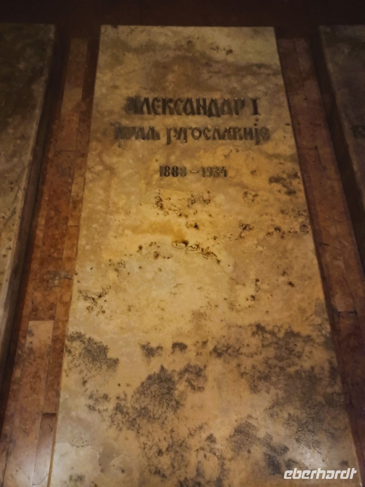 Wenige Stufen führen uns hinab in die Krypta; unter schweren, marmornen Platten liegen alle begraben welche der Dynastie Karađorđević angehören. Auch jene Mitglieder dieser Familie die nach dem Ende des Königreiches gestorben waren, und auch zukünftige Angehörige werden hier ihre Ruhe finden – allein die Zeit verstreicht unablässig und jene steinernen Zeugnisse werden den Nachkommen berichten, was in deren Verlauf alles geschah…