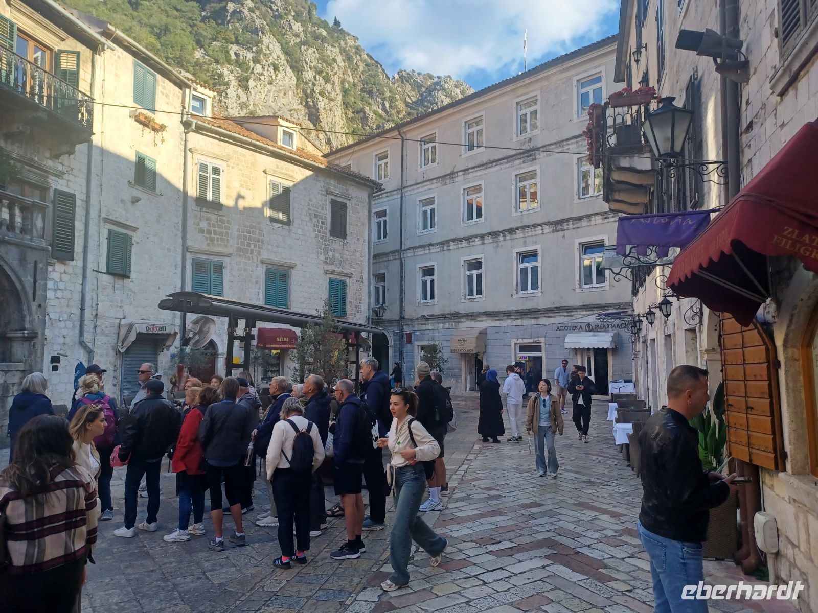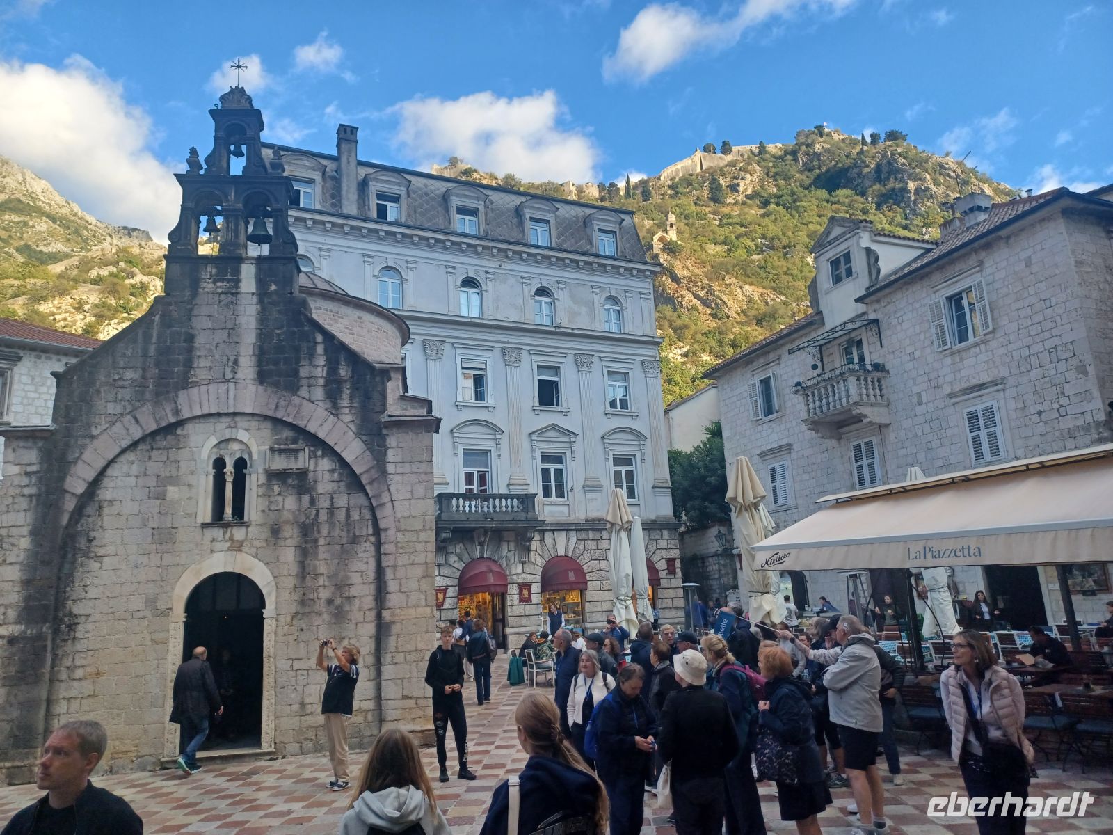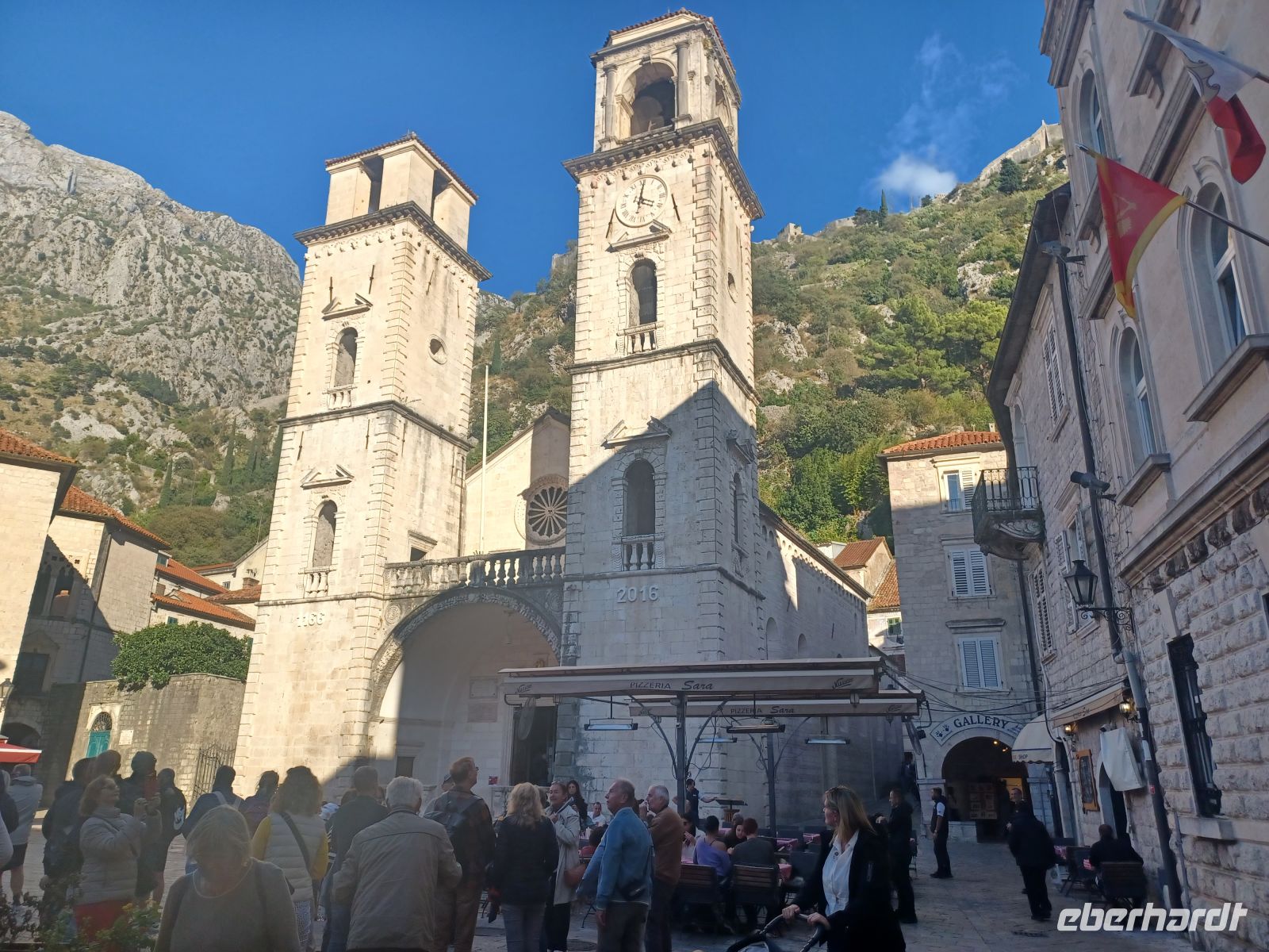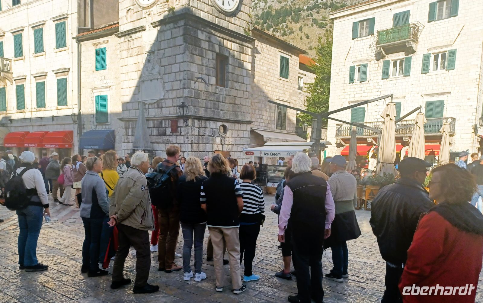 Am Stadttor werden wir schon von Rosanda erwartet; sie wird uns auf sympathische Art und Weise nun durch Kotor führen. Auch hier gibt es viel zu berichten; besonders über die berühmten Kapitäne und die Seefahrt. Vom Hauptplatz geht es zur Tryphon-Kathedrale, dann entlang schmaler Gassen zu einem weiteren Platz, hier zeigt sich uns die orthodoxe Kirche.