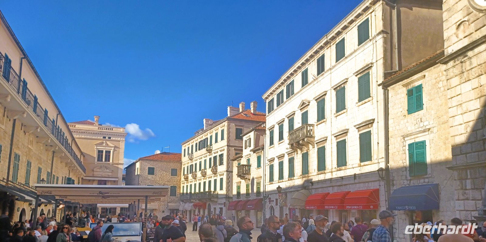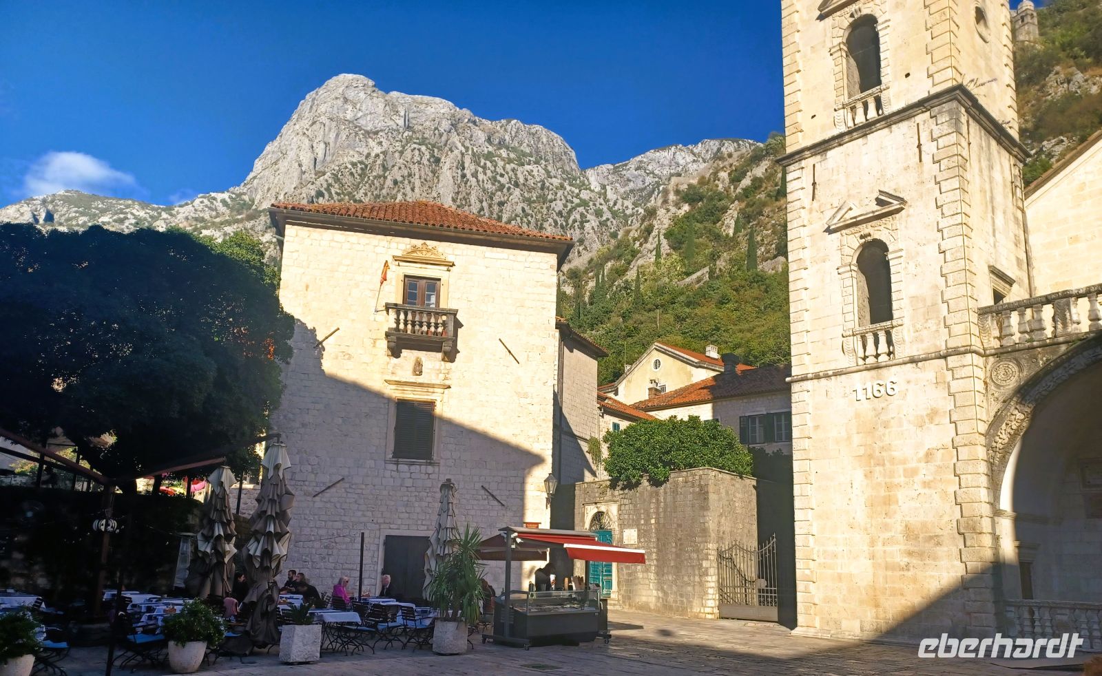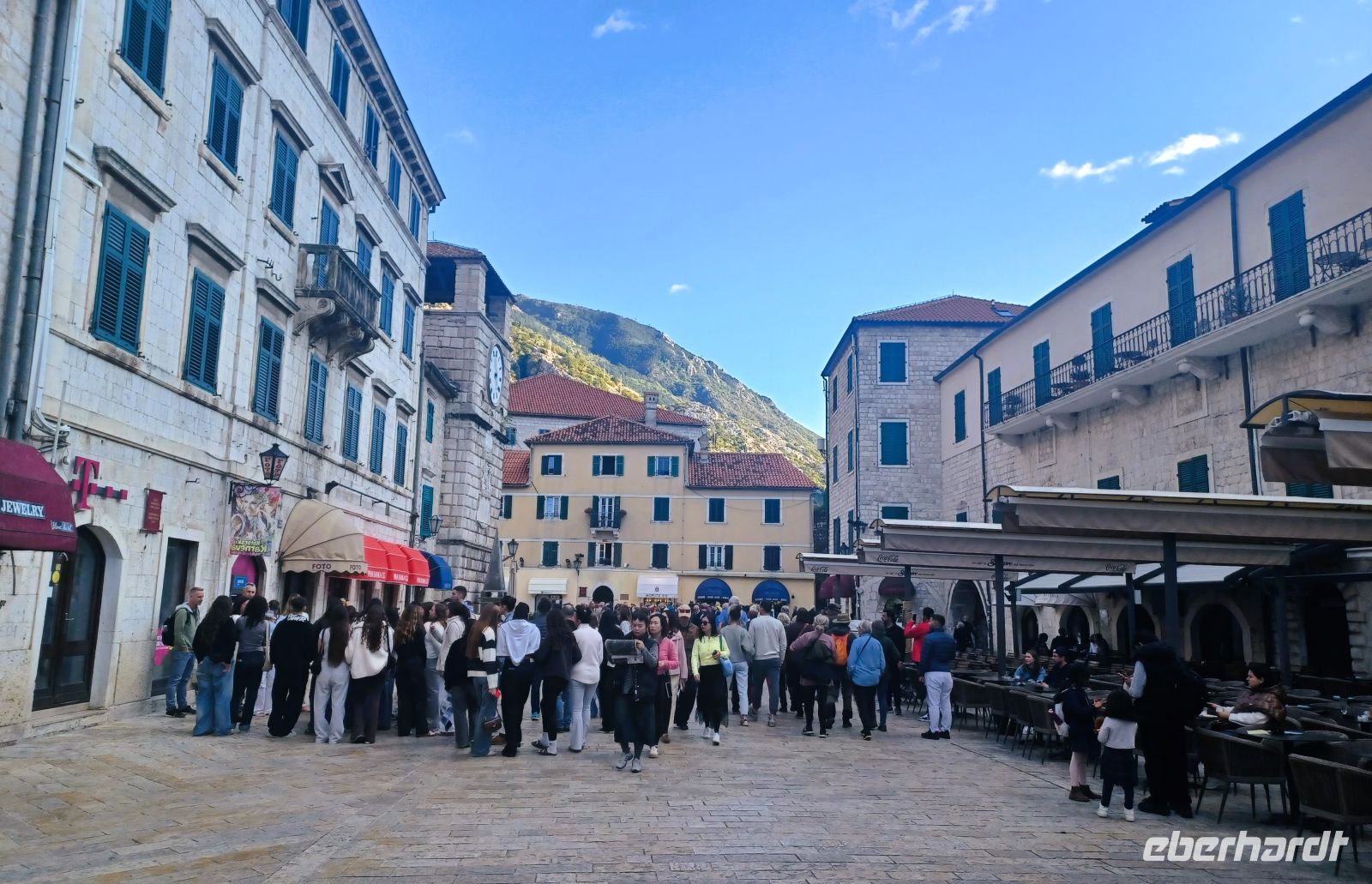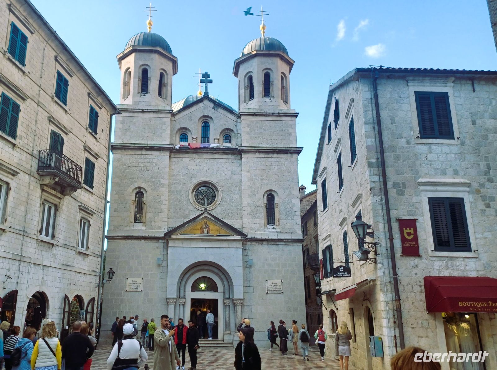 Am Stadttor werden wir schon von Rosanda erwartet; sie wird uns auf sympathische Art und Weise nun durch Kotor führen. Auch hier gibt es viel zu berichten; besonders über die berühmten Kapitäne und die Seefahrt. Vom Hauptplatz geht es zur Tryphon-Kathedrale, dann entlang schmaler Gassen zu einem weiteren Platz, hier zeigt sich uns die orthodoxe Kirche.