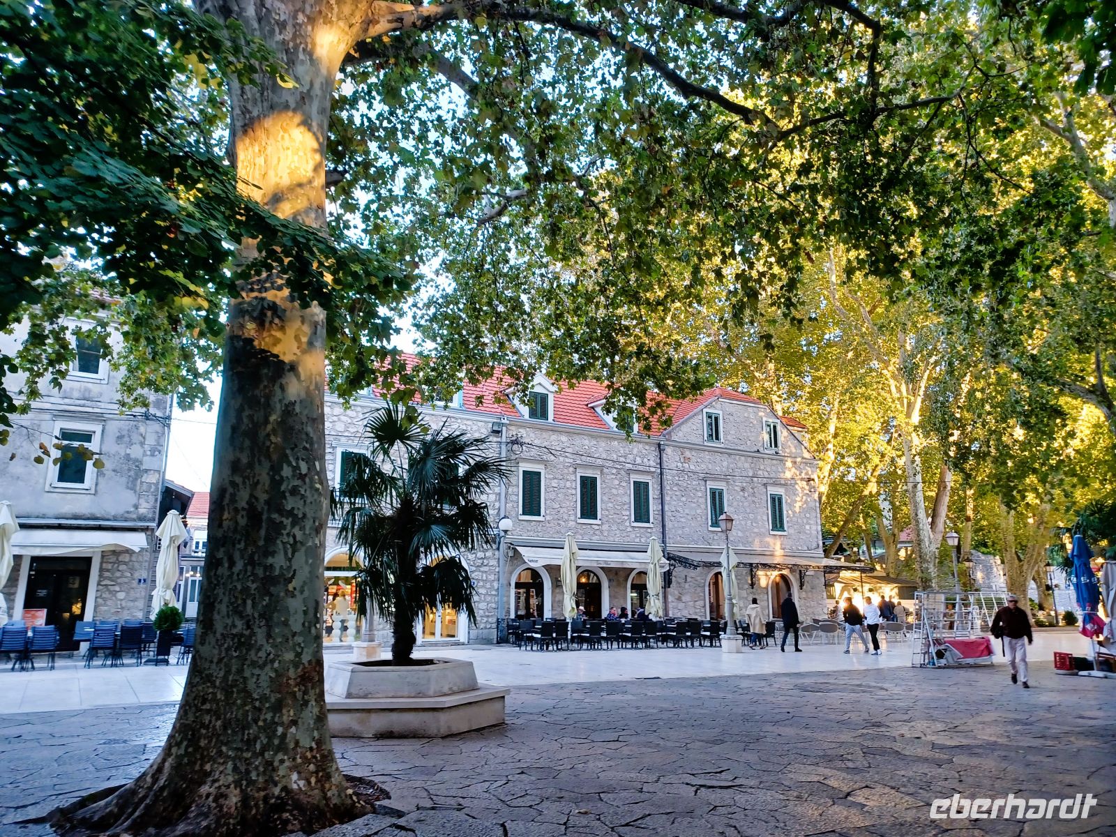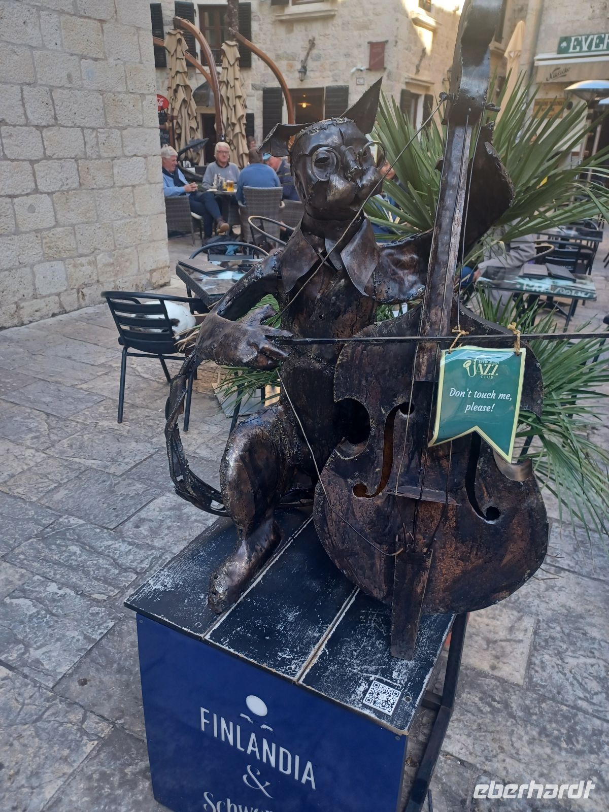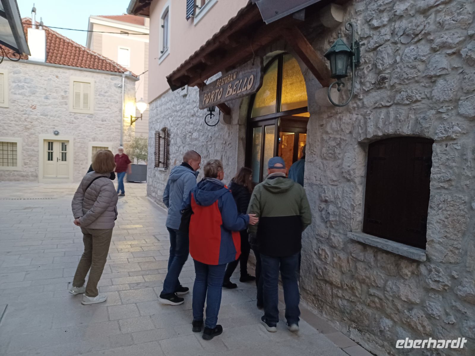 Nachdem die Sonne ihren Tageslauf beendet hat und im alten Stadtviertel Skardalija die Laternen ihr gelbliches Licht auf die Gassen ausgießen, sitzt unsere Gruppe in einem gemütlichen Restaurant um hier ein leckeres Abendessen, umrahmt von Musik, zu genießen.