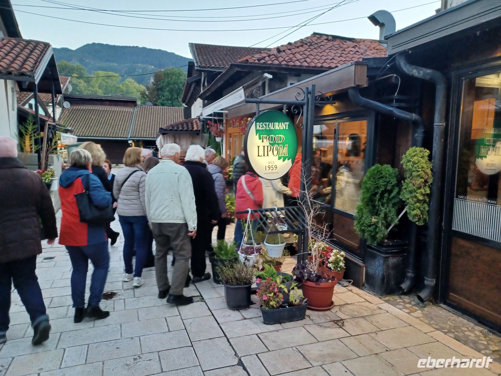 Doch weg mit diesen Gedanken; an diesem sonnigen Nachmittag überwiegt das Positive. Unsere Reisegruppe genießt hier eine schön Zeit; bei einem kleinen Imbiss oder einem Bosnischen Kaffee aus dem Kupferkännchen, vergeht die Zeit viel zu schnell.