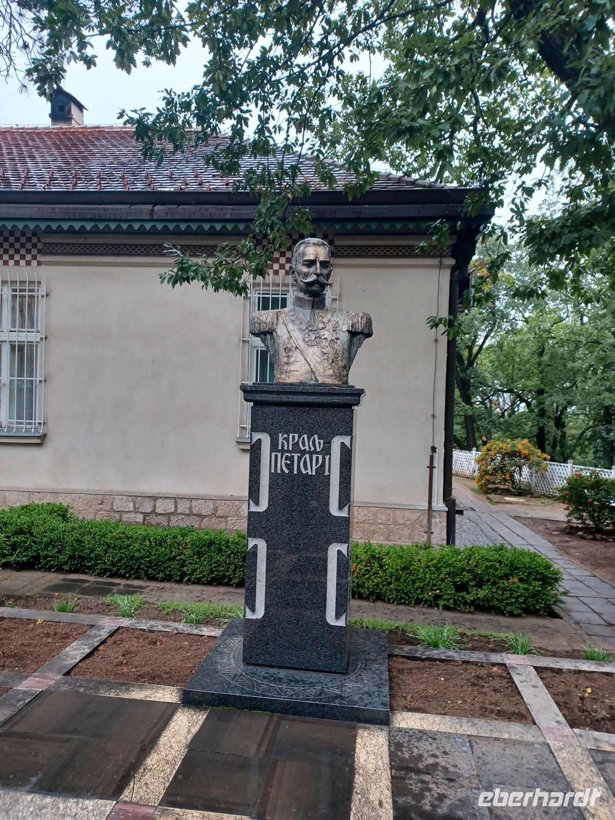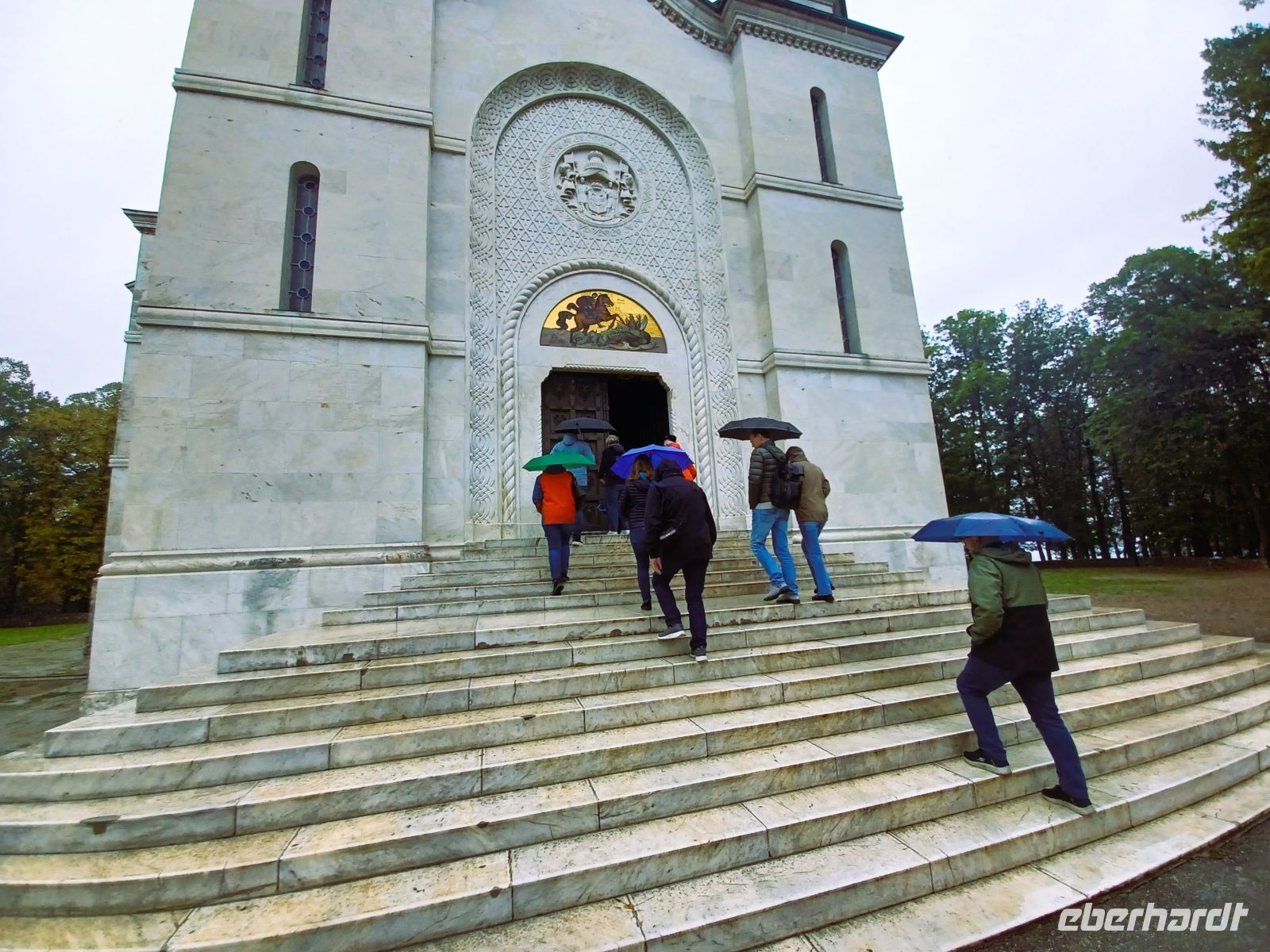 Unser Tatendrang ist davon aber keineswegs betroffen; voller Wissbegier nehmen wir nun den Aufstieg hinauf zur Spitze des Hügels Oplenac in Kauf um dort oben mit einem wunderbaren Blick auf die Kuppel und das Kirchengebäude der Georgs-Kirche belohnt zu werden. Zunächst besuchen wir aber das Museum. In diesem einstöckigen Gebäude hatten die serbischen Könige einst ihre Residenz; mit Blick auf die Kirche oblagen sie ihren staatstragenden Arbeiten. Heute erfahren wir hier etwas über die unruhige Geschichte des Königreiches der Serben, Kroaten und Slowenen welches sich 1918 gründete und erst im Jahr 1929 den Namen „Jugoslawien“ erhielt. Ein unruhige Zeitepoche, welcher der 1. Weltkrieg vorausgegangen war; der Mord am Habsburgischen Thronfolger 1914 wird uns am Originalschauplatz in Sarajevo noch einmal besonders eindrucksvoll vor Augen geführt werden…