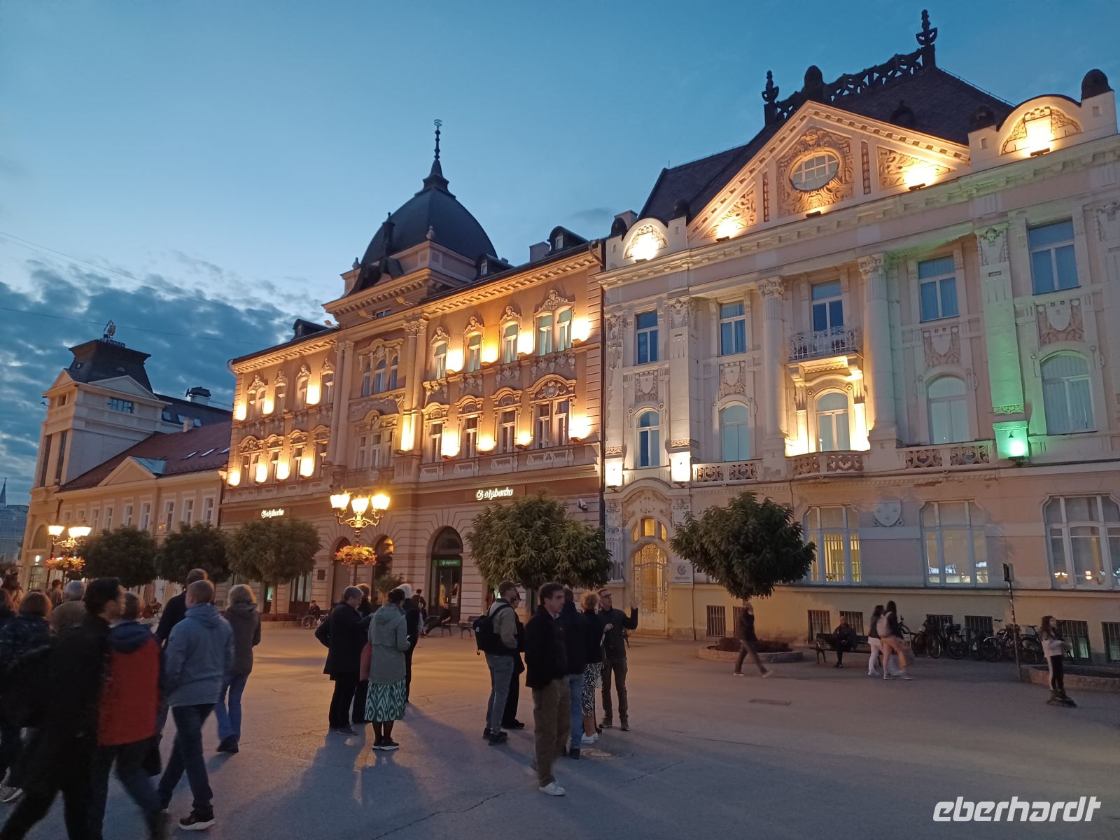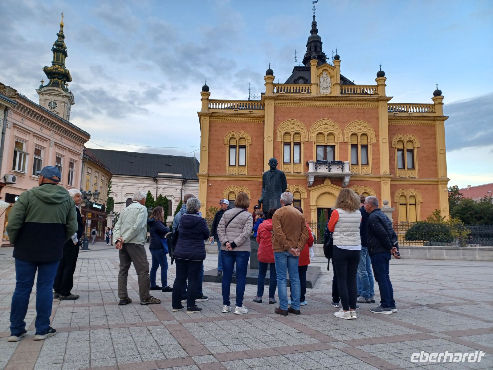 Im Hauptort Novi Sad werden wir nun auf Erkundung gehen; nach einer kurzen Pause im Hotel geht es los. Entlang der Donau gelangen wir bald in die schöne Fußgängerzone; überall wohin man blickt ist noch der Einfluss der Habsburger Monarchie zu sehen.