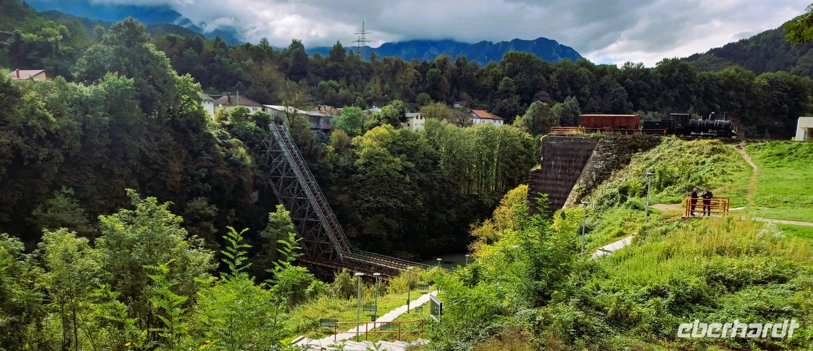 Schon von Weitem ist der Partisanenzug zu sehen, er thront über der Schlucht und dahinter, liegt die gesprengte eiserne Brücke – das aufwendige Filmutensil von 1969. In diesem Film wirkte seinerzeit ein Großaufgebot von Schauspielern mit: Yul Brunner, Sergej Bondartschuk, Orson Wells und als Wehrmachtsoffizier Hardy Krüger.