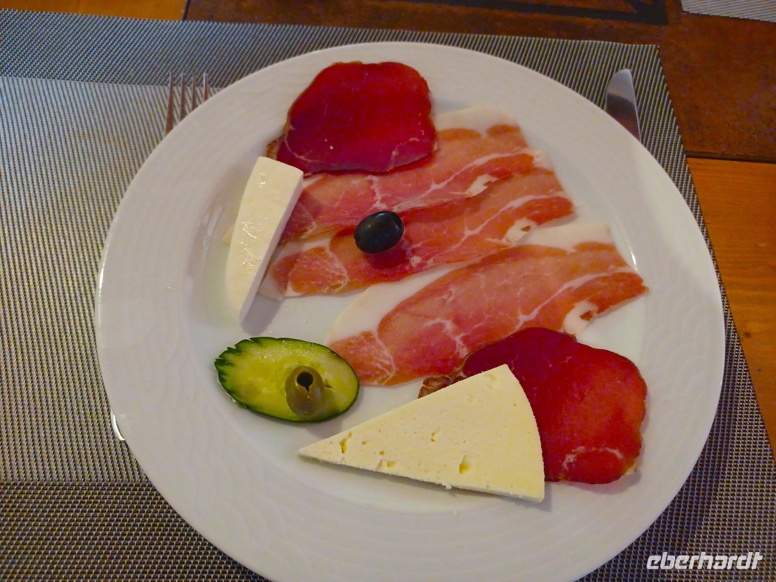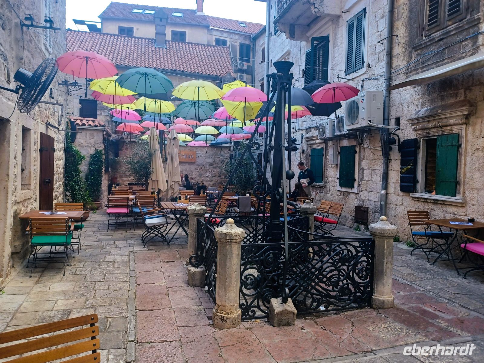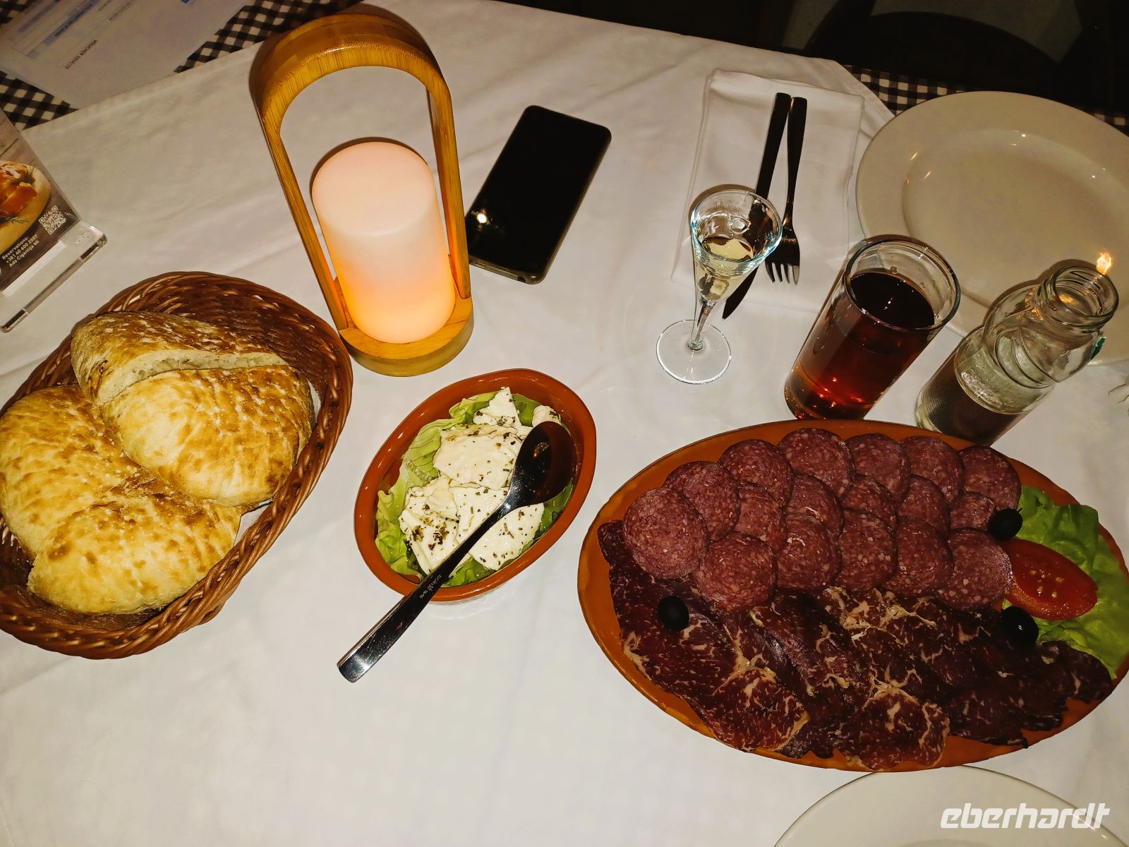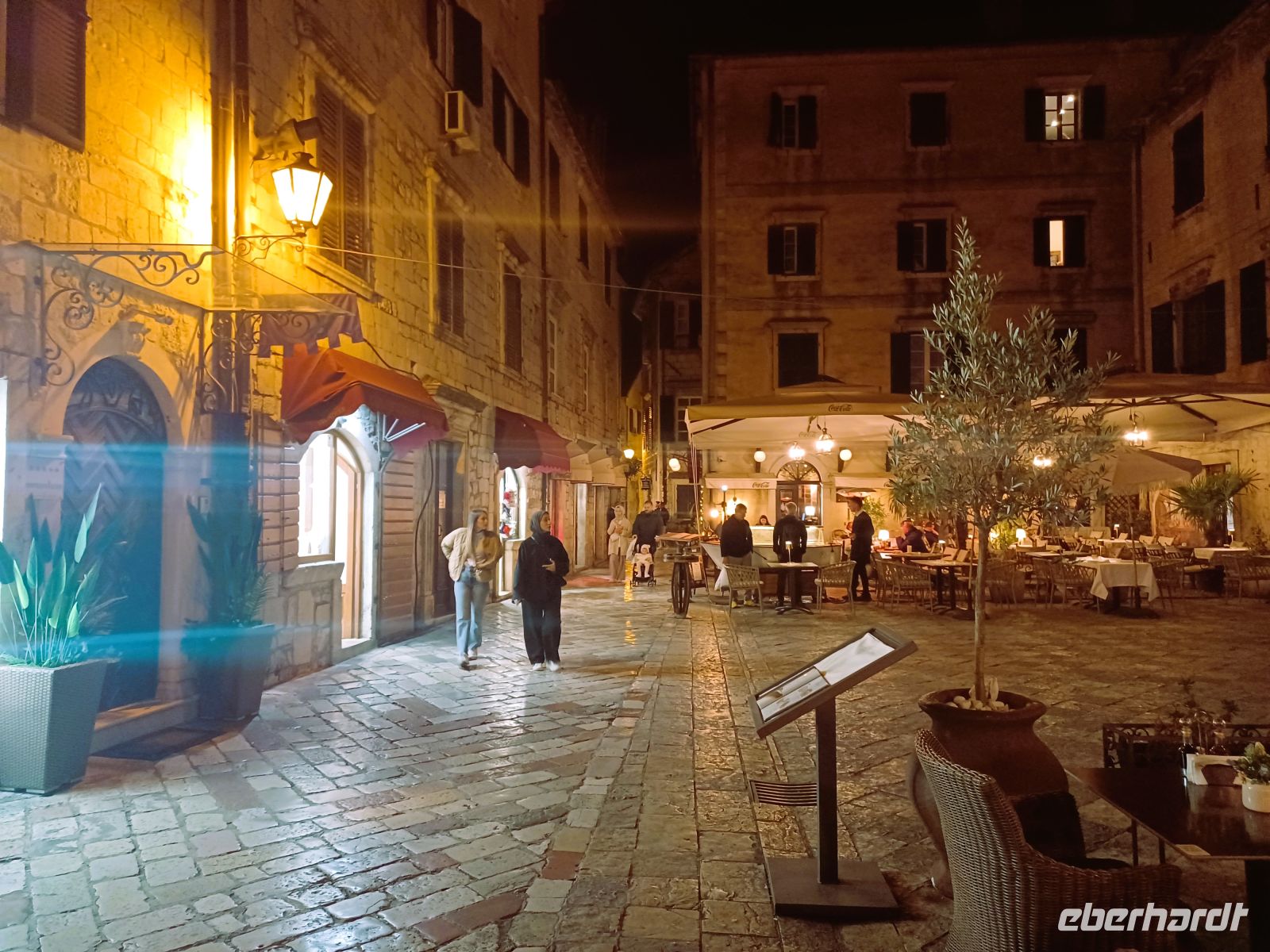 Die Sonne neigt sich dem Horizont zu; die Schatten werden länger und wir genießen in den uralten Mauern von Kotor ein schönes Diner, bestehend aus montenegrinischen Spezialitäten.