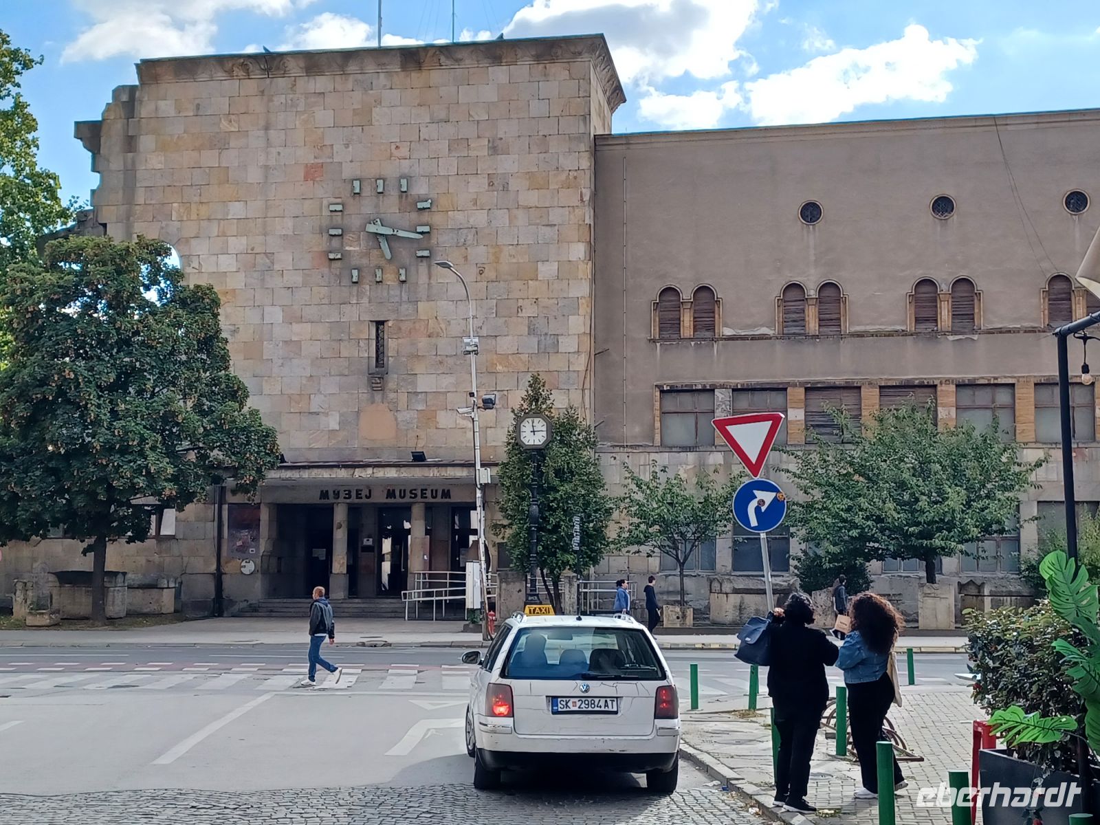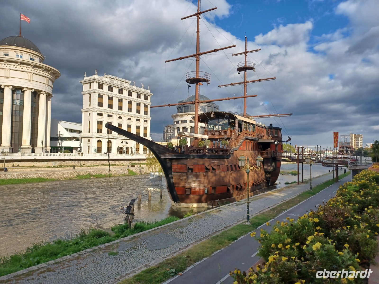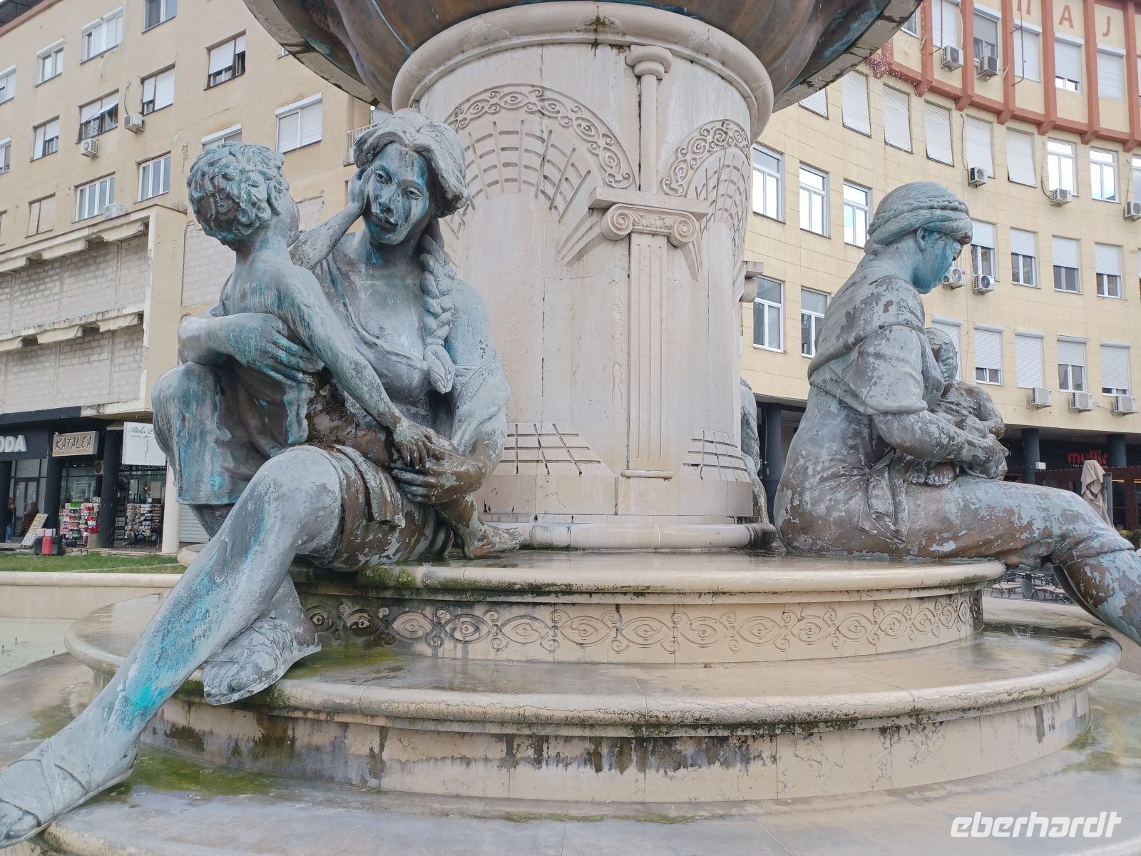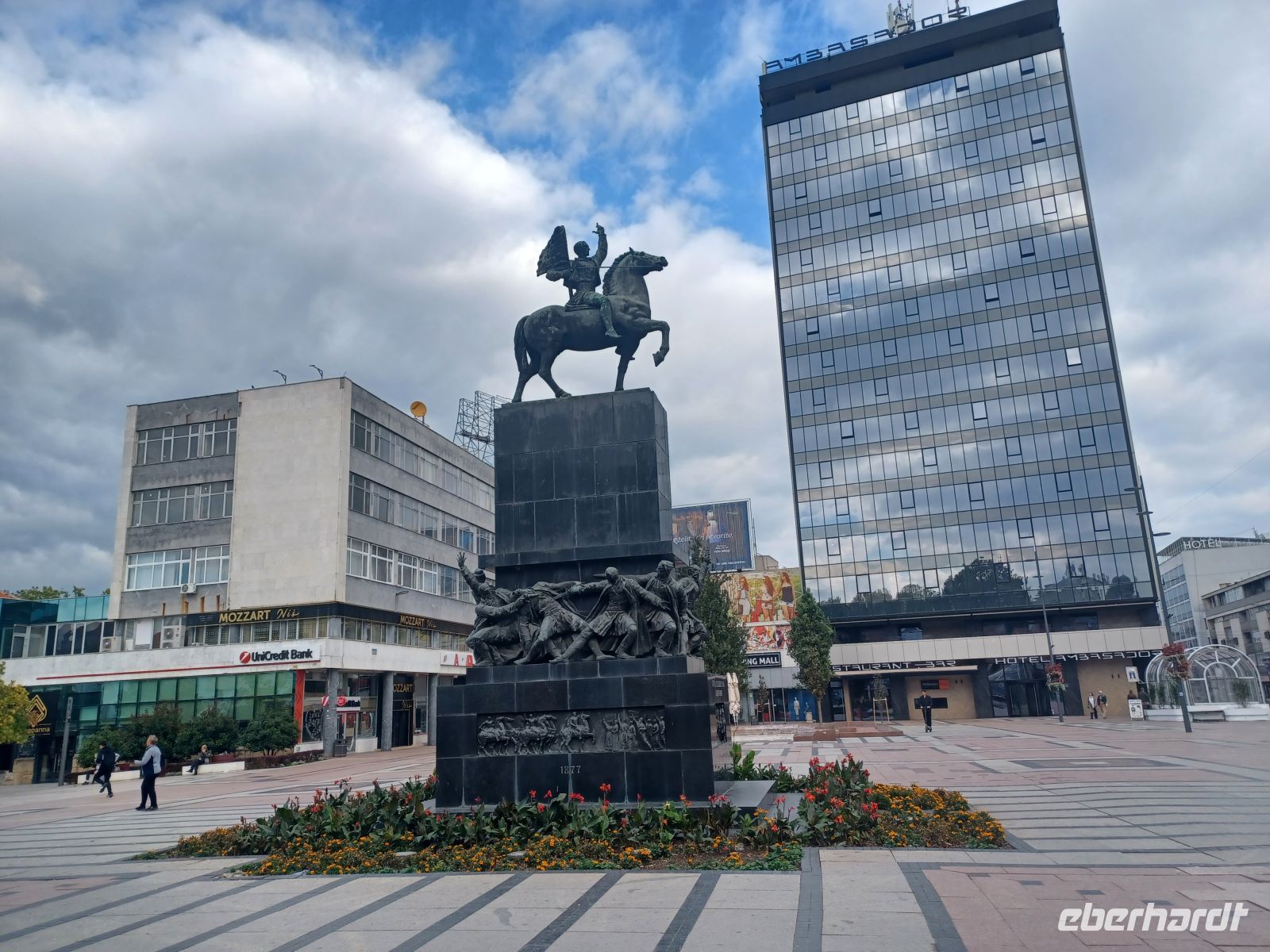 Urplötzlich ändert sich nun aber das Bild: Die niedrigen Häuser machen der modernen Architektur Skopjes Platz und die hat sich in den letzten Jahren an ihre Geschichte erinnert: die Antike – nur ins Gigantische gesteigert. Irgendwie faszinieren sie schon, die überdimensionierten Denkmale von Phillip und Alexander und all den großen, figürlichen Darstellungen der wichtigsten Personen aus dieser Epoche. Dann die Gebäude in historisierendem Stil den ich nur als Neo-Antik bezeichnen kann. Es sind übertriebene Zeugnisse der Geschichte – doch ich möchte darüber nicht richten, das steht mit nicht zu. Aber eigenartige Eindrücke sind es schon. Nochmals: rätselhafter Balkan!