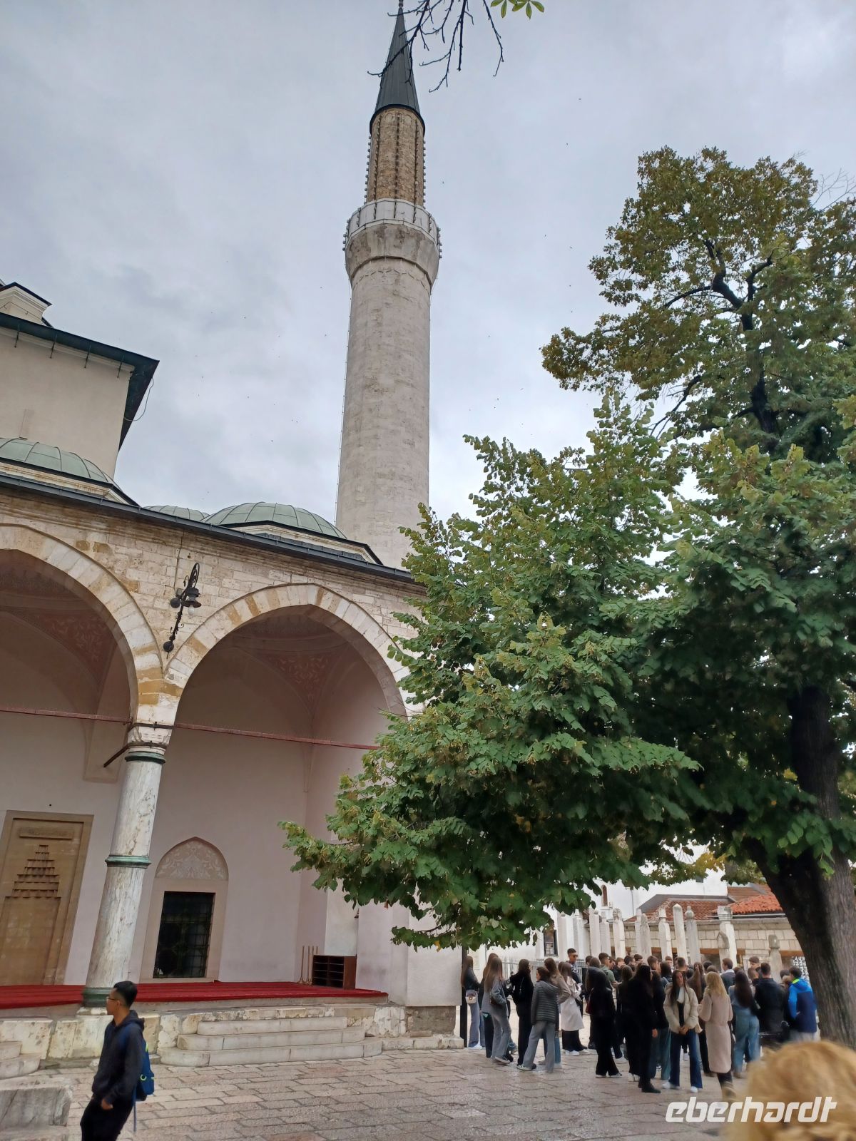 5.10.2025. Nachdem wir gestern Abend schon einen ersten Eindruck der osmanischen Kultur der Stadt beim Abendessen in einem typischen Restaurant in Baščaršija erlangen konnten, geht es am heutigen Vormittag auf Erkundung in diese wirklich schönen Altstadt. Ein Stadtführer wird uns all die Höhepunkte zeigen. Trotz aller Schönheit, besonders im osmanischen Teil, verbinden wir mit Sarajevo auch traurige Ereignisse. Sie werden bei dieser Führung eine Rolle spielen – es ist jener scharfe Kontrast den wir immer mit dem Balkan verbinden müssen…