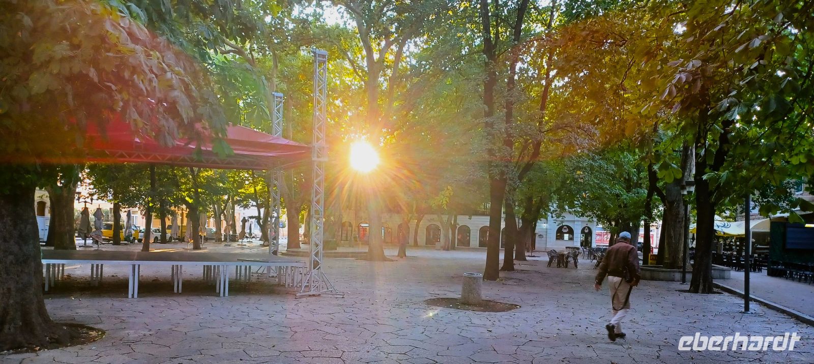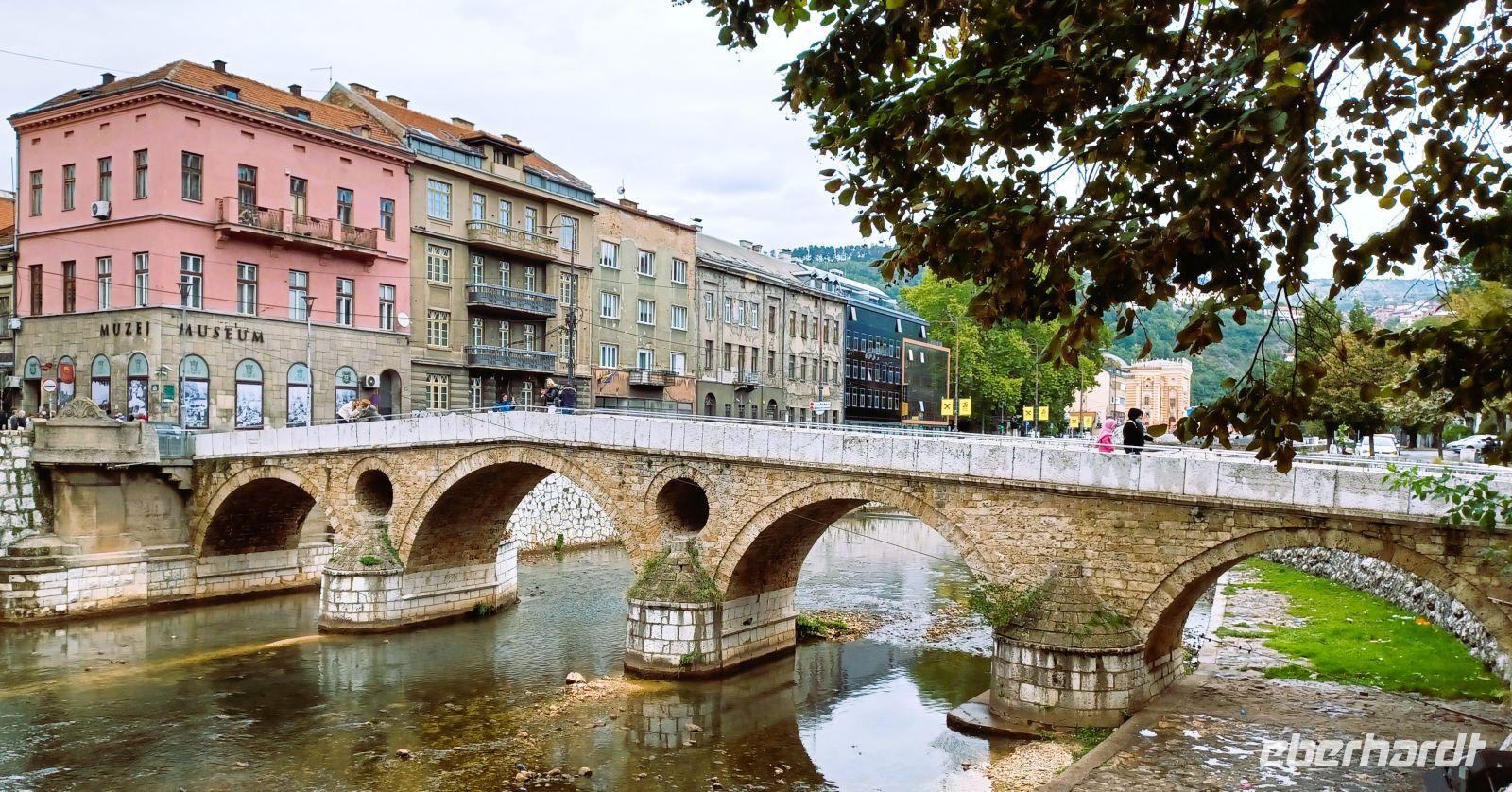 Die Straße senkt sich ab und urplötzlich sind wir in Sarajevo angelangt. Hier unten scheint die wärmende Nachmittagssonne; zahlreiche Menschen sind im alten Viertel unterwegs, was für ein Gegensatz! Im tiefverschneiten Zlatibor gestartet empfängt uns hier, in der bosnischen Hauptstadt, der Spätsommer…