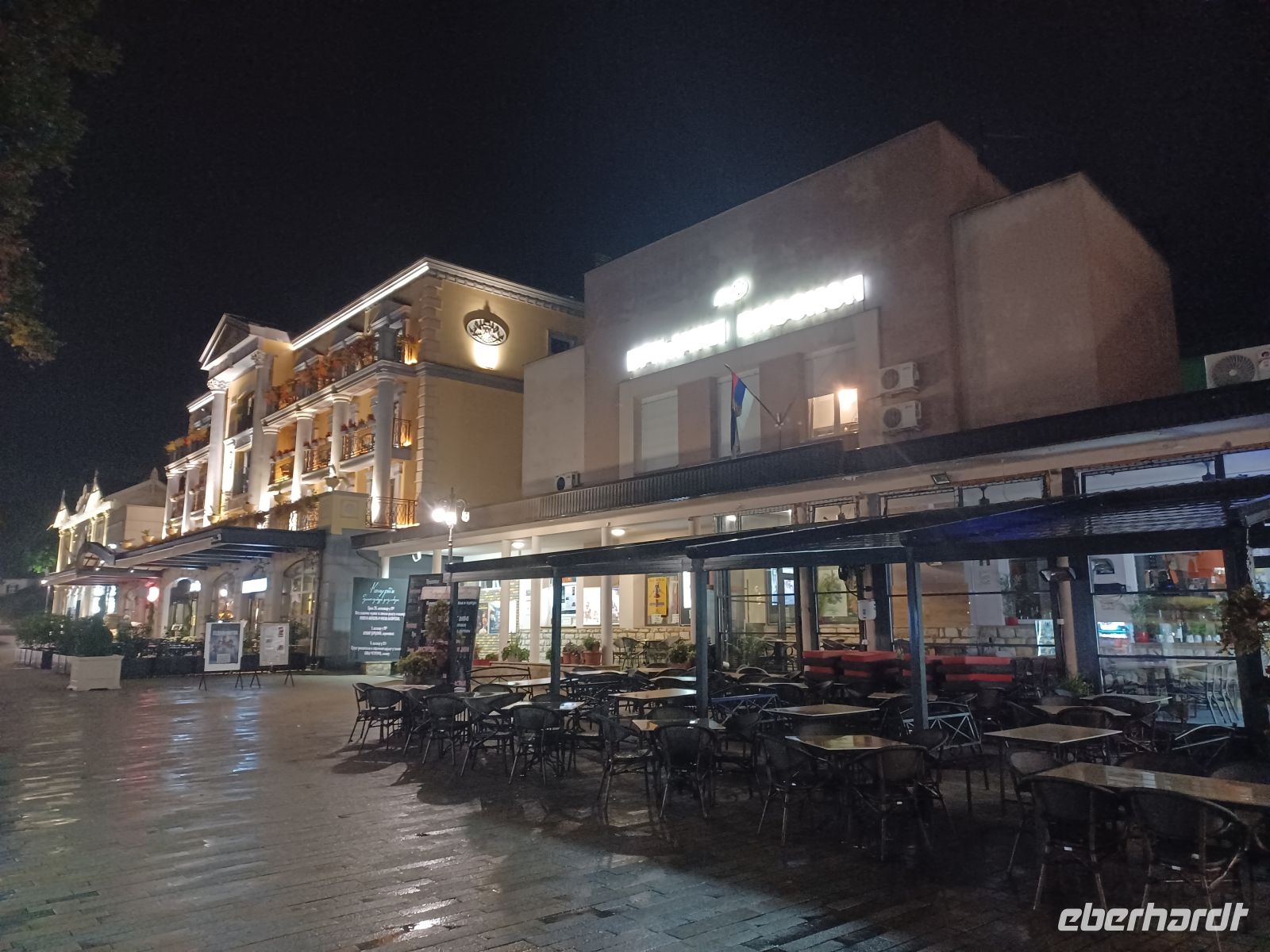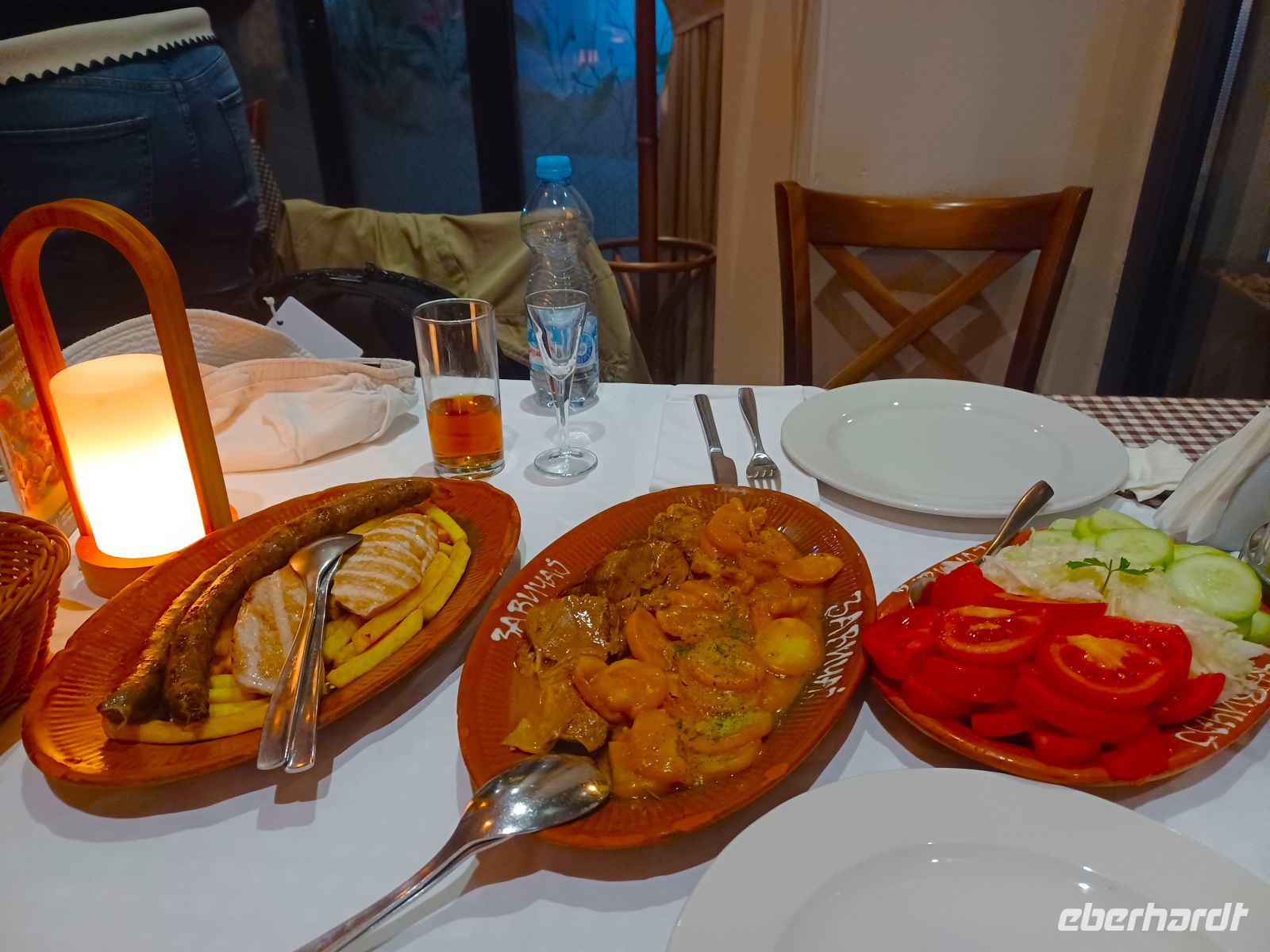Zum Diner sind wir in einem schönen Restaurant direkt an der Promenade von Budva zu Gast; wir lassen uns den leckeren und frisch zubereiteten Wolfsbarsch gut schmecken.