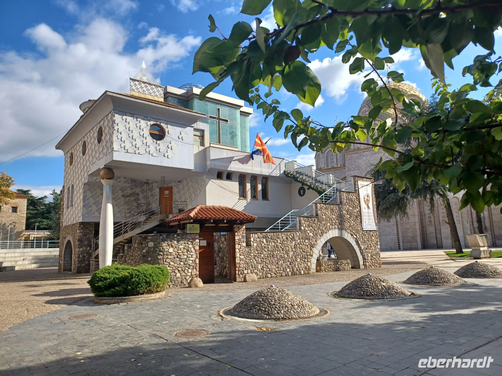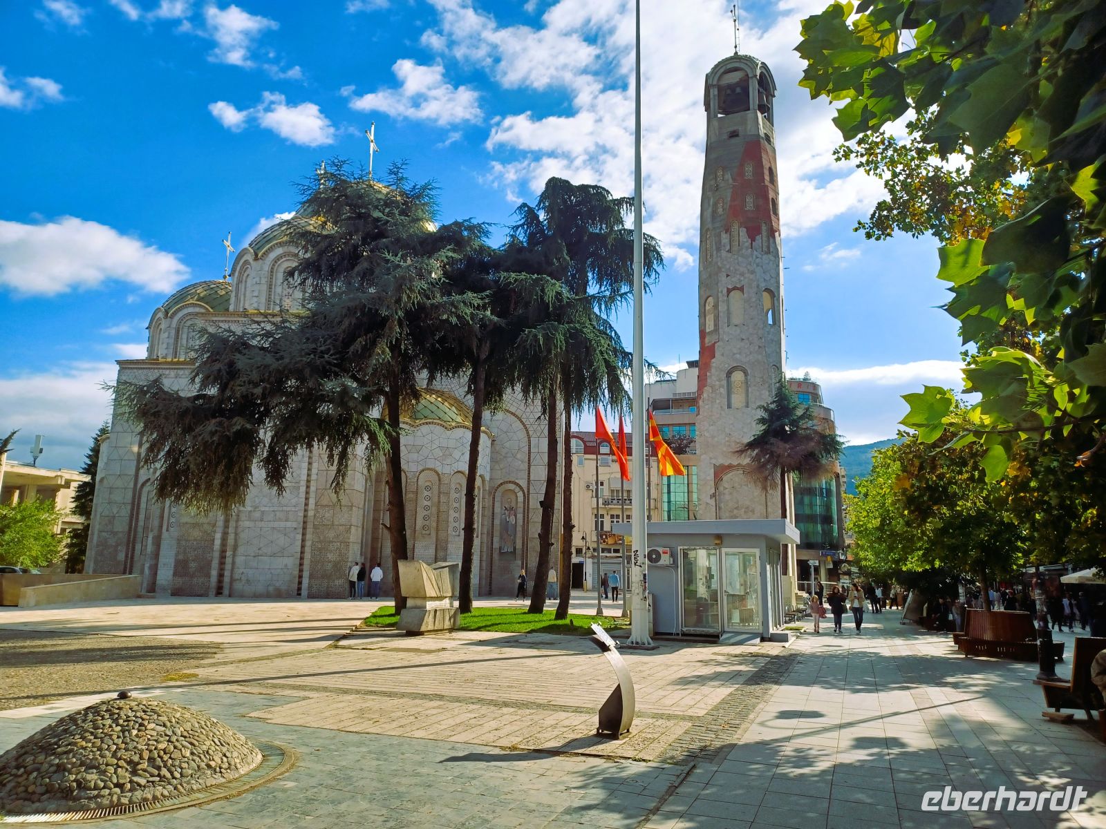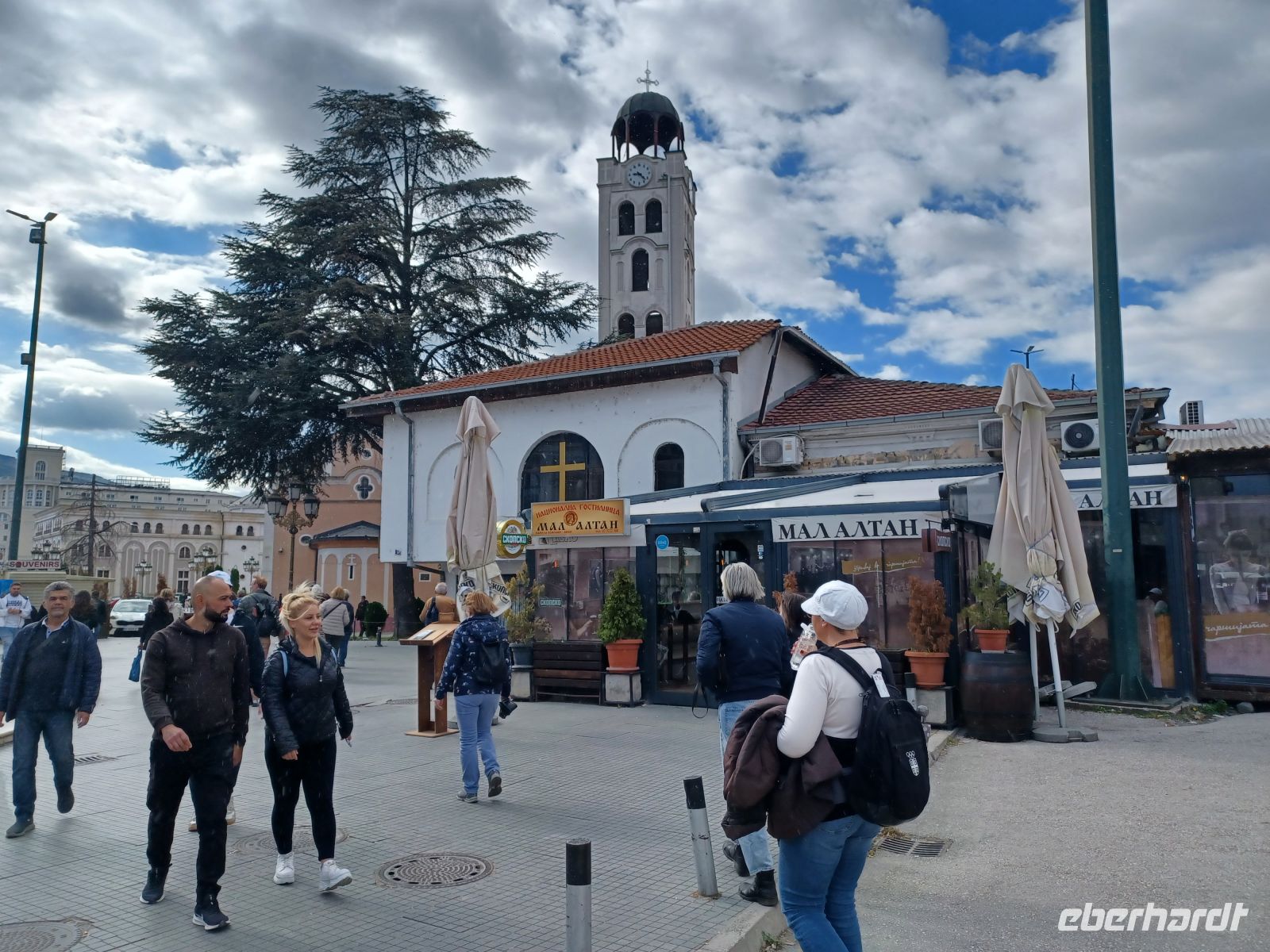 Auffälligstes Zeugnis, bevor der Besucher die nordmazedonische Hauptstadt erreicht, ist das gigantische Kreuz auf hohem Berg über der Stadt. Es soll wohl den anderen Glaubensrichtungen eine Art Dominanz symbolisieren – rätselhafter Balkan!