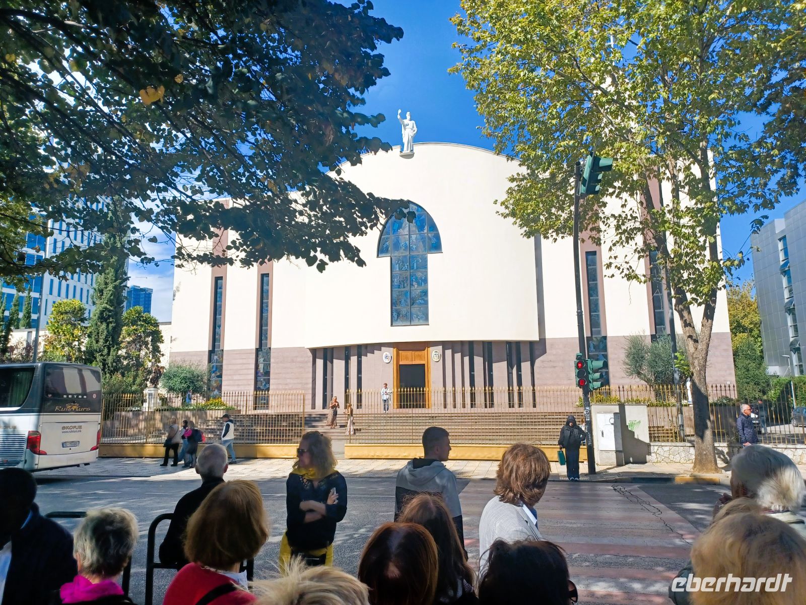 Nun nehmen wir noch eine Nebenstraße; vorbei an der orthodoxen Kirche und begleitet vom ständigen Hupen ungeduldiger Autofahrer, kommen wir wieder an unserem Ausgangspunkt an. Edvin, unser Stadtführer, verabschiedet sich von uns, schnell sind wir in unserem Reisebus verschwunden – mit ihm verlassen wir den Trubel der unruhigen Großstadt.