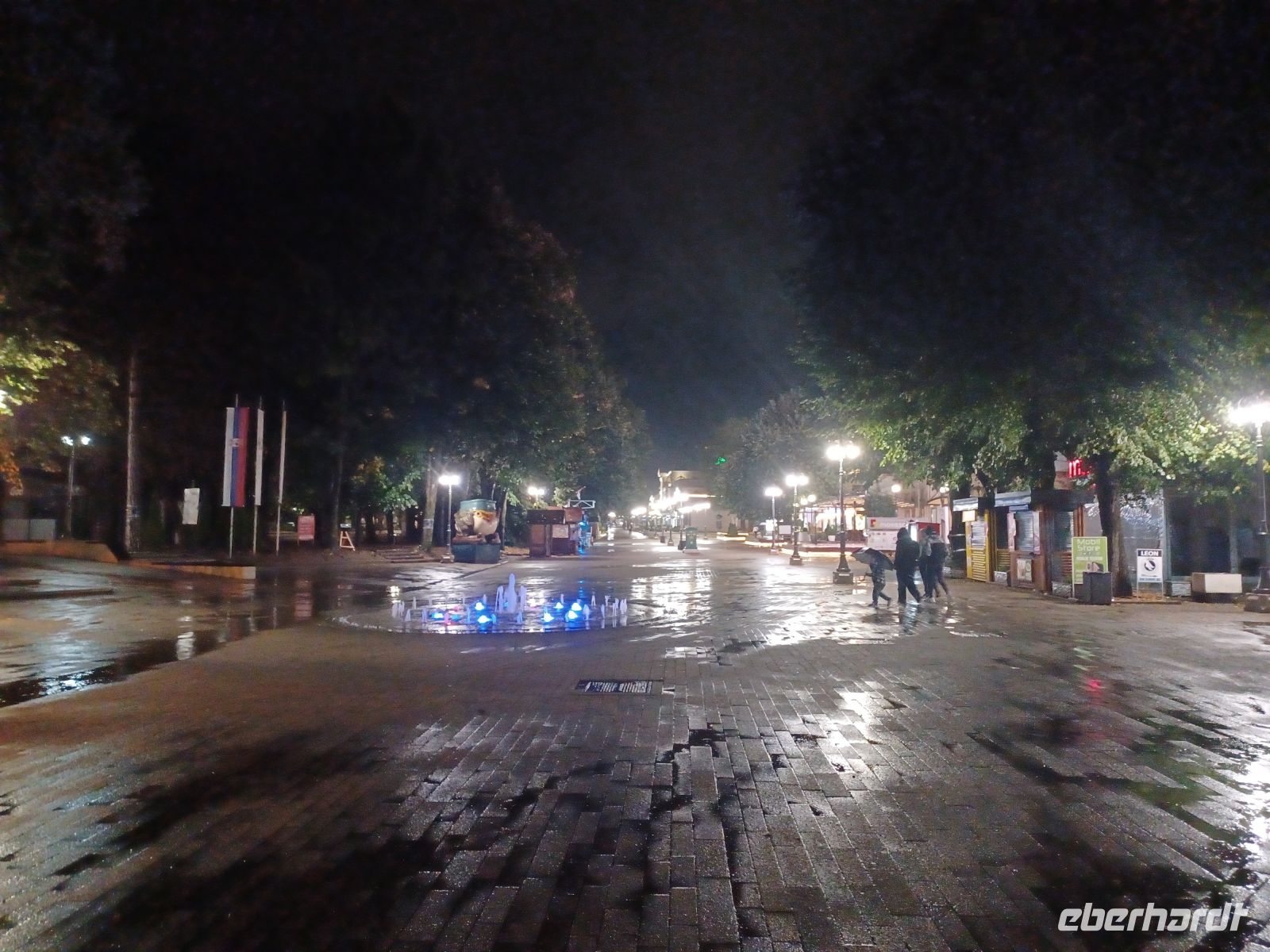 Starker Dauerregen begrüßt uns in Vrnjačka-Banja; es ist der bekannteste Kurort Serbiens. Der Besuch der schönen Promenade gleicht einem Slalomlauf zwischen zahlreichen Pfützen, nasskalte Luft lässt den Körper frösteln – Zeit für eine wärmende Dusche im Hotel, sie bringt die etwas erstarrten Lebensgeister schnell wieder in Schwung.