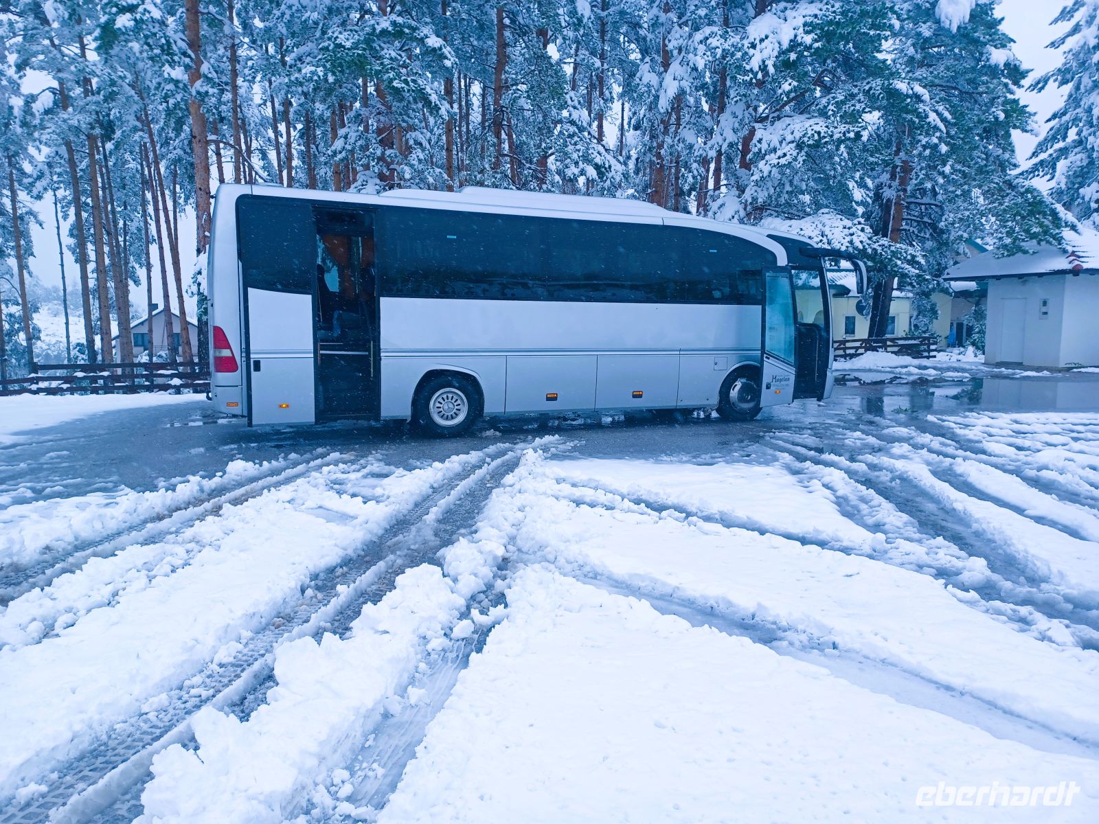 Wir gelangen zum großen Busparkplatz welcher sich gut gefüllt zeigt – an diesem Nachmittag werden wir hier nicht allein sein…