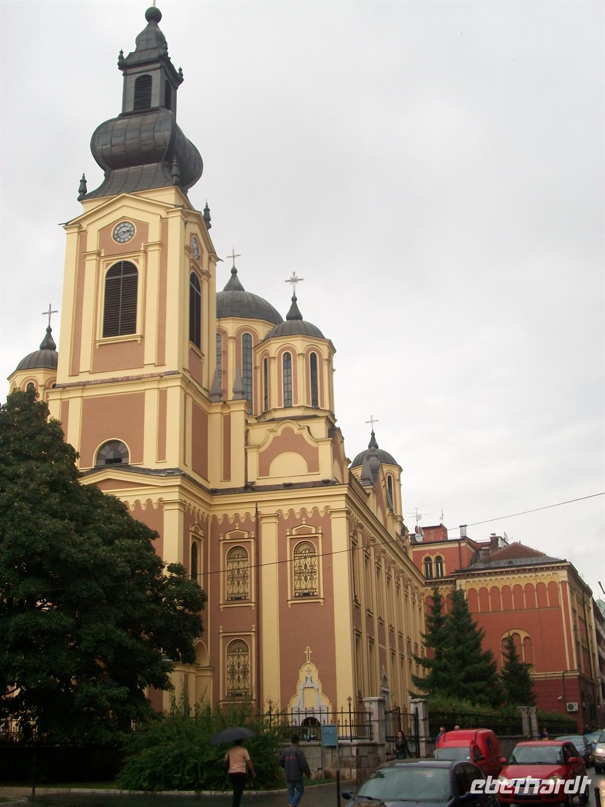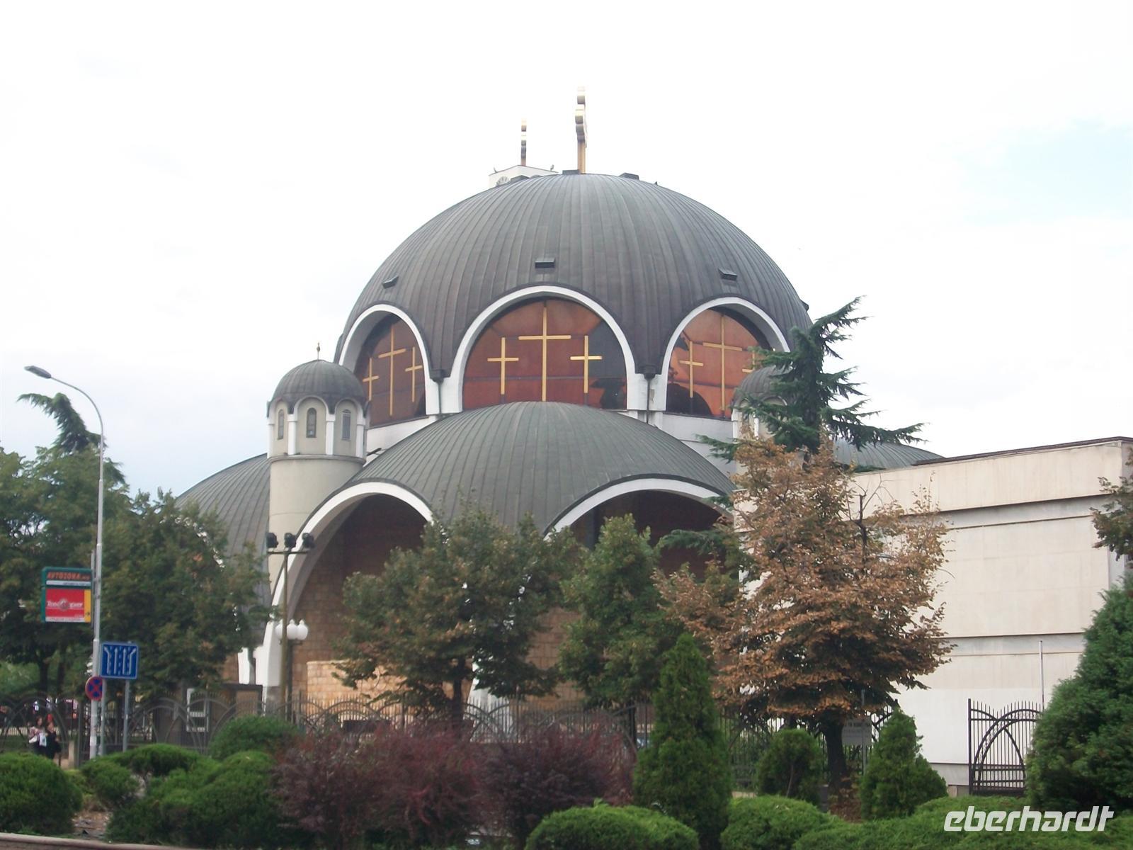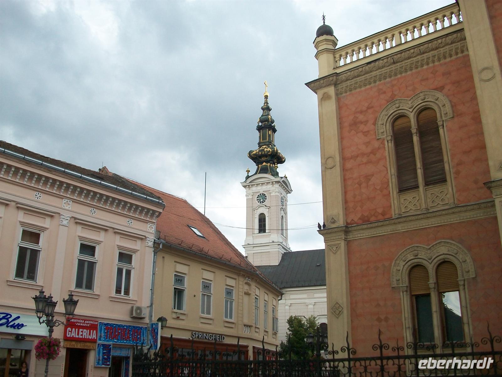 Zoran macht uns mit all dem vertraut und wir sind erstaunt über den guten Zustand dieser Stadt. Ein schöner Bau ist auch die orthodoxe Kirche, ein einschiffiger Bau mit zwei Türmen.