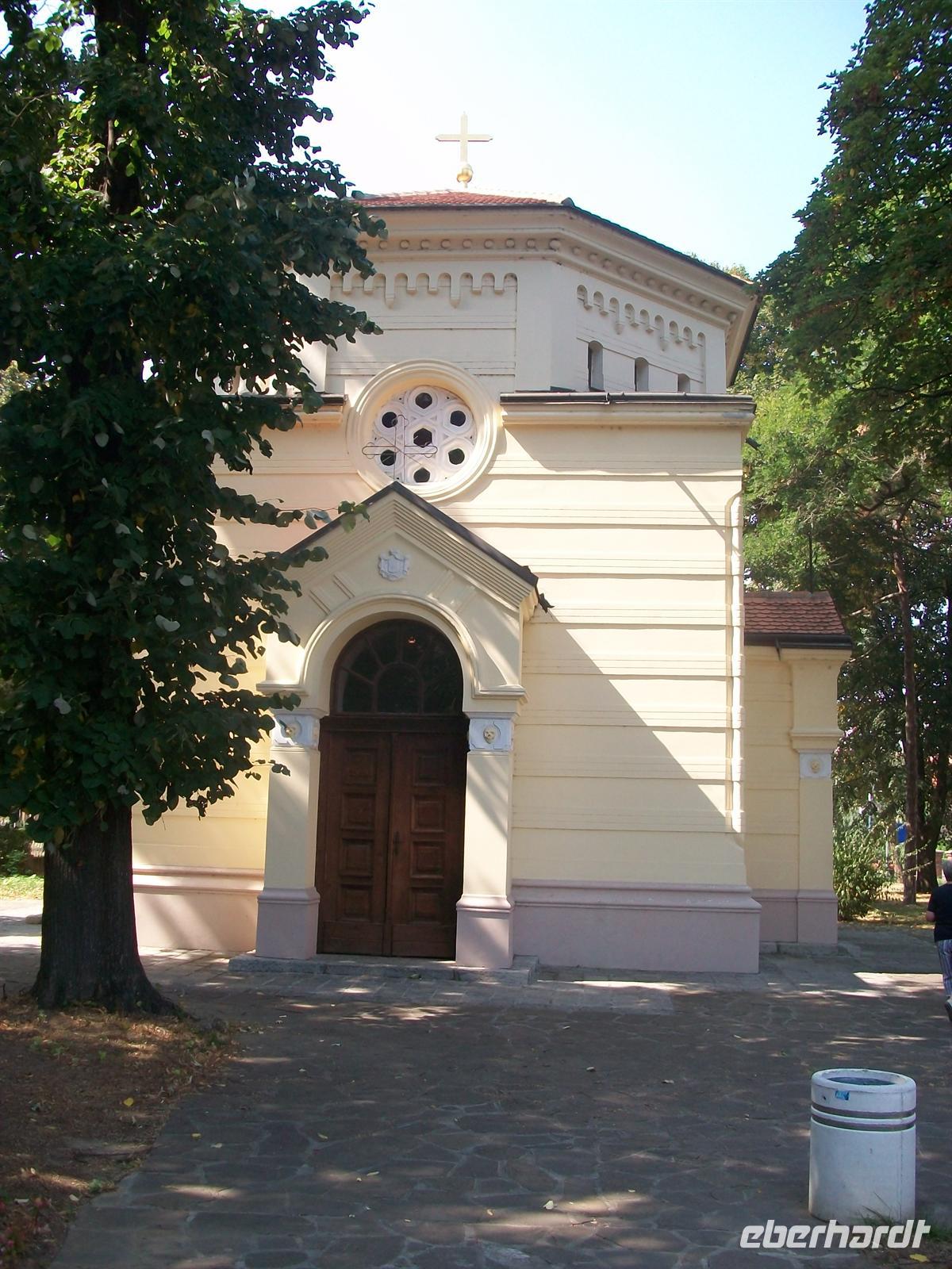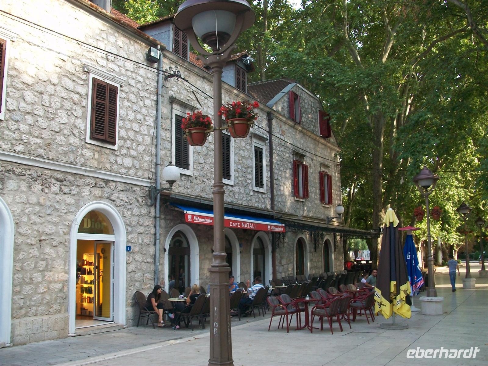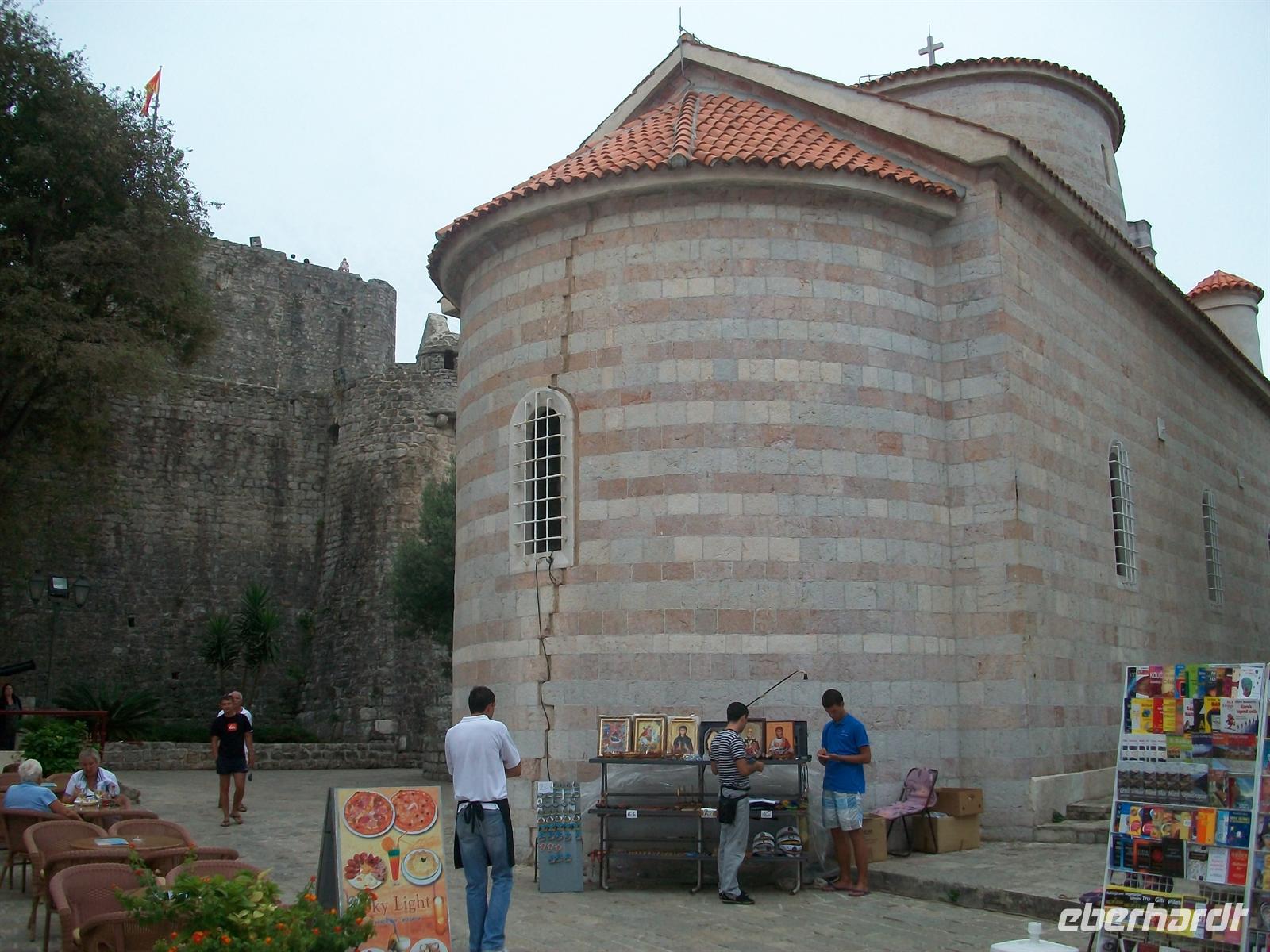 Zoran macht uns mit all dem vertraut und wir sind erstaunt über den guten Zustand dieser Stadt. Ein schöner Bau ist auch die orthodoxe Kirche, ein einschiffiger Bau mit zwei Türmen.