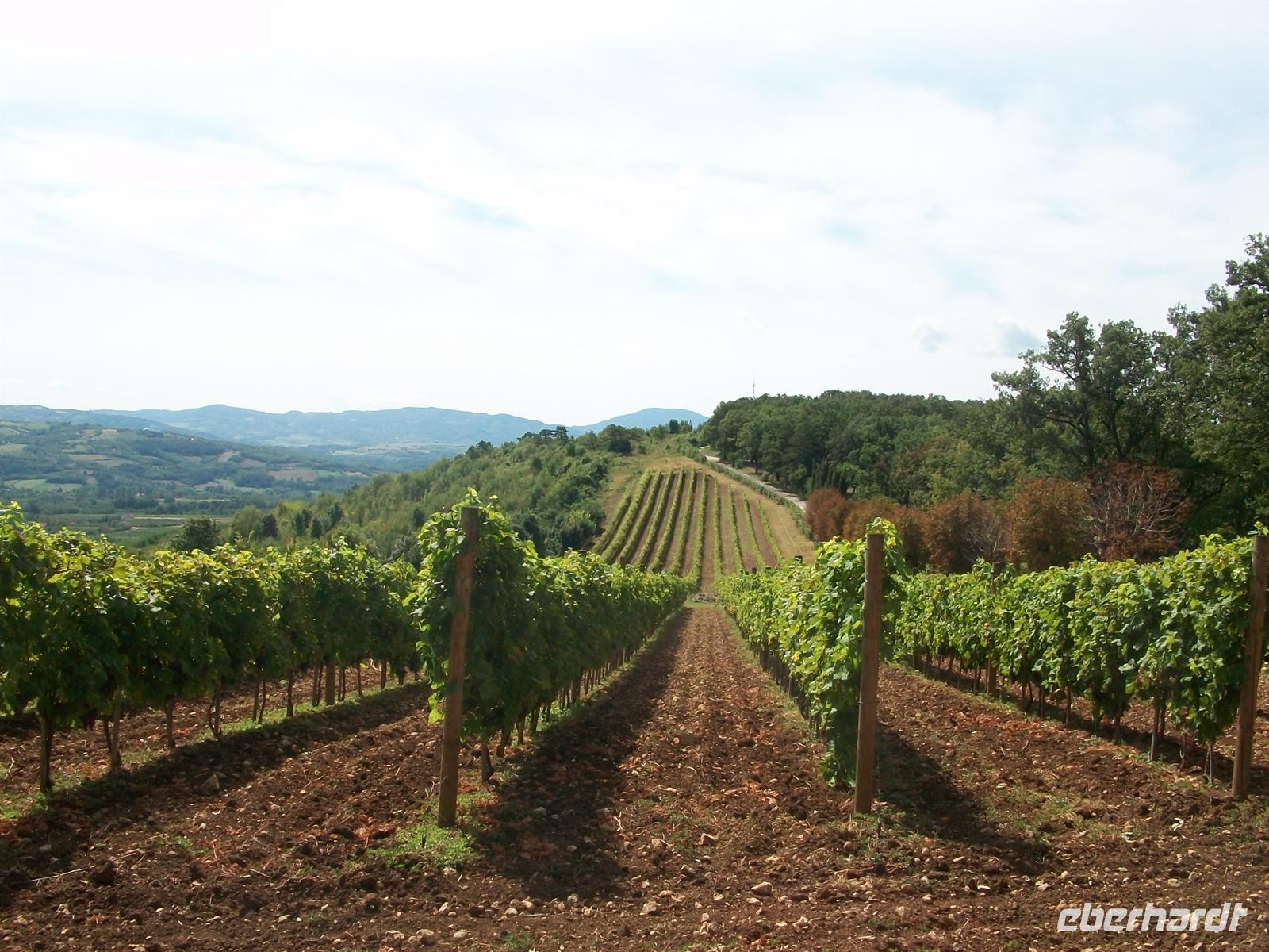 Ich lenke meine Schritte an den Waldrand von dem es einen schönen Blick über das weite Land gibt. Ich sehe das sanfte Hügelland mit den kleinen Orten, den Waldflecken und die Weinhänge der Region. Denn auch hier wird, in fast unberührter Natur, ein edler Tropfen gezogen. Von diesem schönen Anblick weit ins Land hinaus kann ich mich kaum losreisen, aber die Zeit vergeht und die schönen Minuten verfliegen, was uns davon bleibt ist die Erinnerung.