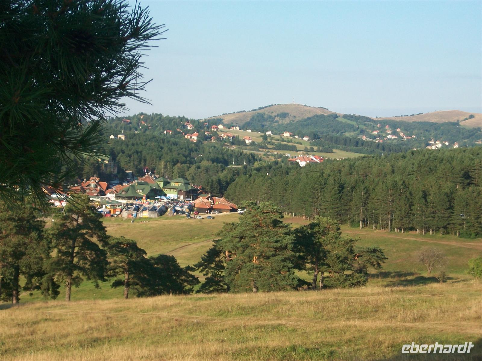 Oberhalb des Ortes hat man einen überwältigenden Überblick auf das Zlatibor- Gebirge mit den sanft bewaldeten Höhen, den weiten Wiesenflächen und einer Natur in diesem Mittelgebirge welches mich an das Erzgebirge der Heimat erinnert.