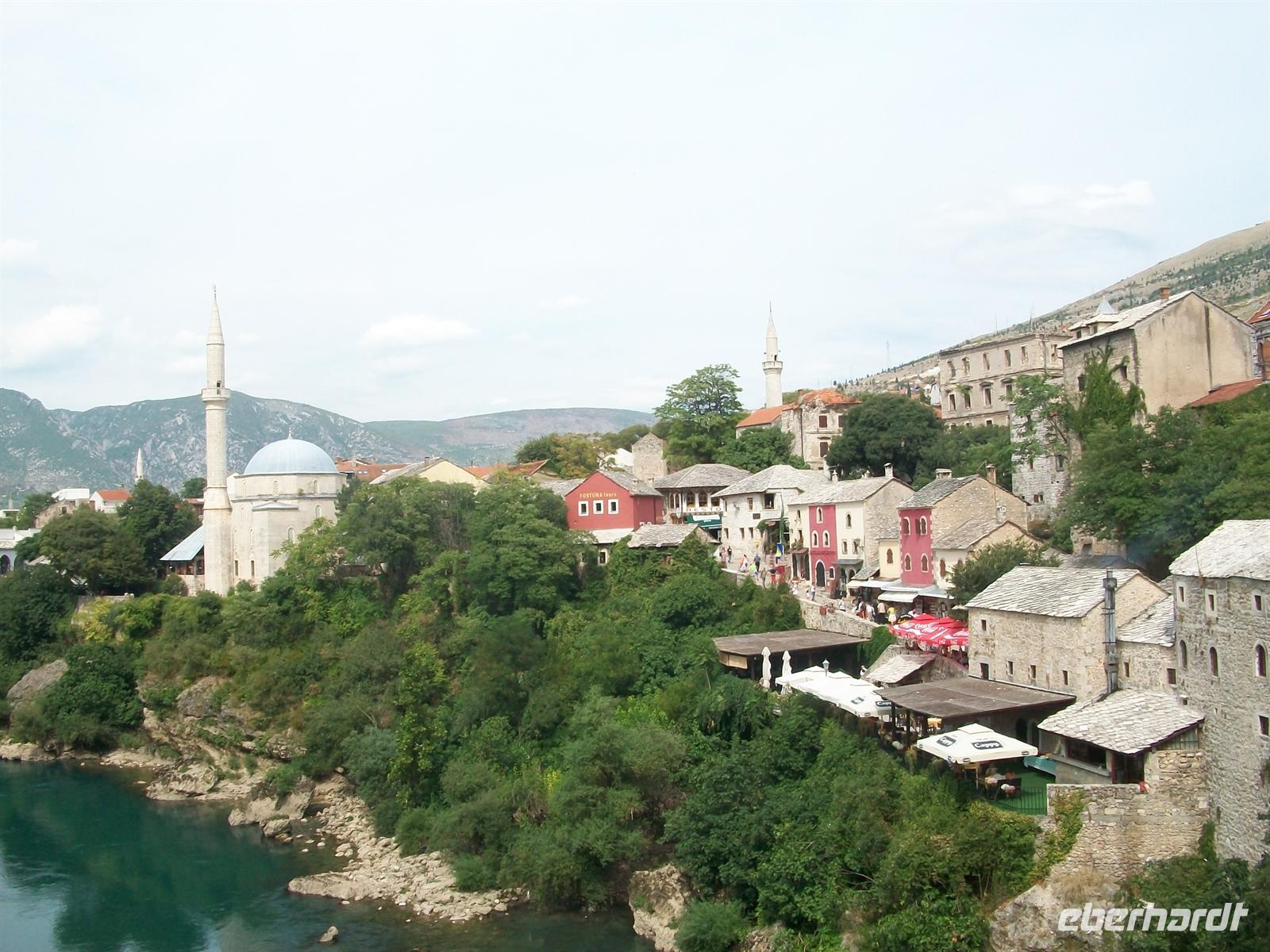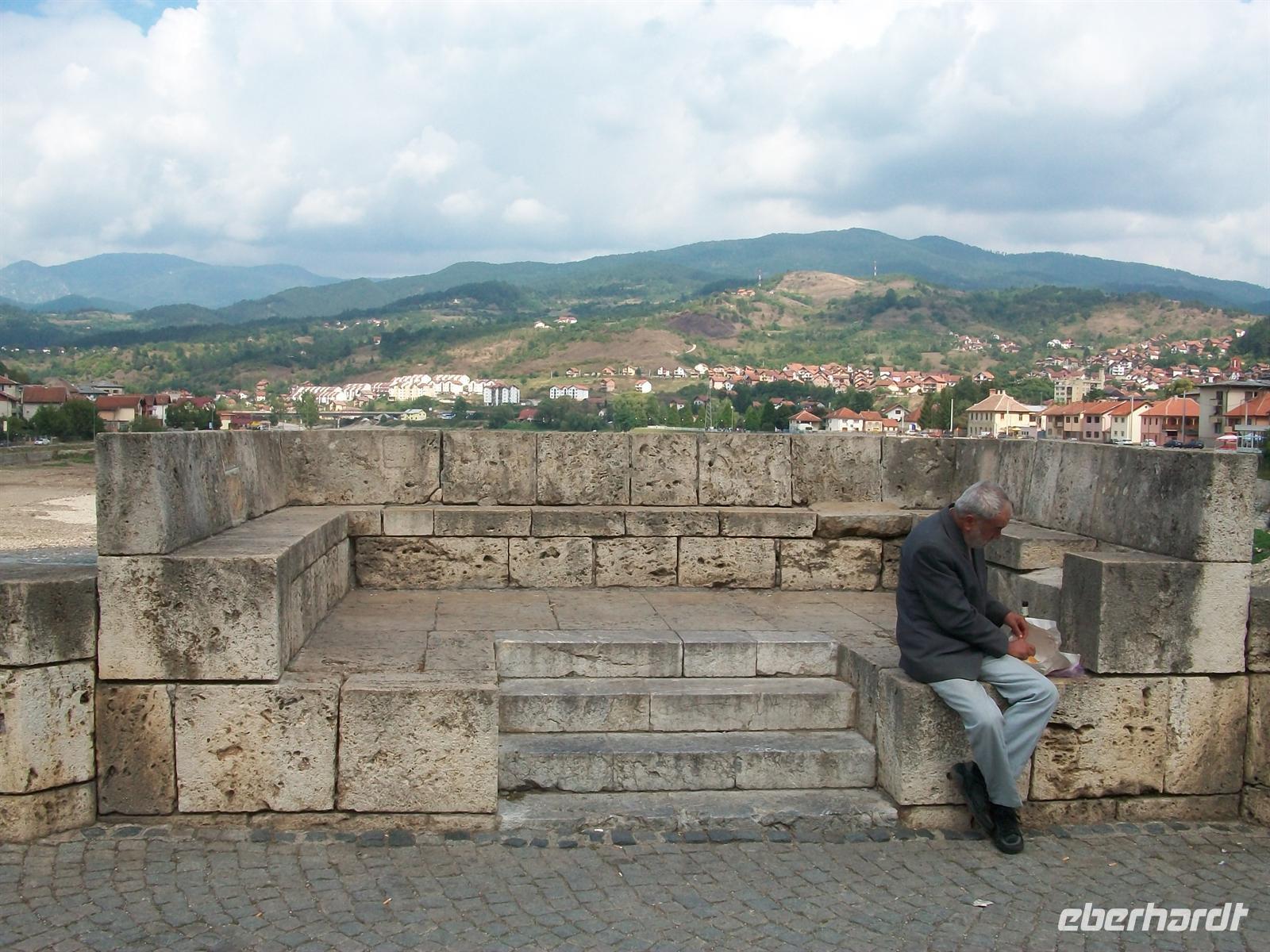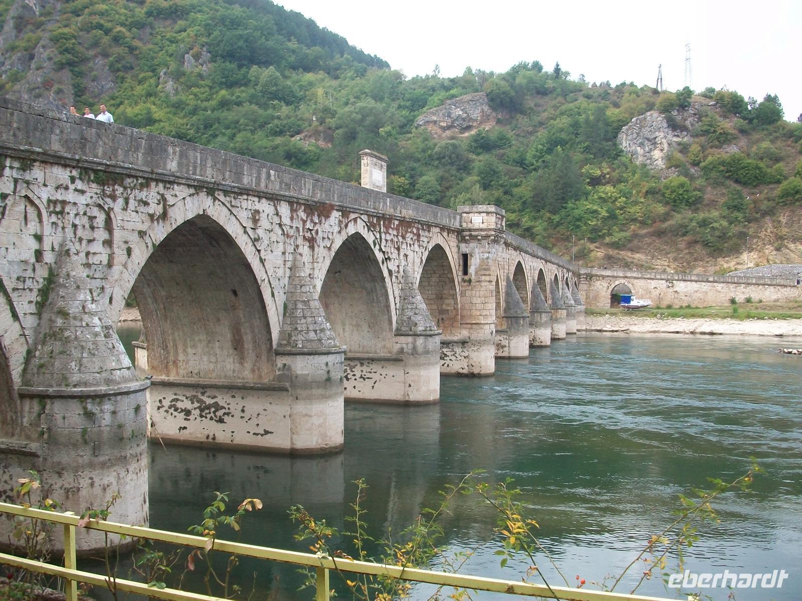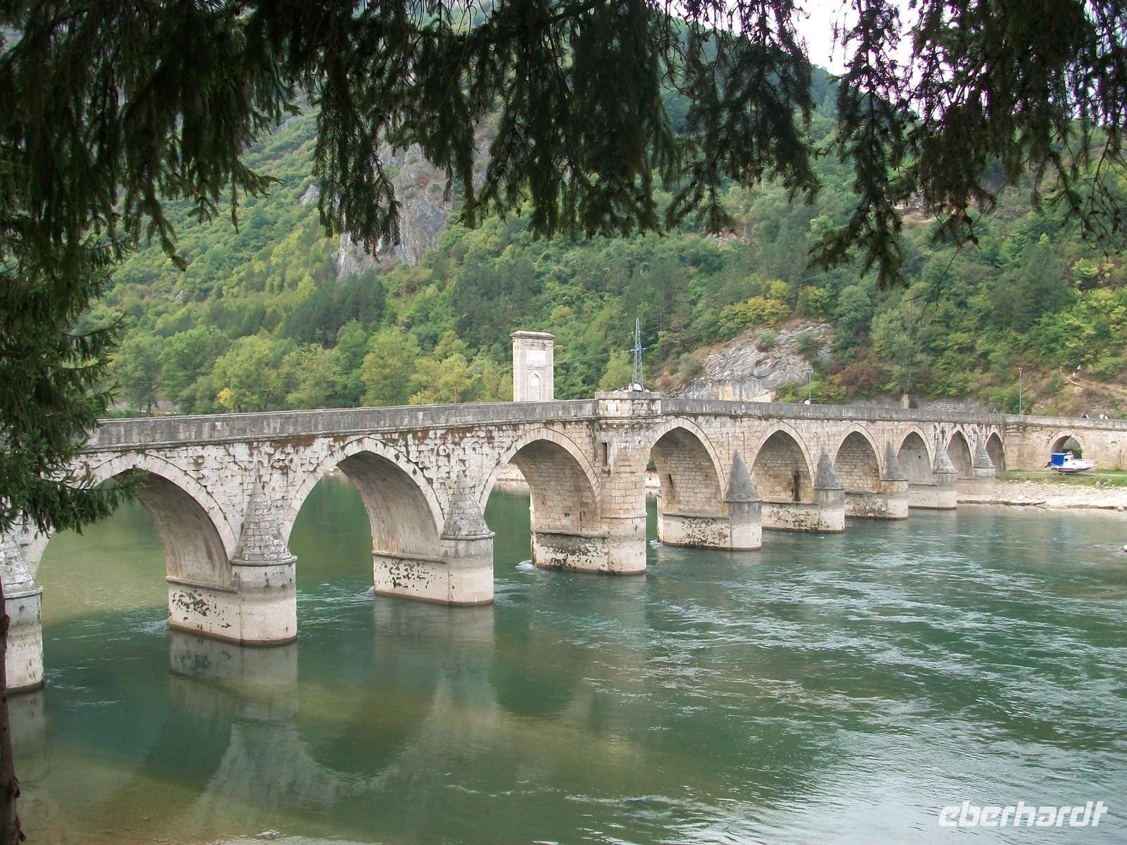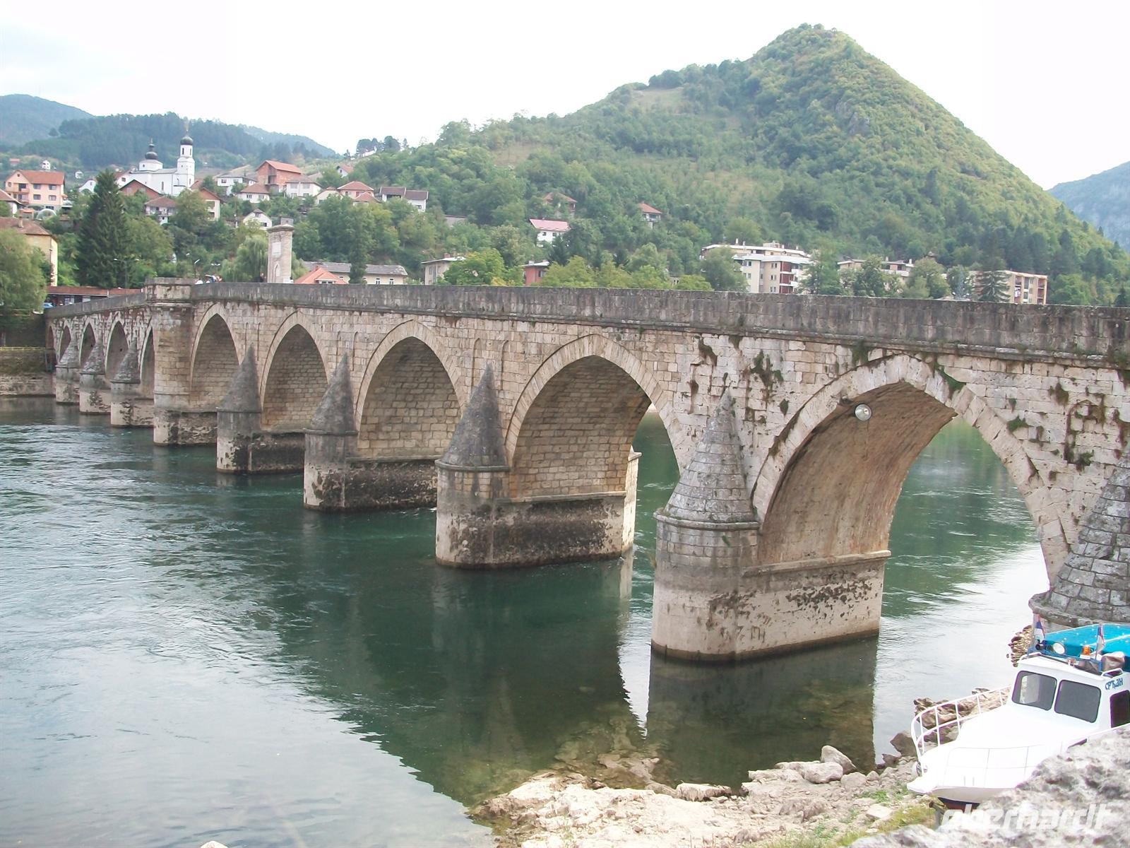 Schon von oben, aus den Bergen kommend, weitet sich der Blick auf die Ebene, in der die Stadt liegt. Ringsum von Bergen umgeben liegt sie etwas eingezwängt und schon von hier ist das blaue Band des Flusses Drina zu sehen. Hier spielt der berühmte Roman von Ivo Andric „Die Brücke über die Drina", für den er den Literaturnobelpreis bekam und der an seiner Brisanz bis zum heutigen Tag nichts eingebüßt hat. Beschreibt doch Andric das schwierige Zusammenleben der verschiedenen Volksgruppen, ihre Liebe, ihren Hass ihre Gewalttätigkeiten untereinander. Aber auch seine Liebe zu den Menschen hier, die im Lieben und Hassen gleich stark sind, aber auch großzügig in der Gastfreundschaft.