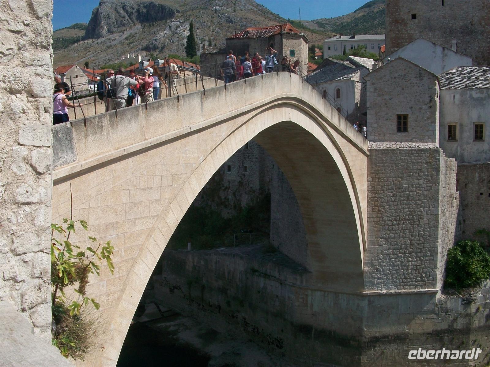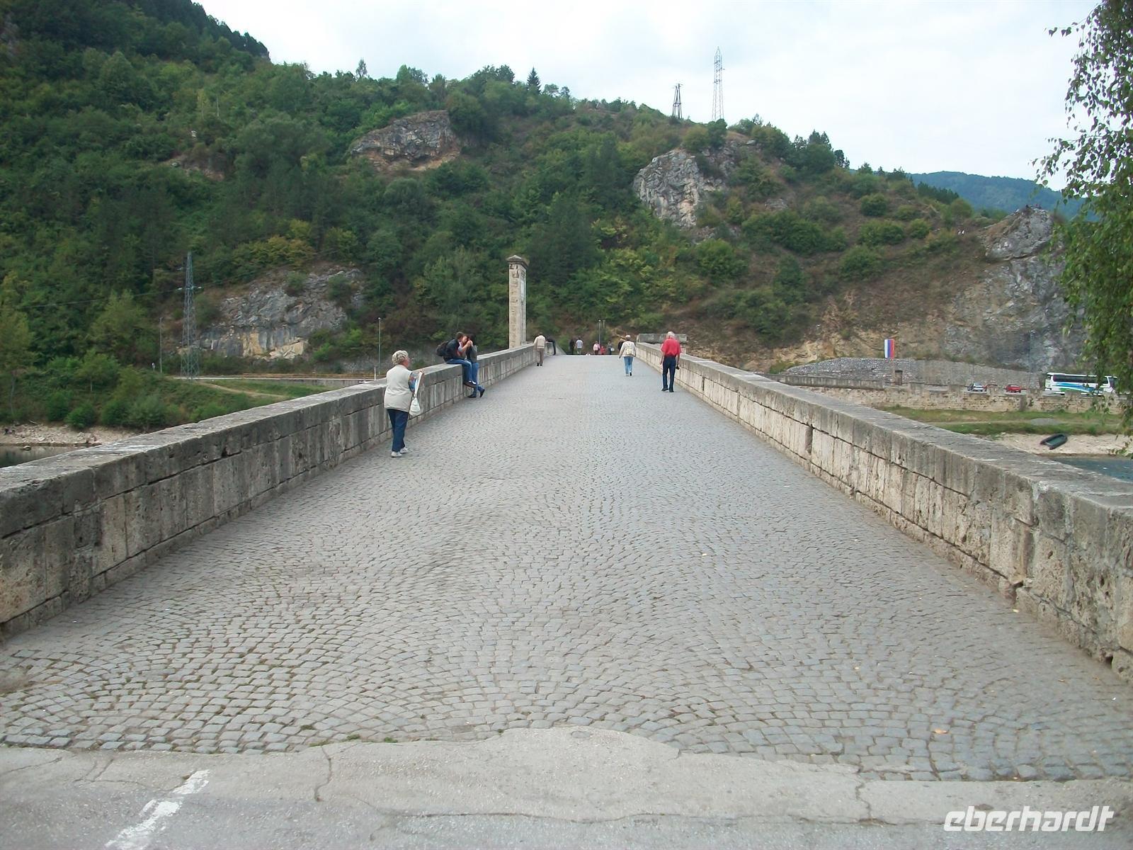 Wir gehen über diese wohl berühmteste Brücke der Weltliteratur, ich habe das Buch in den Händen, setze mich auf das im Roman beschriebene „Sofa", einen steinernen Absatz in der Mitte und lese die Zeilen aus dem Buch. Ja, es ist fast alles so, wie es mir der geniale Dichter in meiner Phantasie malte und als ich das Buch vor vielen Jahren las, hätte ich nie und nimmer gedacht, hier einmal zu sitzen. Es war zu einer Zeit als die Kriegsereignisse noch nicht lange zurücklagen. Aber man soll die Hoffnung nie aufgeben, mit einem guten Gefühl einmal hier gewesen zu sein, gehe ich zum Bus, der an der anderen Seite der Brücke auf uns wartet.