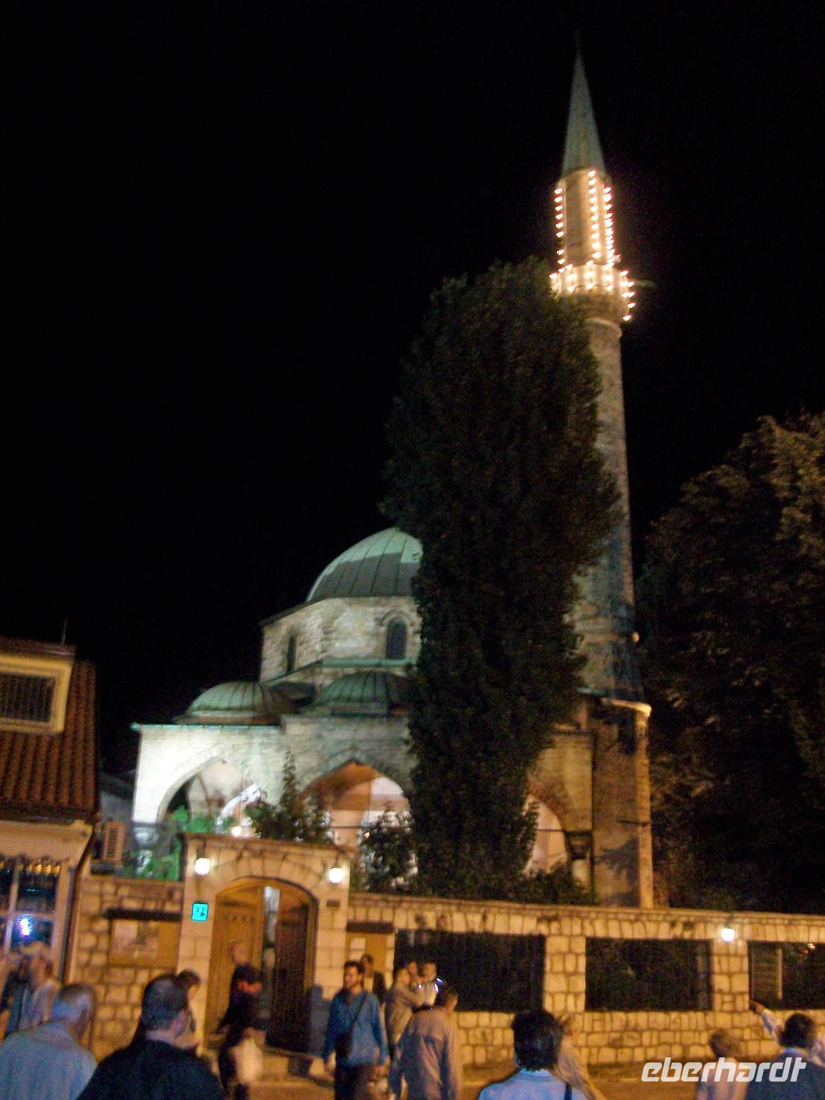 Gegen 16.40 Uhr erreichen wir Sarajevo. Auch hier kommen wir direkt aus den Bergen und sind unvermittelt in der Stadt. Die Stadtführung ist morgen am Vormittag und so fahren wir erst einmal zu unserem Hotel in der Nähe des Flughafens. Nach dem Check- In eine kurze Zeit zum frisch machen, dann geht es zum Abendessen in ein typisches Restaurant im türkischen Teil der Stadt. Hier gibt es wieder gutes, landestypisches Essen in osmanischem Geschirr welches aus Metall gearbeitet ist. Das ist nun wieder etwas ganz besonderes und lässt das Essen zu einem Erlebnis werden. Dann schreckt uns ein Böllerschuss auf, es ist Sonnenuntergang und da zurzeit Ramazan (Ramadan) ist, kündet er denn Moslems an, nun die Dinge wieder tun zu dürfen, die bis dahin den Gläubigen verboten waren.