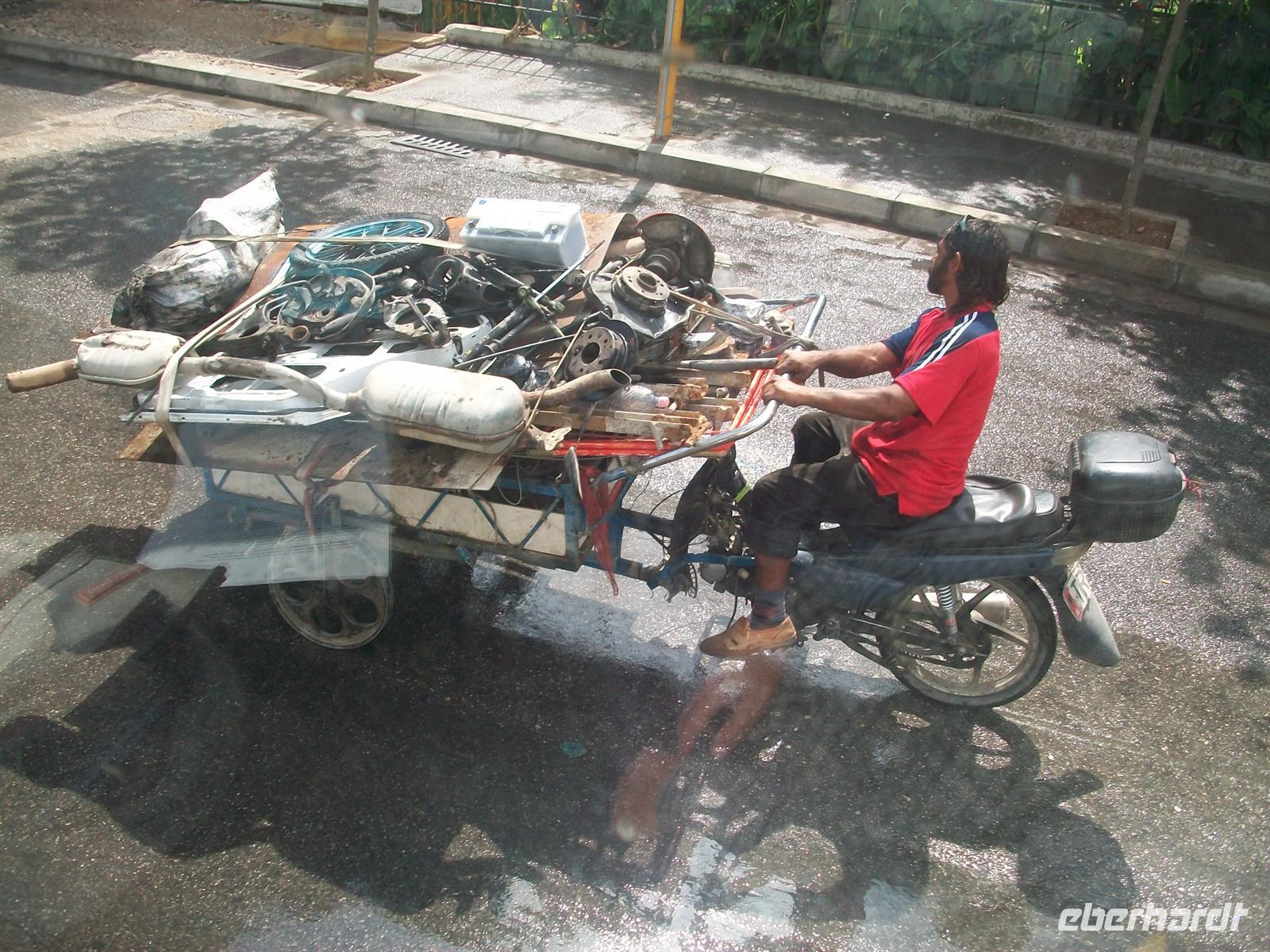 Das ländliche Leben spielt sich selbst hier auf dieser stark befahrenen Fernverkehrsstraße ab und so begegnet uns so mancher Karren dem ein Esel vorgespannt ist. Relikte einer längst vergangenen Zeit, hier zu Beginn des 21. Jahrhunderts alltägliche Realität.