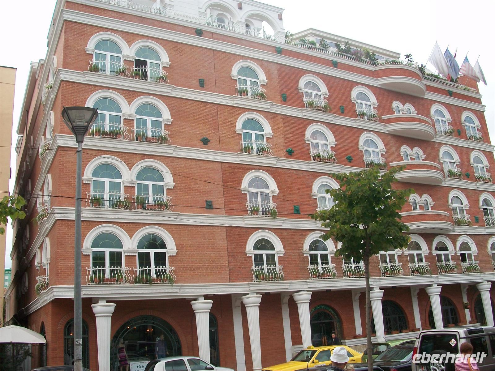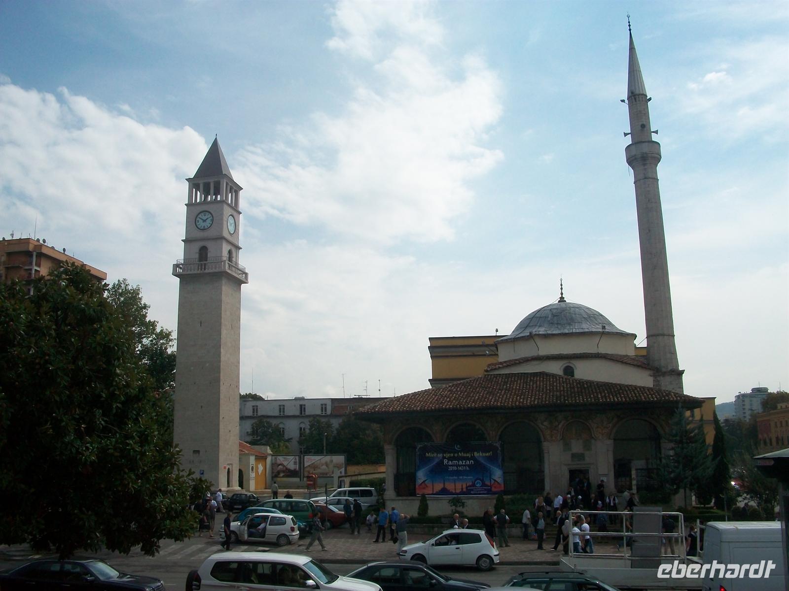Es grenzt fast an ein Wunder dass wir in diesem Gewühl unseren Stadtführer finden, aber wir treffen ihn und damit kann der durchaus interessante Rundgang durch die Albanische Hauptstadt beginnen. Der Bus bleibt stehen und wir begeben uns auf eine Reise in Vergangenheit und Gegenwart einer Stadt die eine sehr bewegte Geschichte hat. Tragisch ist die Lage zu beschrieben in die der Kommunistenführer Enva Hoxha das Land brachte, totale Isolation nach außen hin, selbst gegenüber den anderen Staaten des Ostblocks, haben in Wirtschaft und Gesellschaft verheerende Folgen hinterlassen. Heutigentags ist man im Begriff das Versäumte schnell aufzuholen, ein reger Bauboom zeugt davon.