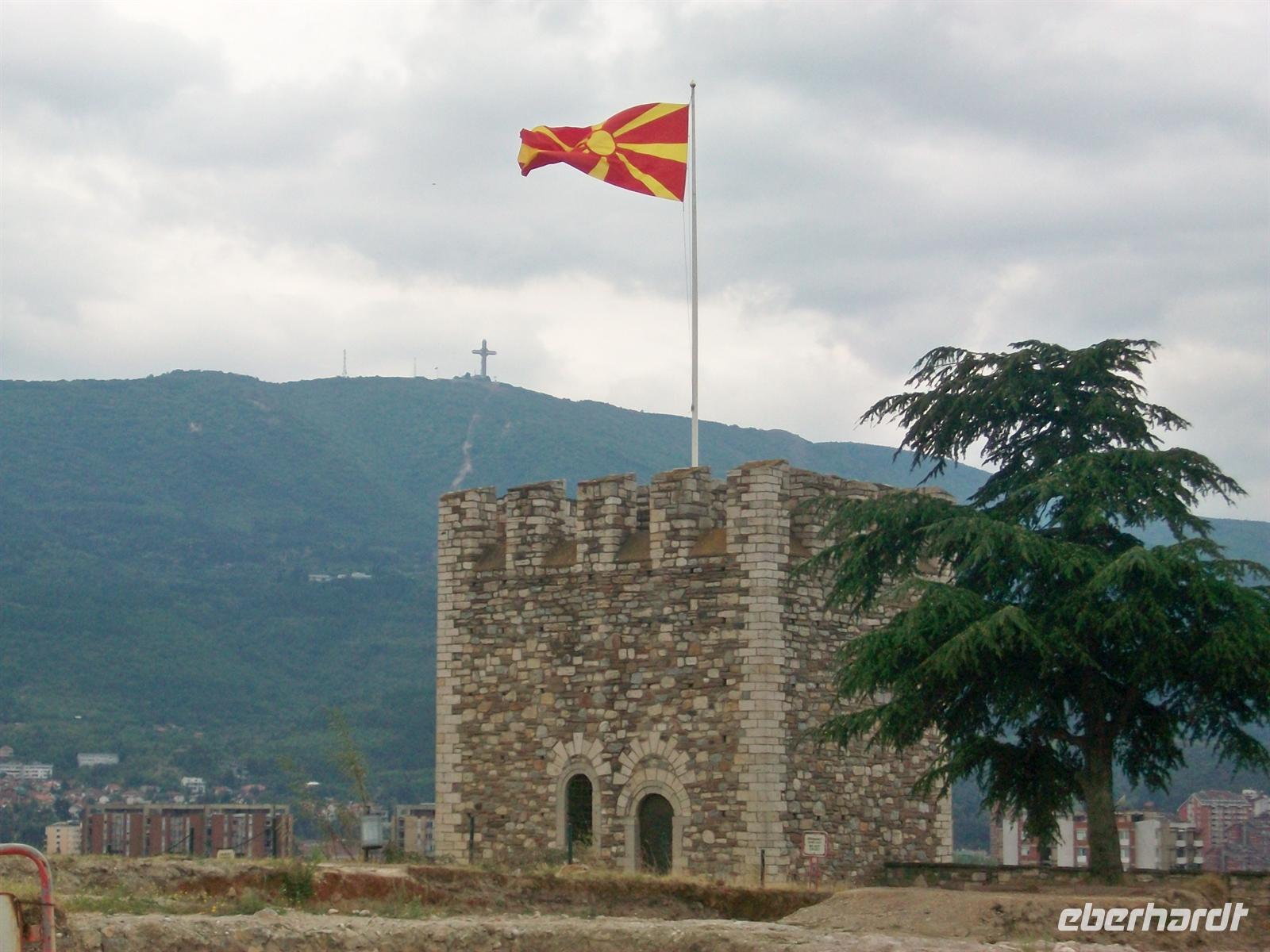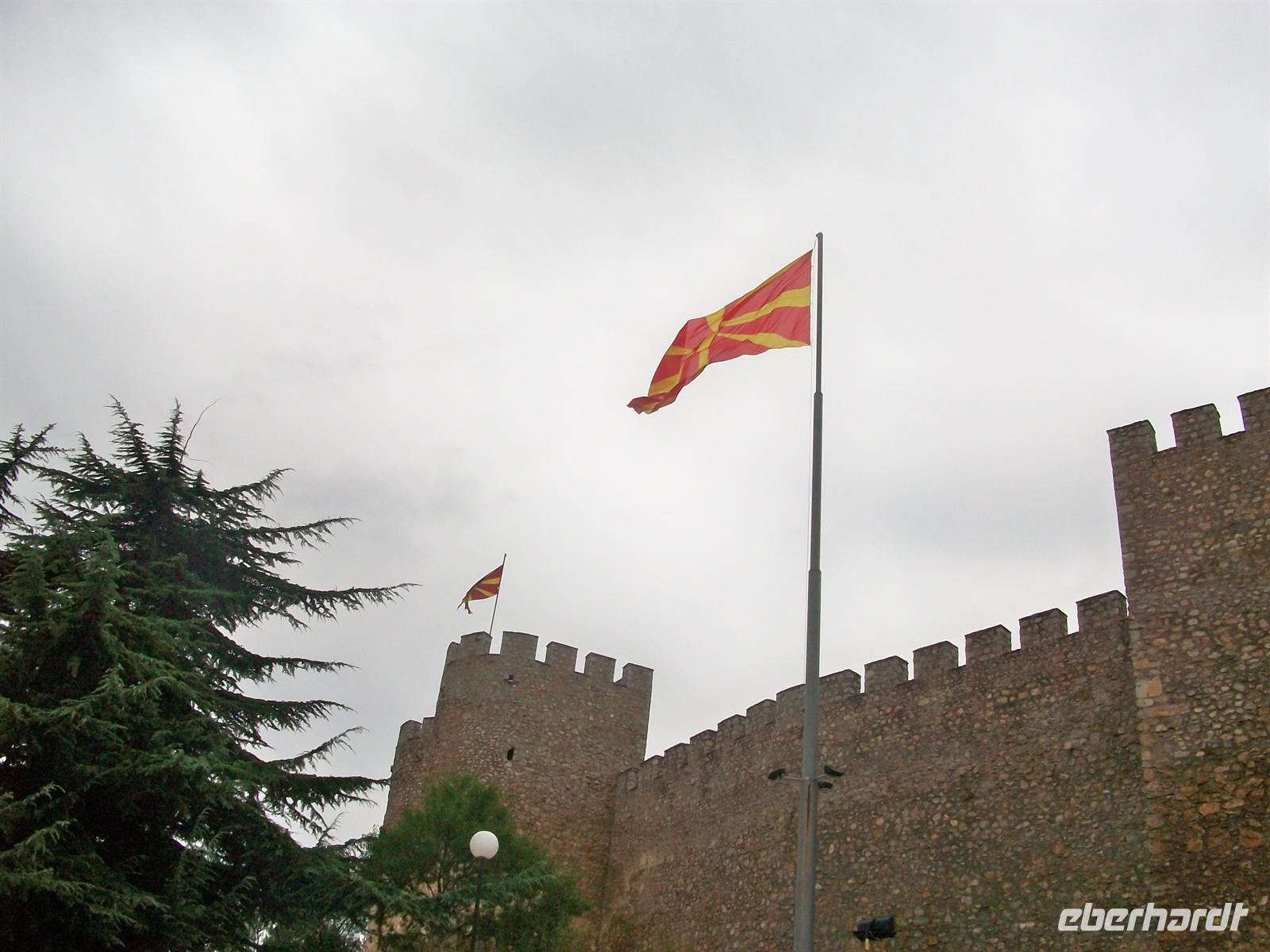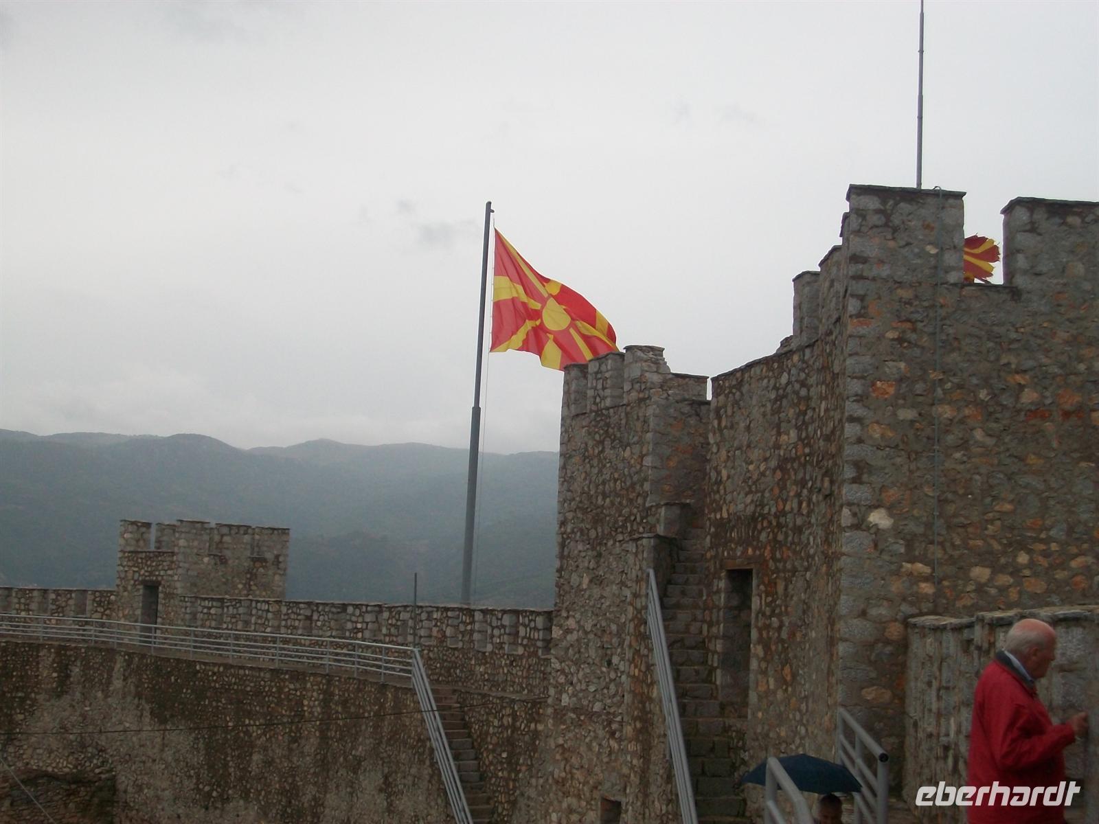Dieser Ort ist reich an kulturellen Schätzen und so lenken wir zuerst unsere Schritte hinauf zur Festung. An einem der Türme flattert die rot- gelbe Fahne Mazedoniens lustig im Wind.
