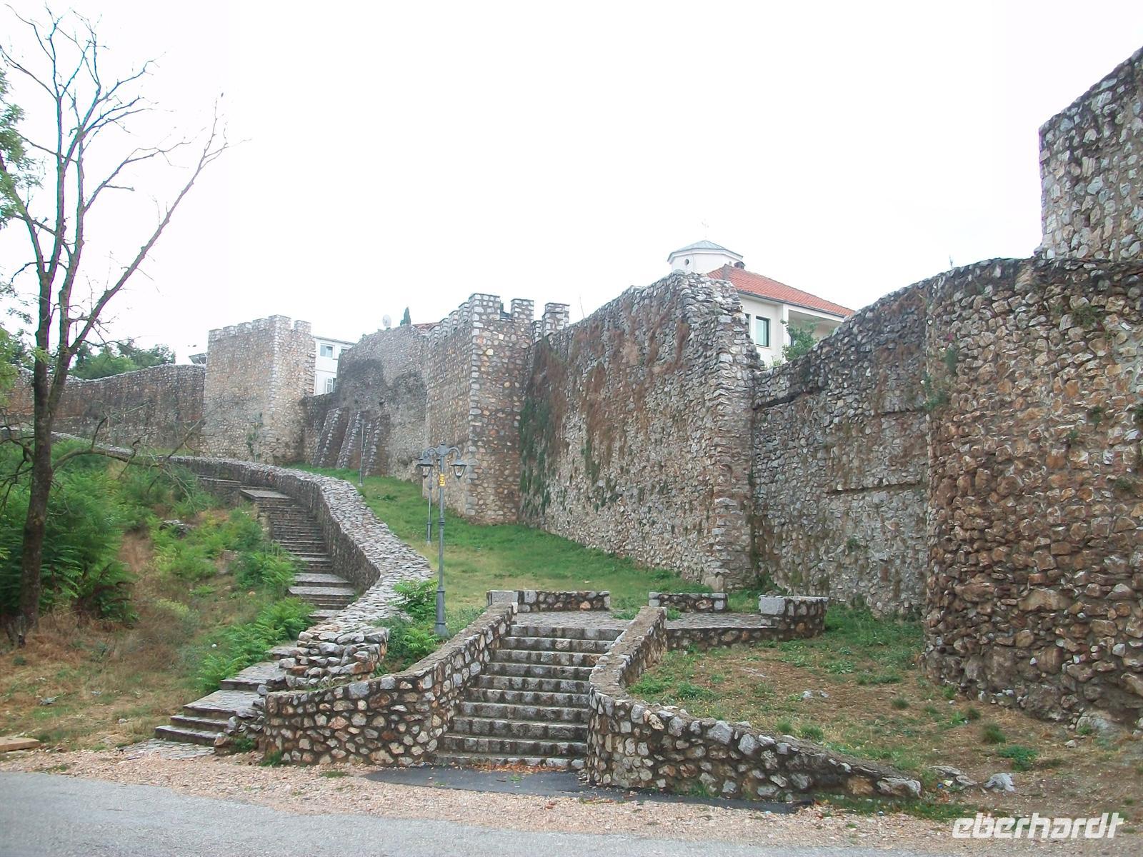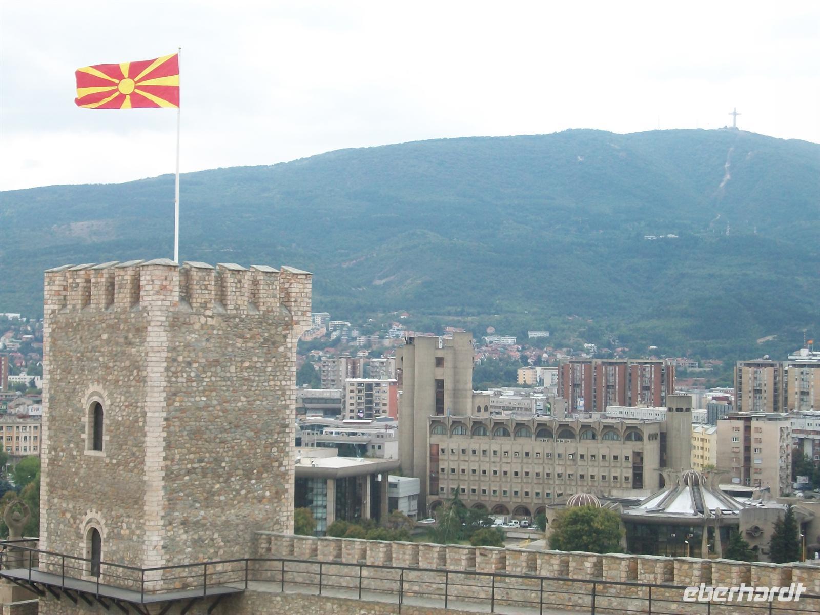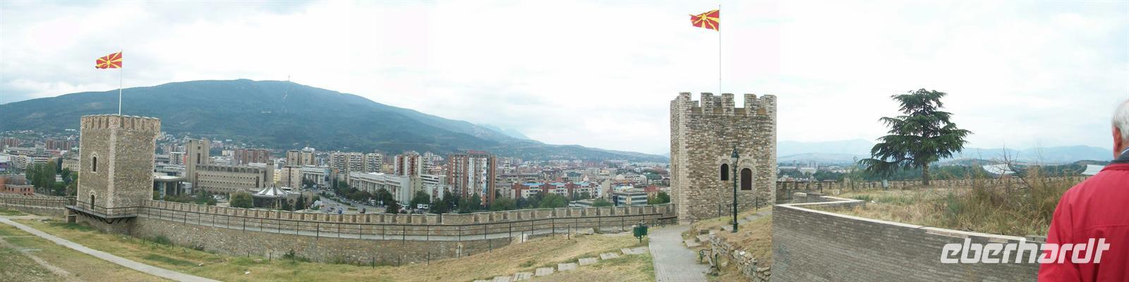 Dieser Ort ist reich an kulturellen Schätzen und so lenken wir zuerst unsere Schritte hinauf zur Festung. An einem der Türme flattert die rot- gelbe Fahne Mazedoniens lustig im Wind.