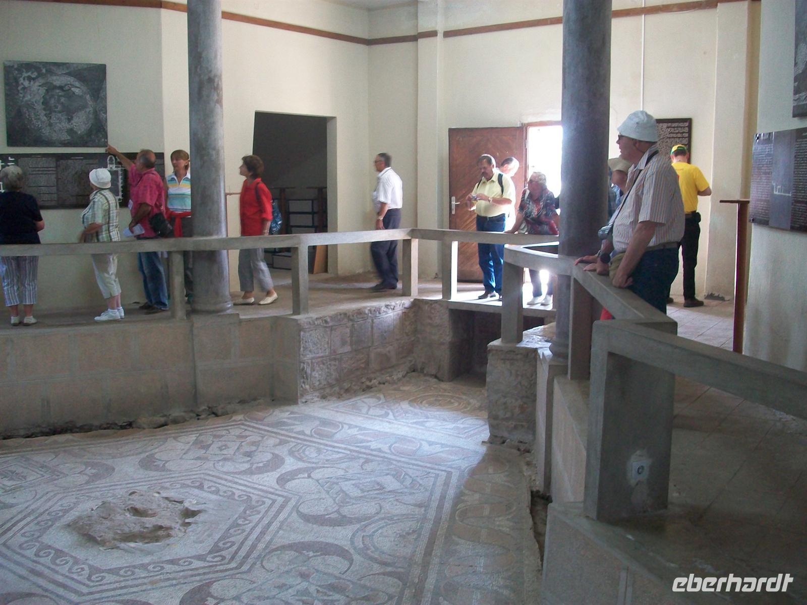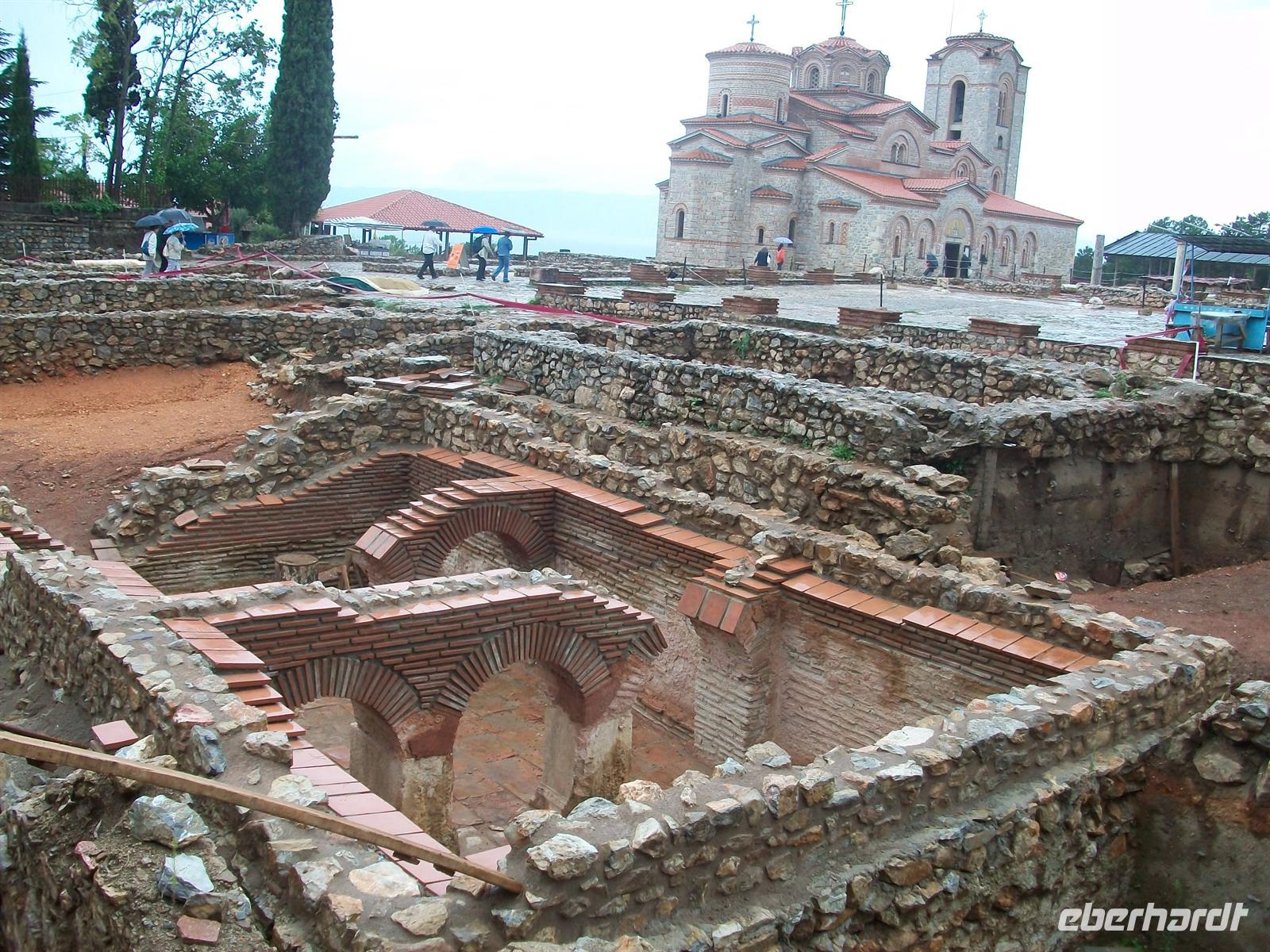 Nach dem wir uns die Festung erschlossen haben, geht es die kleine Anhöhe hinunter in die Stadt. An den Ausgrabungen vorbei, erschließen wir uns unter den sachkundigen Erklärungen unserer Führerin noch die schöne orthodoxe Kirche, die aus rötlichem Stein erbaut wurde. Dazu erklingen, vom Band eingespielt, die Gesänge orthodoxer Mönche. Es ist eine Reise in eine fremde Kultur und es gibt wohl niemanden der sich von dem nicht gefangen nehmen lässt. Ein kurzes Innehalten, eine kleine Meditation inmitten byzantinischer Kultur, begleitet vom schwermütigen a- cappella- Gesang der Mönche.