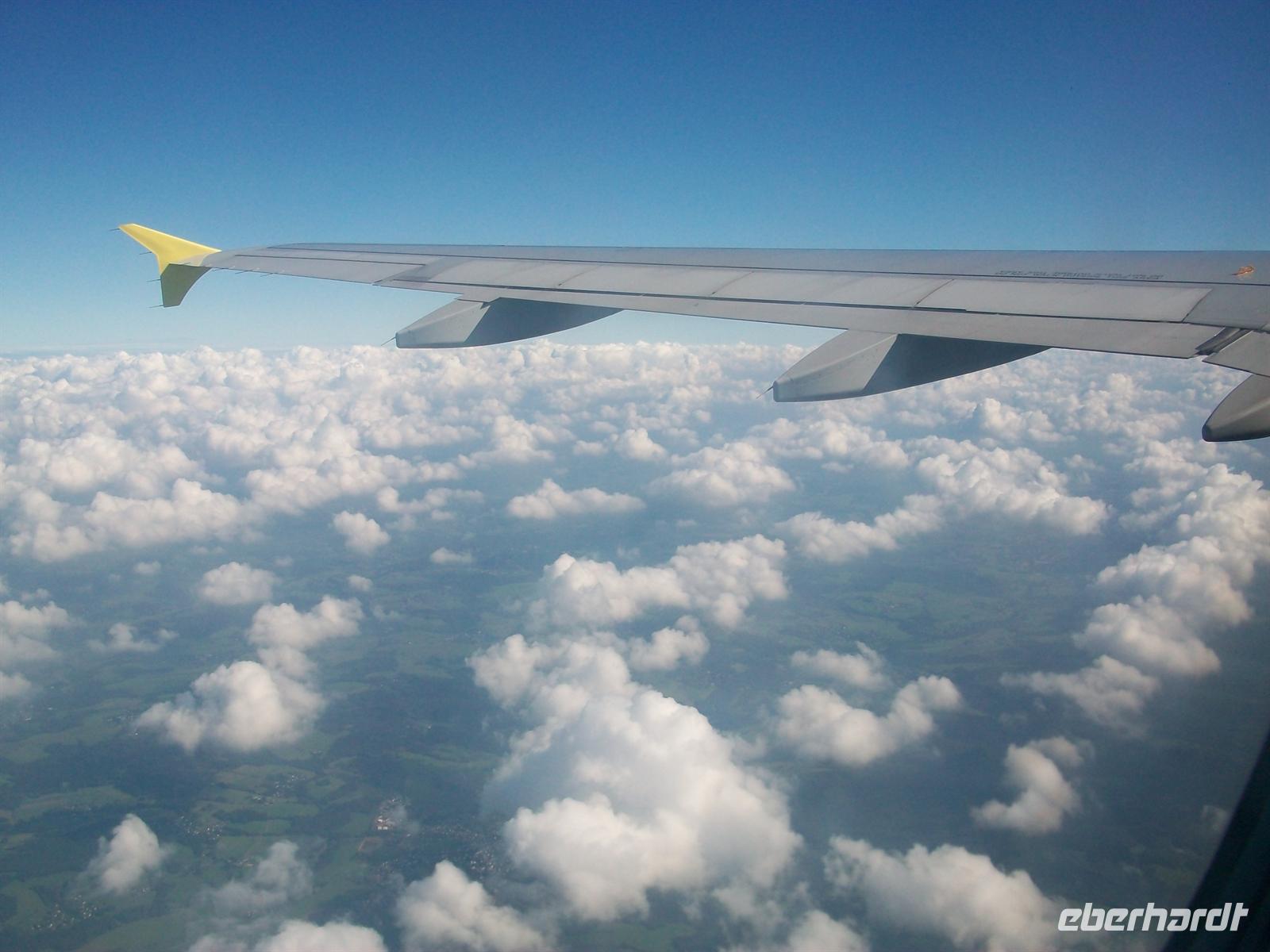 Dann, nach den Sicherheitskontrollen heißt es erst einmal warten. Doch pünktlich wird unser Flugzeug bereitgestellt und 8.25 Uhr heben wir ab. Bald taucht unter uns die Stadt Dresden auf,