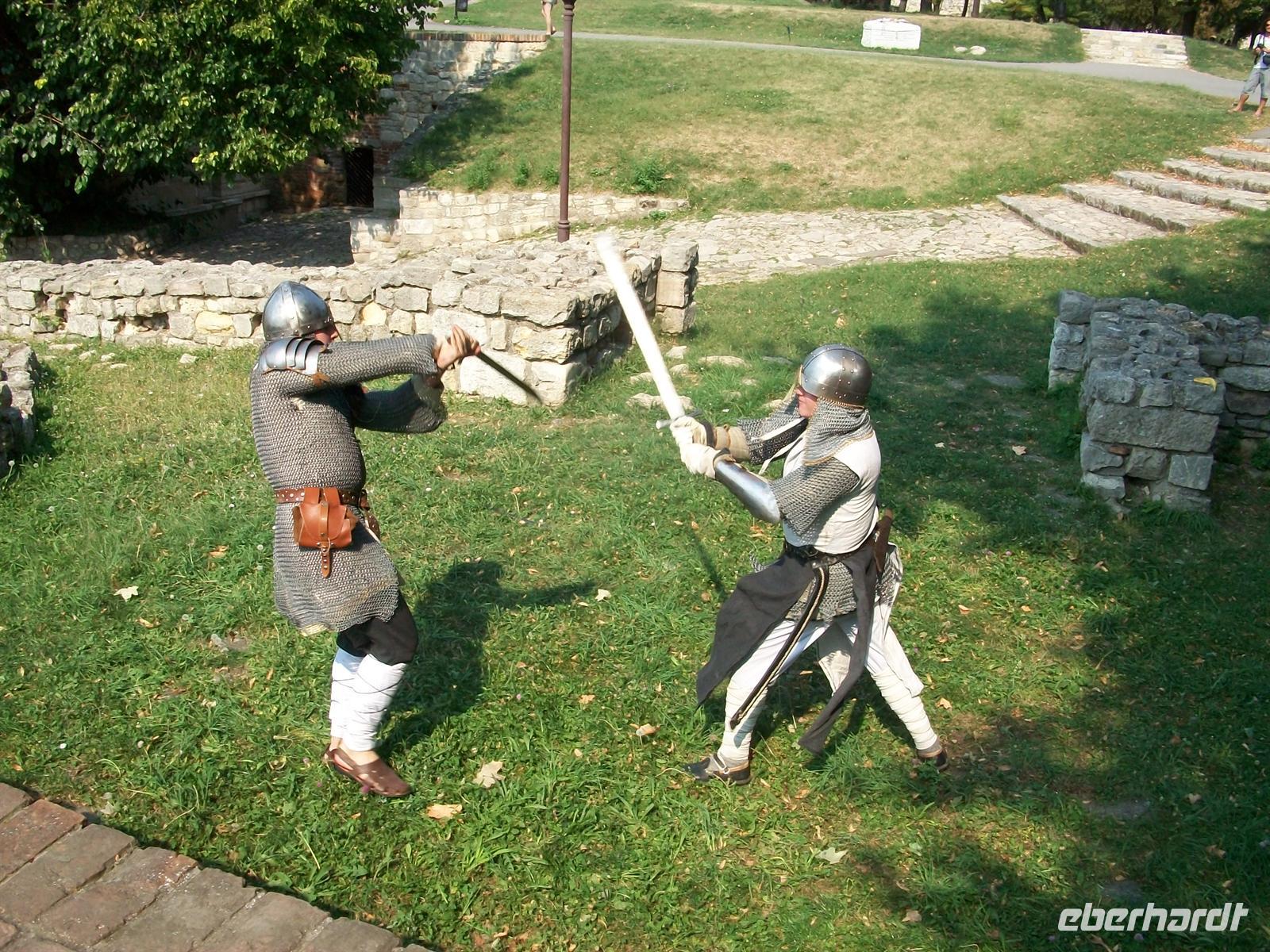 Zuerst fahren wir zur Festung Kalemegdan im Zentrum Belgrads. Hier erwartet uns schon eine erste Überraschung. Wir werden von zwei Rittern in historischen Kostümen erwartet die uns ganz stilecht und exklusiv durch die Festungsanlage führen. Als Abschluss zeigen sie uns noch einen Schwertkampf wo buchstäblich die Funken fliegen.