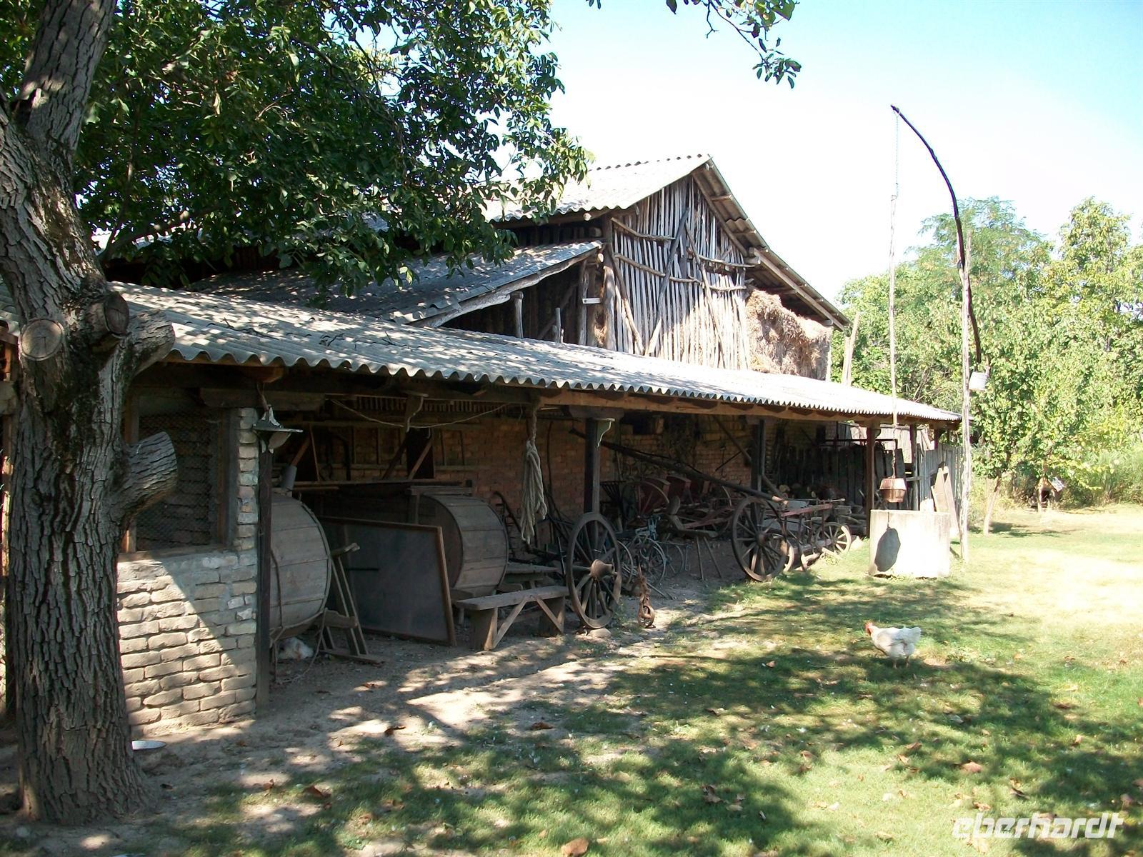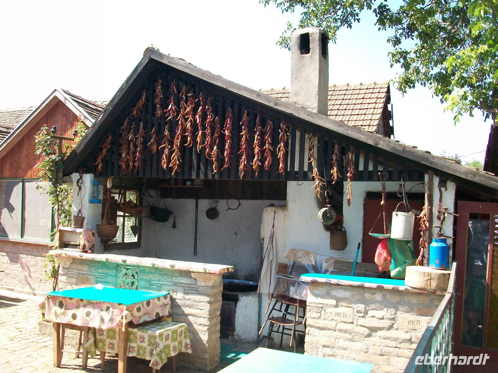 1.9.2011. Der Wettergott meint es auch heute gut mit uns, die Sonne lacht vom blauen Himmel und es ist schon heute am Vormittag recht warm. Wir sind gegen neun gestartet und mussten uns erst einmal durch den Stau quälen. Jetzt sind wir schon 90 Minuten unterwegs und im ländlichen Bereich der Vojvodina unterwegs. Es ist die Kornkammer Serbiens, reich an bäuerlichen Traditionen und so ist unser erstes Ziel heute auch ein Bauernhof im Dorf Mardik. Wir werden nach guter alter Tradition mit einem Schnaps begrüßt und dann drehen wir die Zeit zurück und sind im 19.Jahrhundert angekommen. Die verschiedenen Häuser sind außen und in ihren Inneneinrichtungen historisch getreu nachgebildet, das Wohnhaus mit Stube, Küche und Schlafzimmer und auch die Ställe und Speicher. Dazu eine erholsame Ruhe- es ist wunderschön! Dann gibt es für unsere Gruppe auch noch Kaffee und frischgebackenen Kuchen, alles Ausdruck der sehr gastfreundlichen Serben, hier waren wir wirklich willkommen!