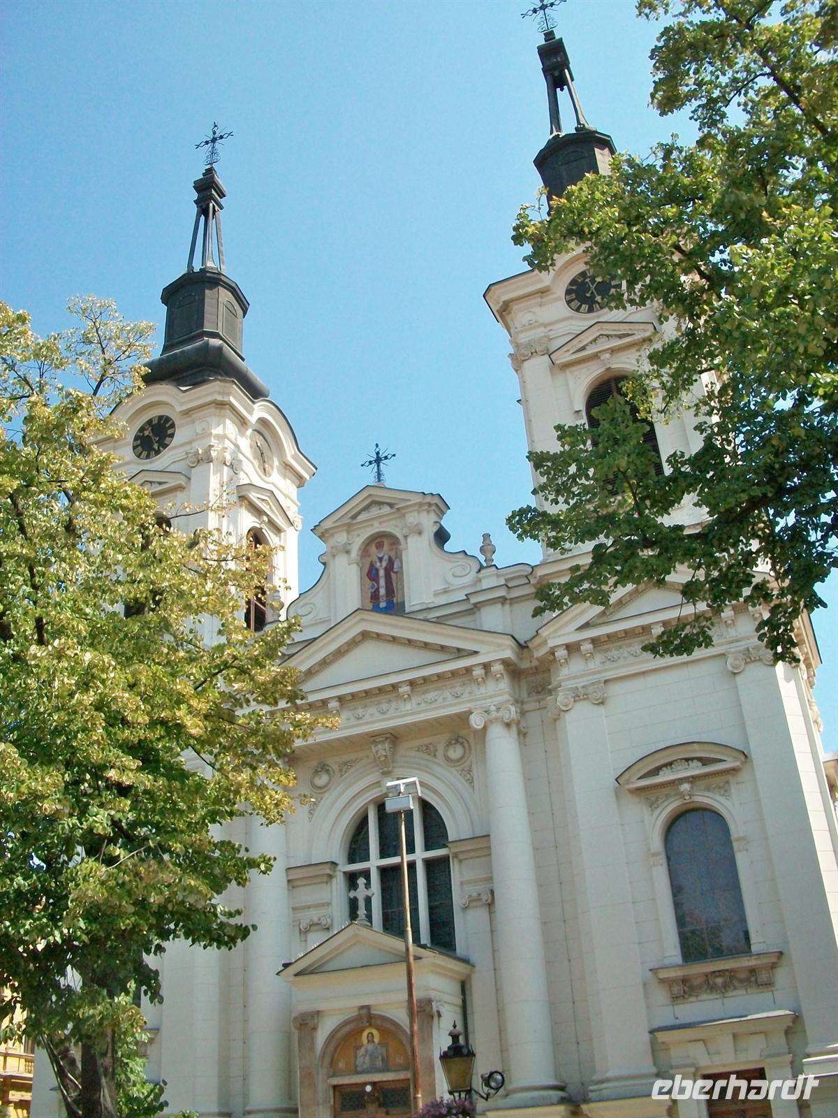 Dann wechseln wir über in den Habsburger Teil der zum Ende des 19. Jahrhunderts entstand. Das ist nun eine ganz andere Welt, wir sehen die katholische Kathedrale und die serbisch- orthodoxe Kirche.