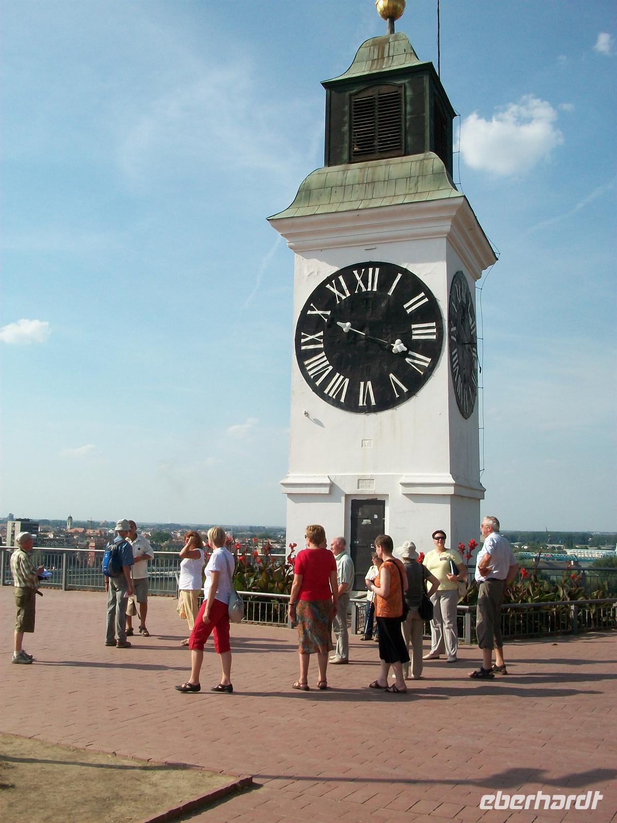 Nach diesen Köstlichkeiten setzen wir den Weg fort um die sehr geschichtsträchtige Festung Petrovaradin zu besuchen. Wir durchstreifen die Festungsanlagen und gehen bis zum Aussichtspunkt von dem es einen schönen Blick auf die Donau und Novi Sad gibt. Die Nachmittagssonne wirft ein schönes Licht ins Tal, nachdem wir die Aussicht in Ruhe genießen konnten geht es nun mit dem Bus hinunter nach Novi Sad, dem Hauptort der Vojvodina.