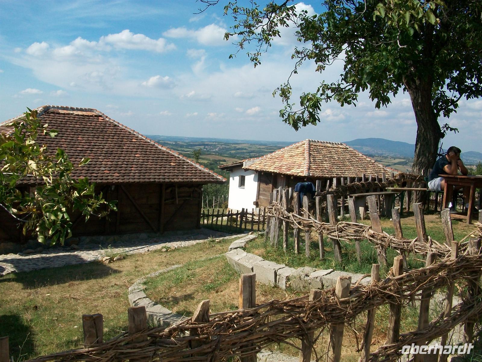 Ein lohnenswerter Besuch! 10.00 Uhr, zu dieser Zeit fahren wir weiter und haben jetzt bis zu unserem nächsten Höhepunkt einige Kilometer vor uns. Die Fahrt durch die sehr ursprüngliche serbische Landschaft gestaltet sich sehr abwechslungsreich. Besonders malerisch ist die Fahrt durch die Flusstäler von Westlicher Morava und Detinja, hier hat die Menschenhand wenig in die Natur eingegriffen und bei dieser Fahrt zeigt sich uns so manche Naturschönheit. Wir fahren an aak, Po¸ega vorbei und biegen hinter U¸ice von der Hauptstraße ab um über eine schmale Gebirgsstraße hinauf nach Sirogojno zu kommen. Hier sind wir nun inmitten des Zlatiborgebirges und gegen 13.10 Uhr kommen wir oben an.