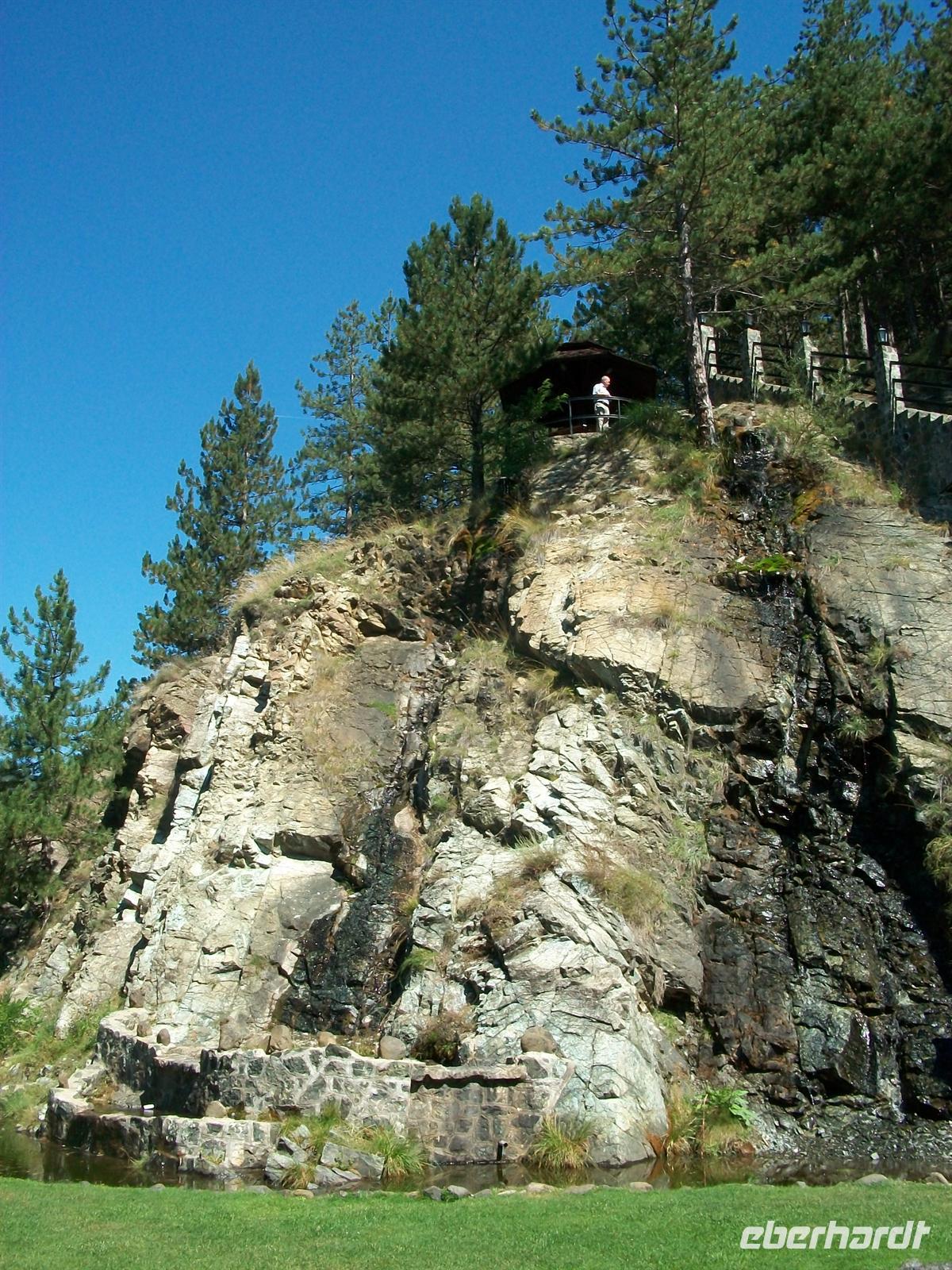 Auch hinter dem Mausoleum gibt es eine Aussichtsplattform; von hier schweift der Blick weit ins raue Land, besonders sind die Steinmassen zu sehen die man das steinerne Meer nennt, überwältigend und unwirtlich, der Balkan von seiner typischsten Seite!