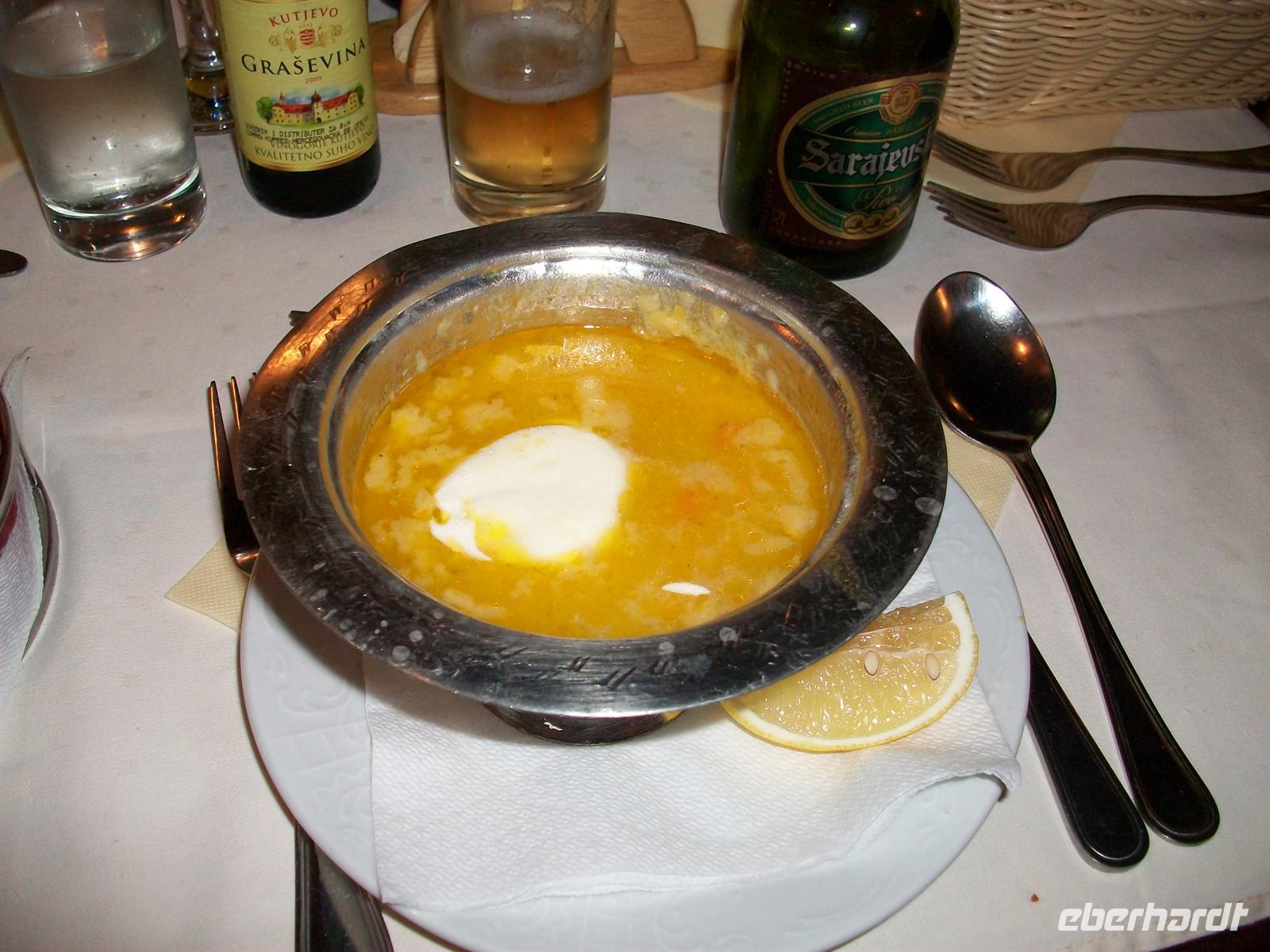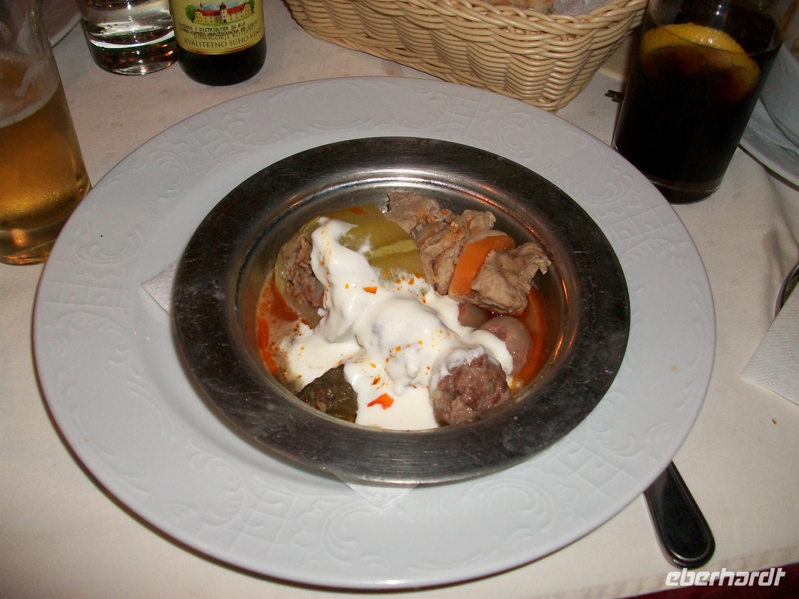 schmeckt das Essen doppelt gut, auf original bosnischen Geschirr bekommen wir die einheimischen Speisen serviert die alle sehr lecker sind.