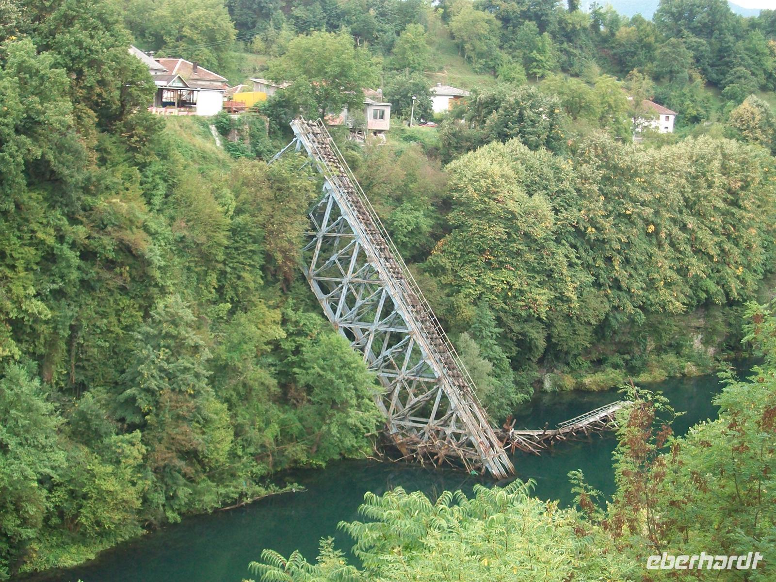 sehen wir auf der rechten Seite den Jablanica- Stausee, durchfahren den Ort Konjec und sind dann schon am Fluss Neretva angelangt. Im Ort Jablanica legen wir einen Stopp ein, hier fand die legendäre Schlacht an der Neretva statt, bekannt durch den gleichnamigen Film. Ein Partisanenzug und eine gesprengte Brücke zeugen noch davon.