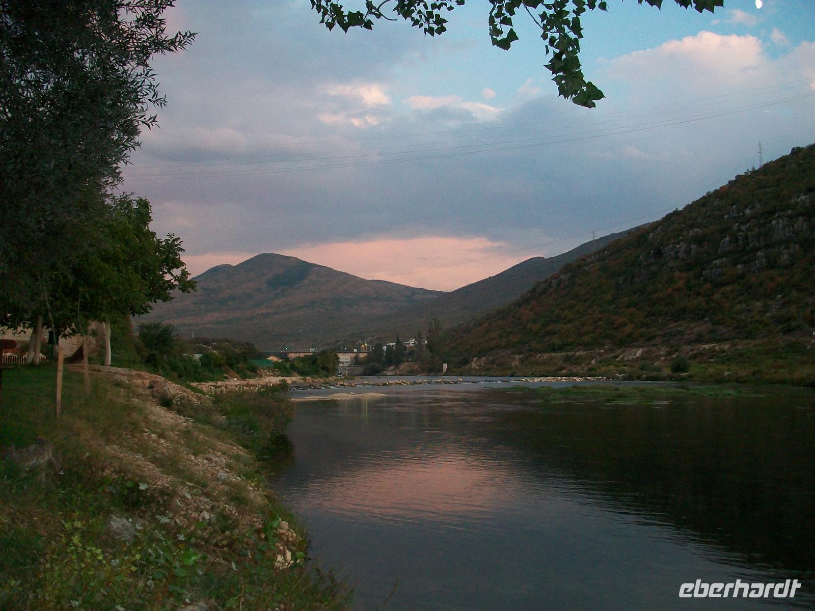 Dann geht die Fahrt weiter durch die hochromantische Neretva- Schlucht, die Berge treten ganz nah ans Wasser heran. Später treten sie aber zurück und machen einem riesigen Talkessel platz in dessen Mitte der Ort Mostar liegt den wir jetzt besuchen werden.