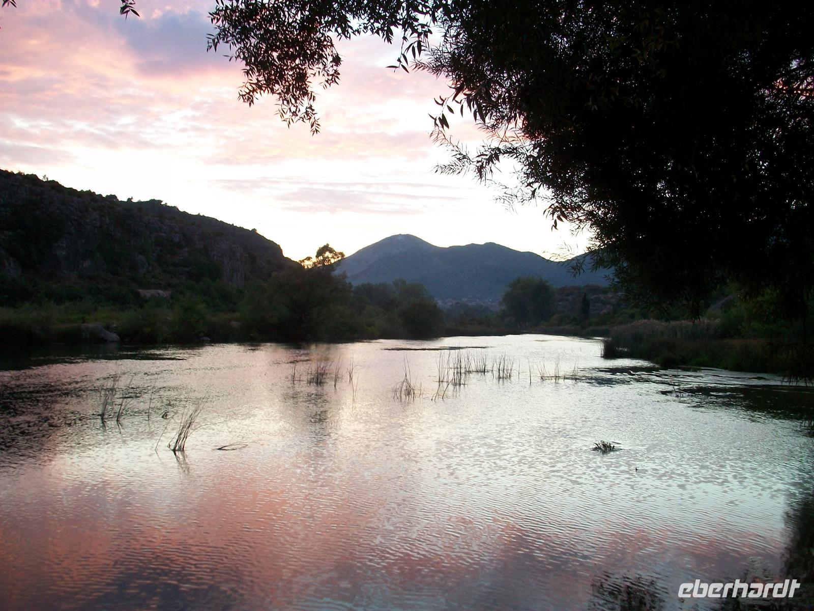 Bald verlassen wir aber das fruchtbare Neretvatal und sind in einer typischen Karstlandschaft unterwegs. Die Vegetation ist hier sehr spärlich, aber die Schafe finden trotzdem ihr Auskommen, Feldwirtschaft ist kaum möglich. Trotz der Kargheit strahlt die Landschaft einen herben Charme aus und bald sind wir am Fluss Trebišnjica angelangt. Hier gibt es auch wieder Obstkulturen die über Schöpfanlagen vom Fluss bewässert werden. Kurz nach halb sechs erreichen wir unser Hotel