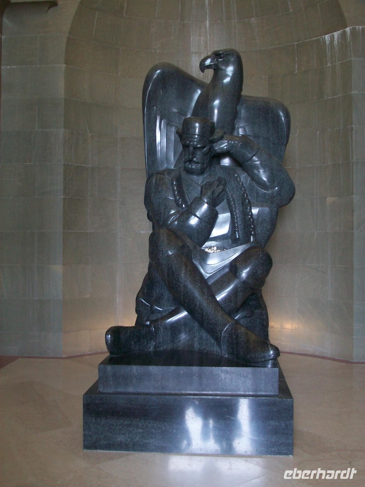Oben betreten wir nun die Tempelanlage, sehen das schöne Denkmal des Herrschers und werfen noch einen Blick in die Gruft mit dem Sarkophag. Von einem Mitarbeiter des Komplexes bekommen wir interessante Erläuterungen die uns Bogdanka übersetzt.