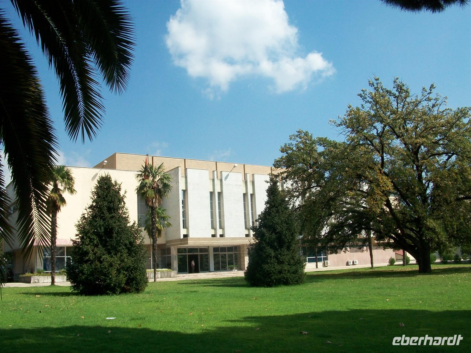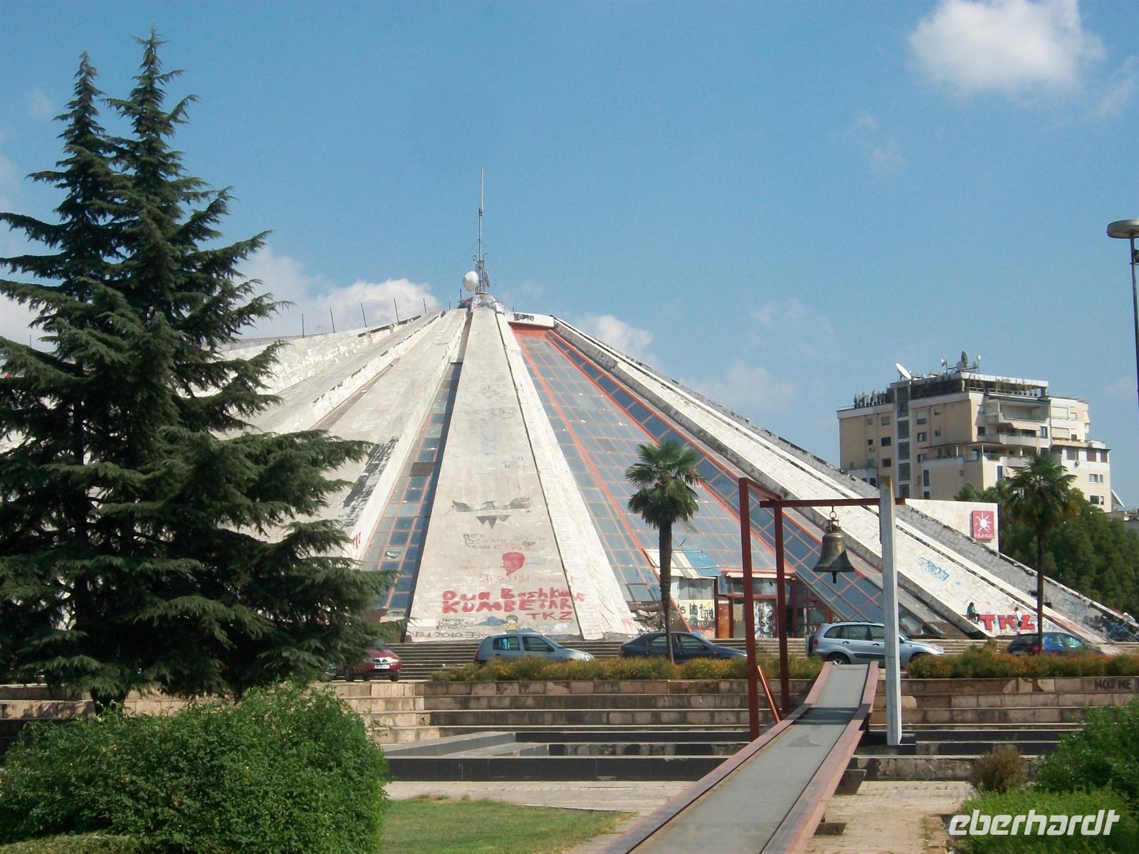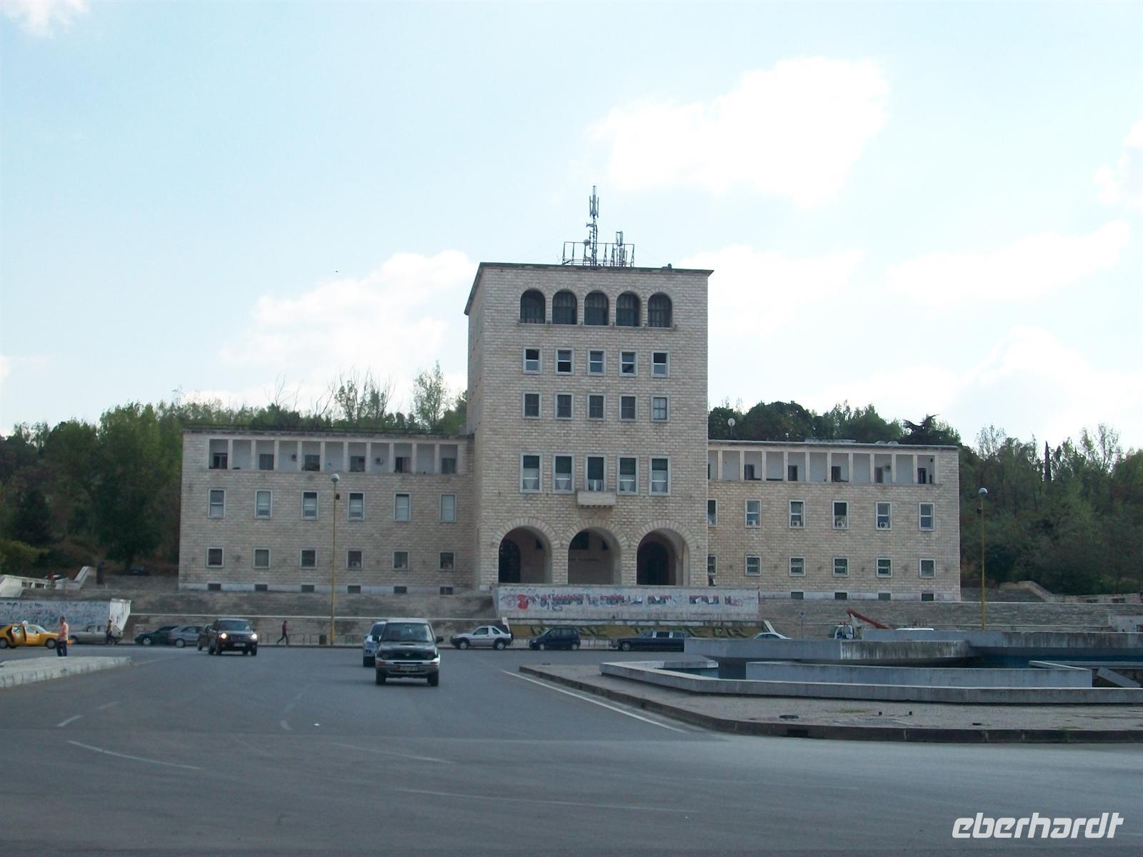 Wohnkomplex der stark vom Einfluss Mussolinis geprägt ist und wandern in Richtung Universität. Links sehen wir noch das monumentale Gebäude welches einstmals das Mausoleum des Diktators Enver Hoxha war, längst ist dieser grausame Führer vom Sockel geholt worden. Die Impressionen die wir aus Tirana mitnehmen sind zwiespältig, es ist eine Stadt die starke historische Wurzeln hat, die Menschen legen viel wert auf Traditionen und sind dennoch auf dem Weg ins moderne Europa.
