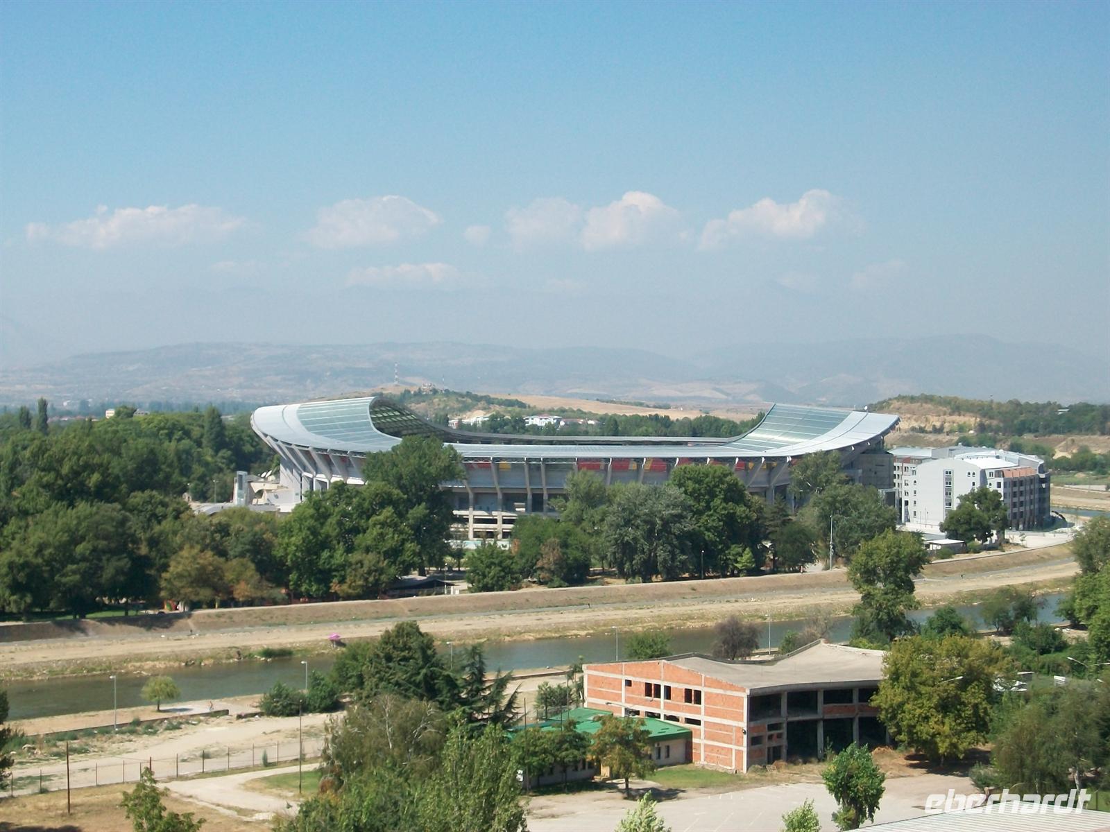 Bald sind wir in der breiten Ebene angelangt durch die der Fluss Vardar fließt, wir fahren am Ort Tetowo vorbei, gleich dahinter geht es ins Kosovo, wir sind aber weiter in Mazedonien unterwegs und bald kommen die Häuser von Skopje in Sicht. Die Mazedonische Hauptstadt liegt eingebettet in das breite Tal der Vardar, auch umgeben von Bergen.