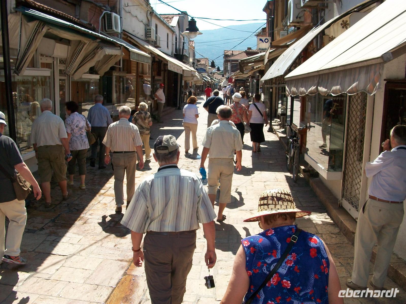 kommen in der gepflegten Altstadt an. Ohrid ist eine multireligiöse Stadt, die neben den vielen Zeugnissen der Orthodoxie auch Moscheen hat, die auf die Zeit der osmanischen Fremdherrschaft hinweisen. Es ist wieder die besondere Mischung die den Reiz ausmacht.